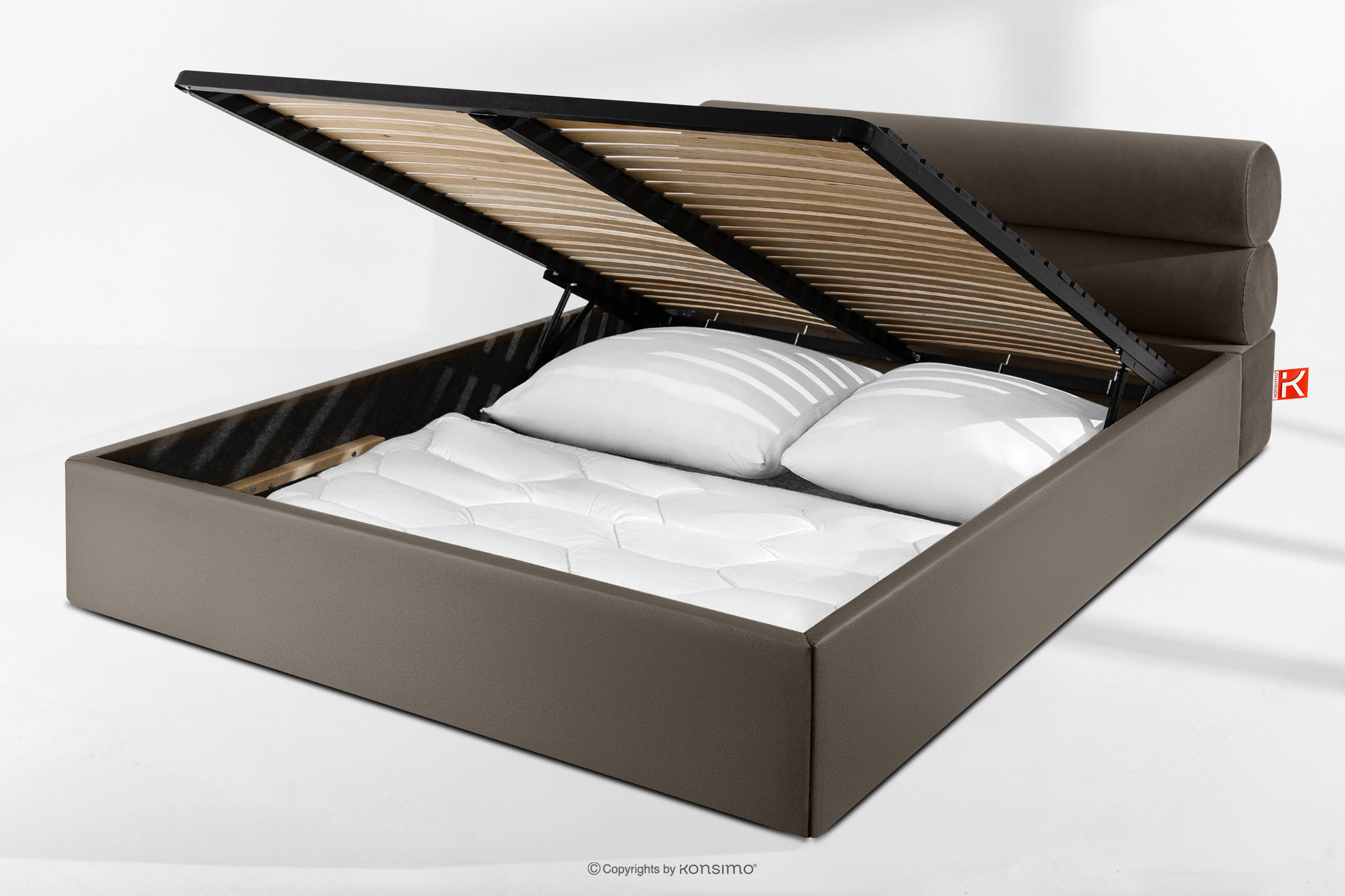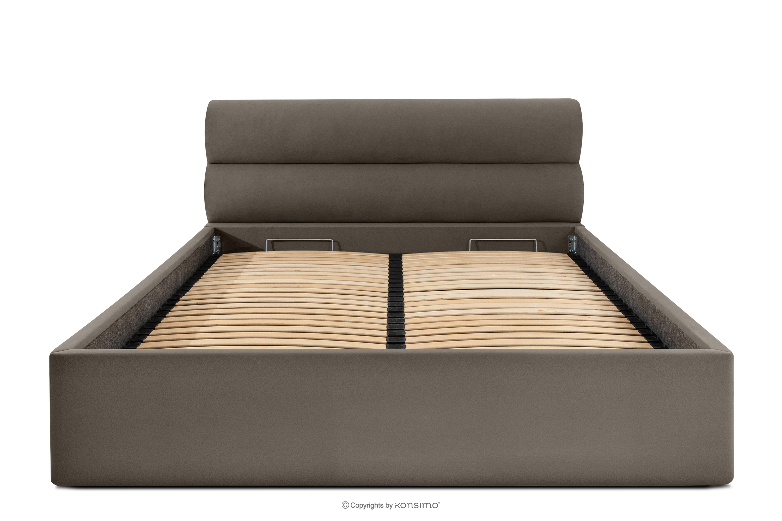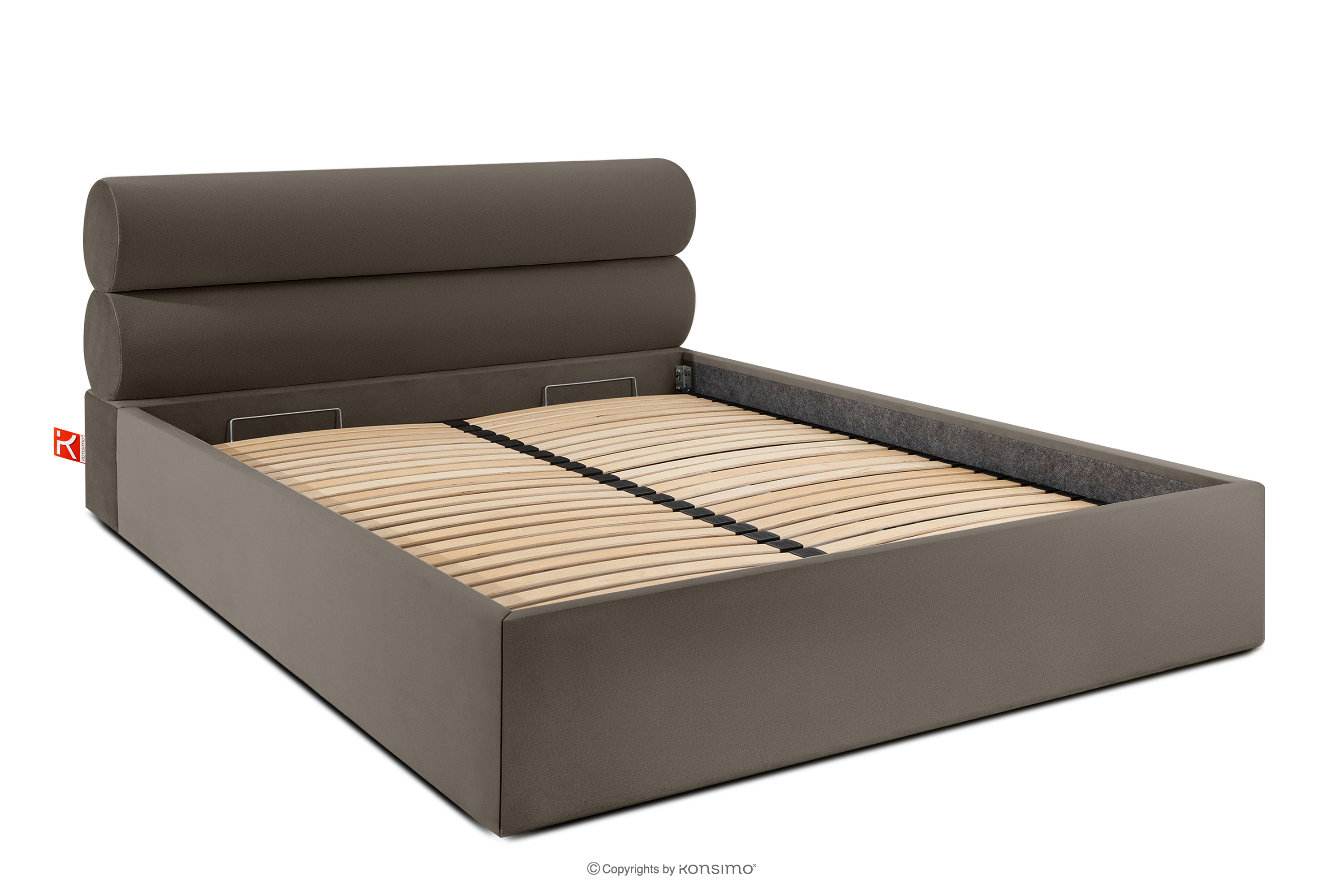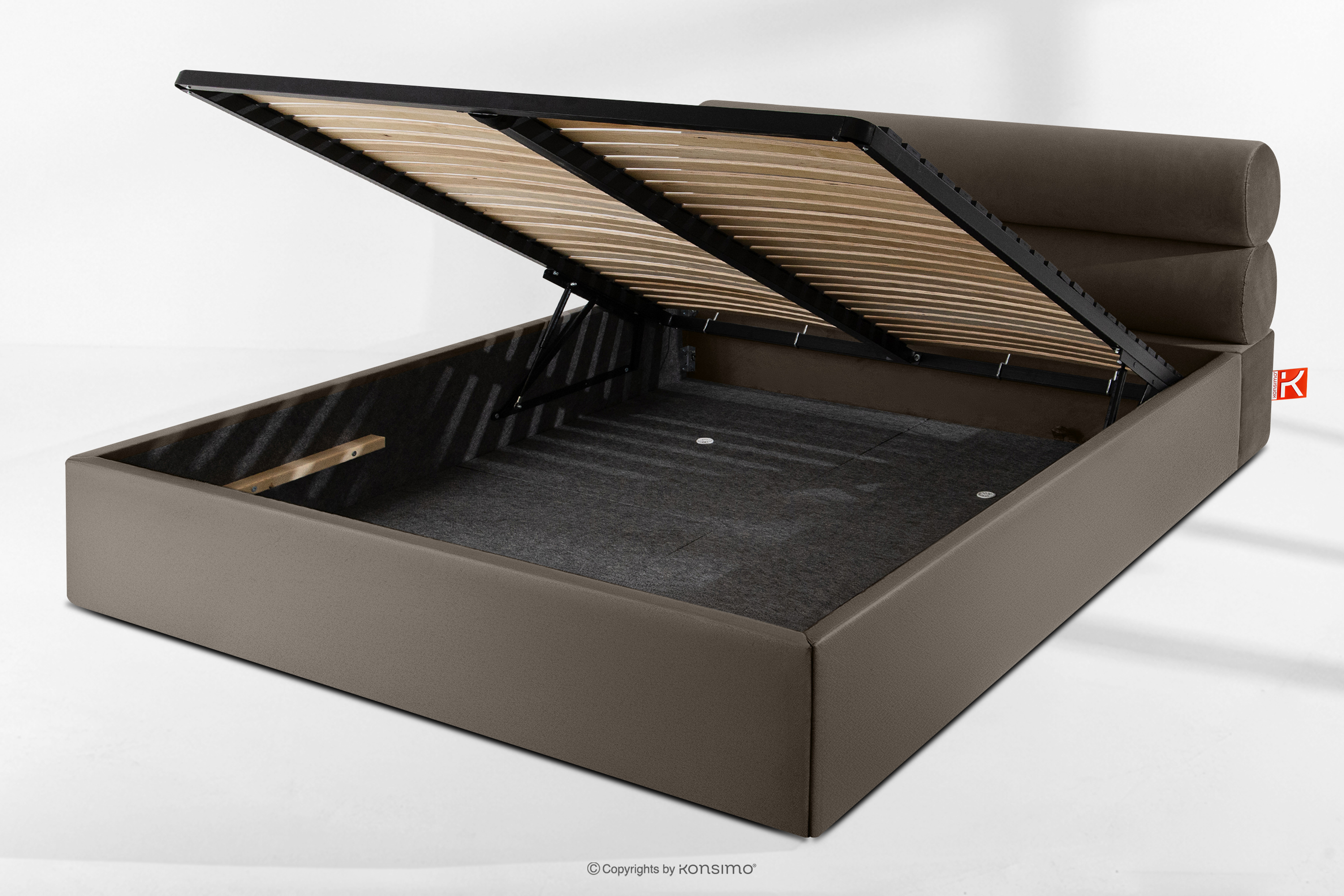 LUNEO zobacz całą kolekcję Łóżko tapicerowane w stylu japandi z pojemnikiem na pościel 180 cm brązowy- kolor brązowy