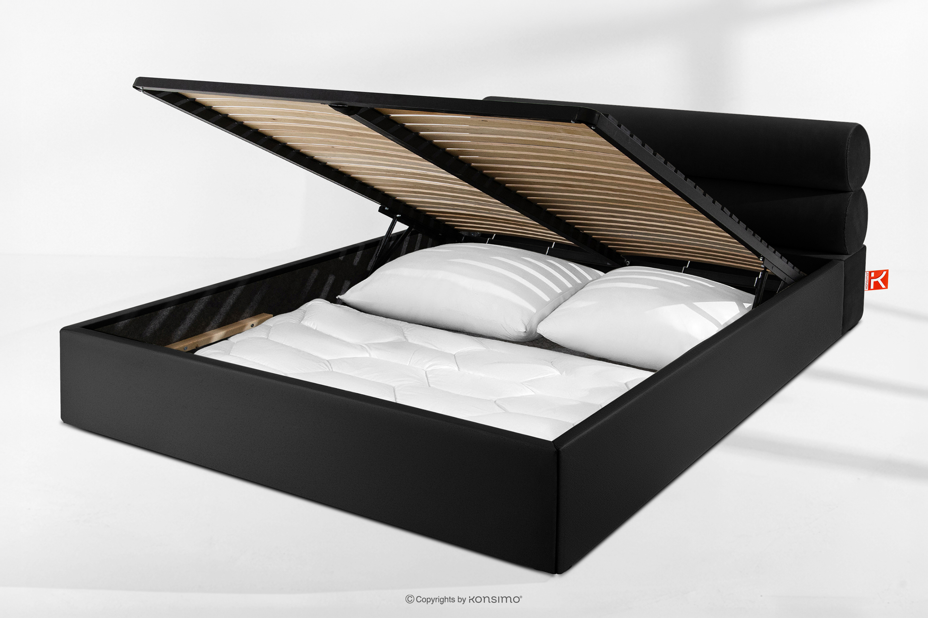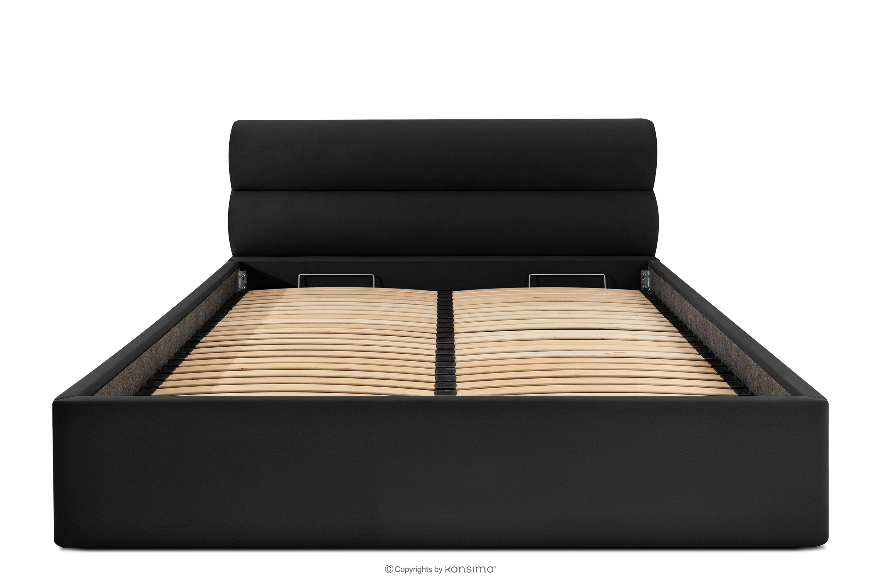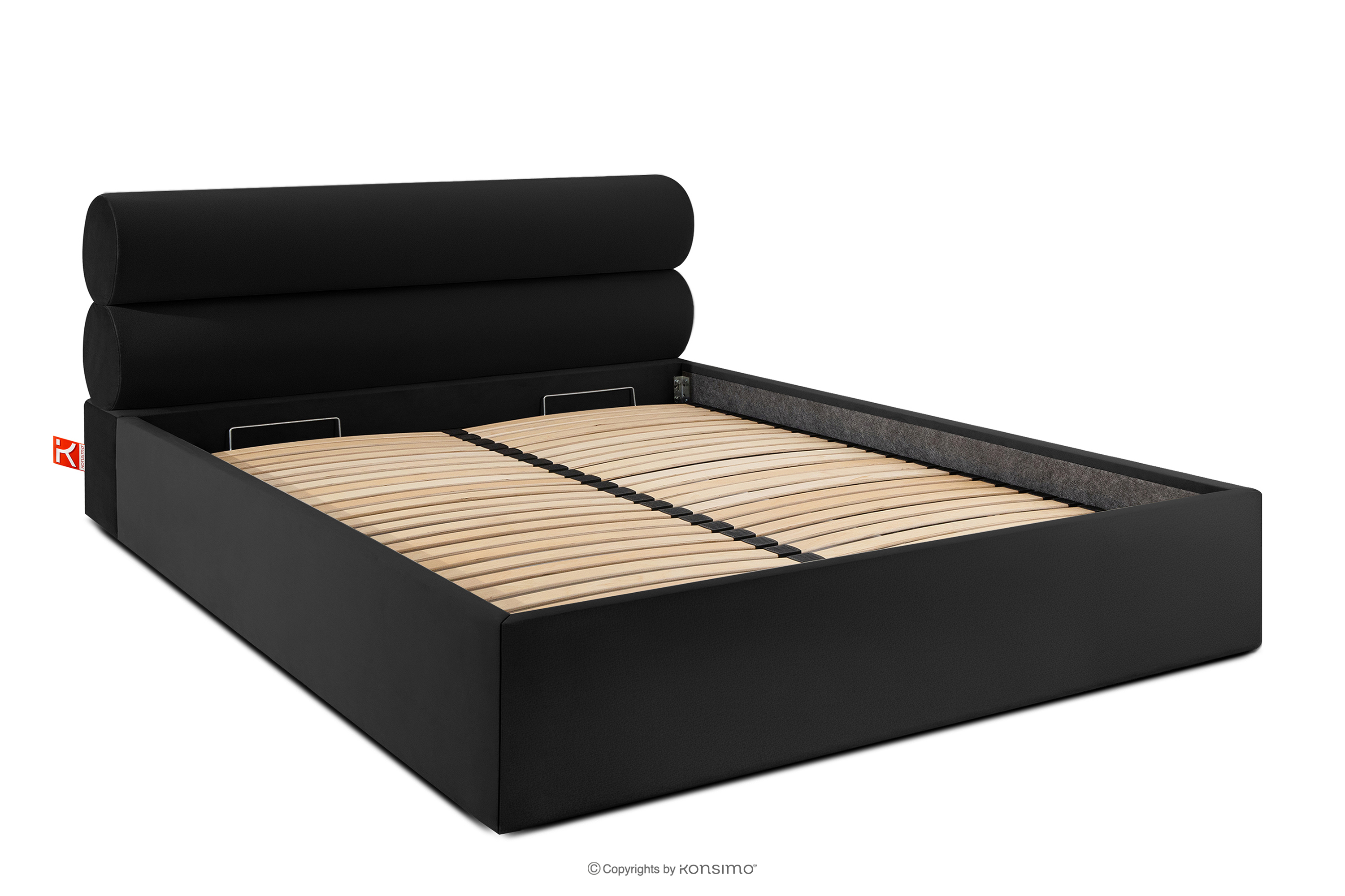 LUNEO Łóżko tapicerowane w stylu japandi z pojemnikiem na pościel 200 cm czarny