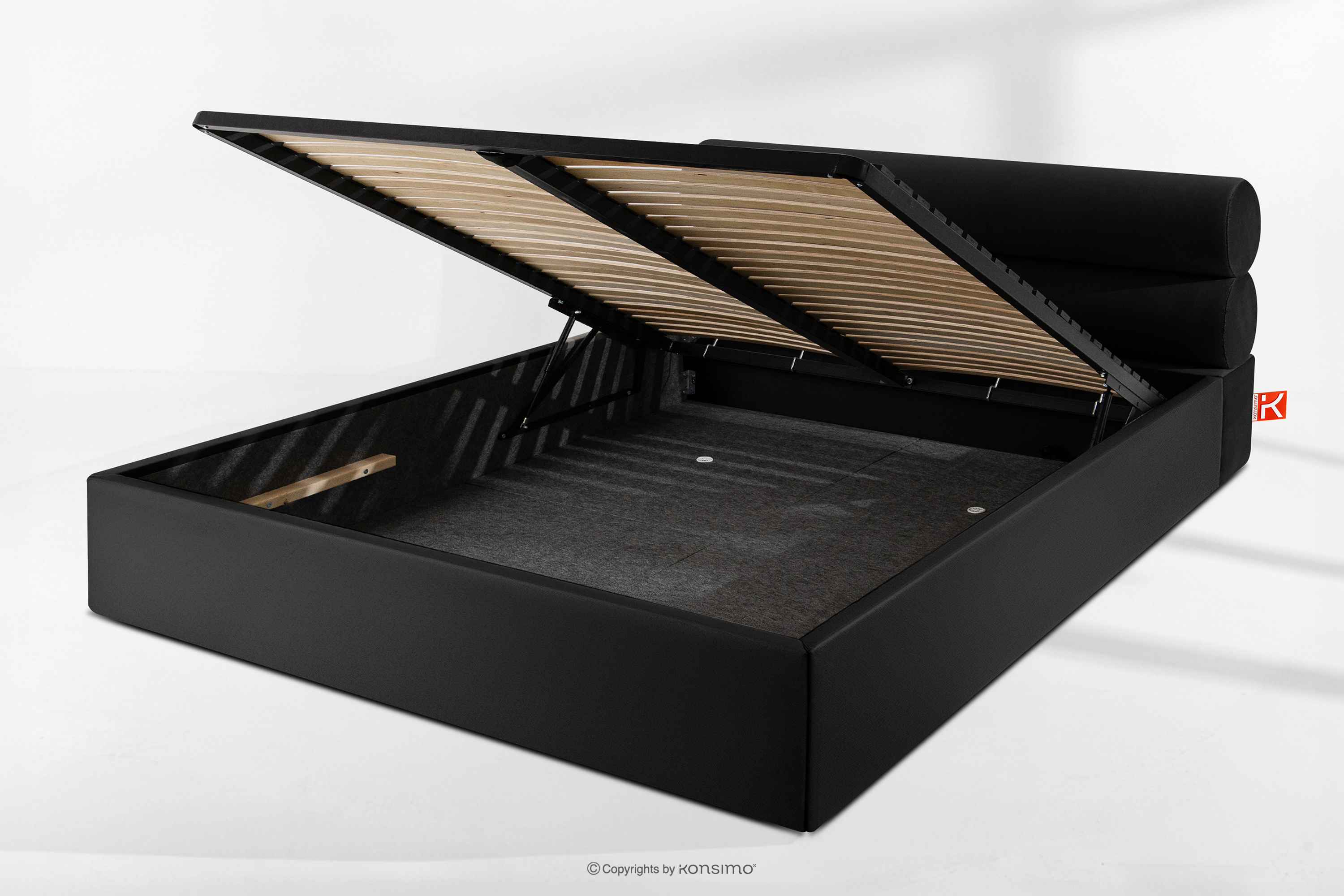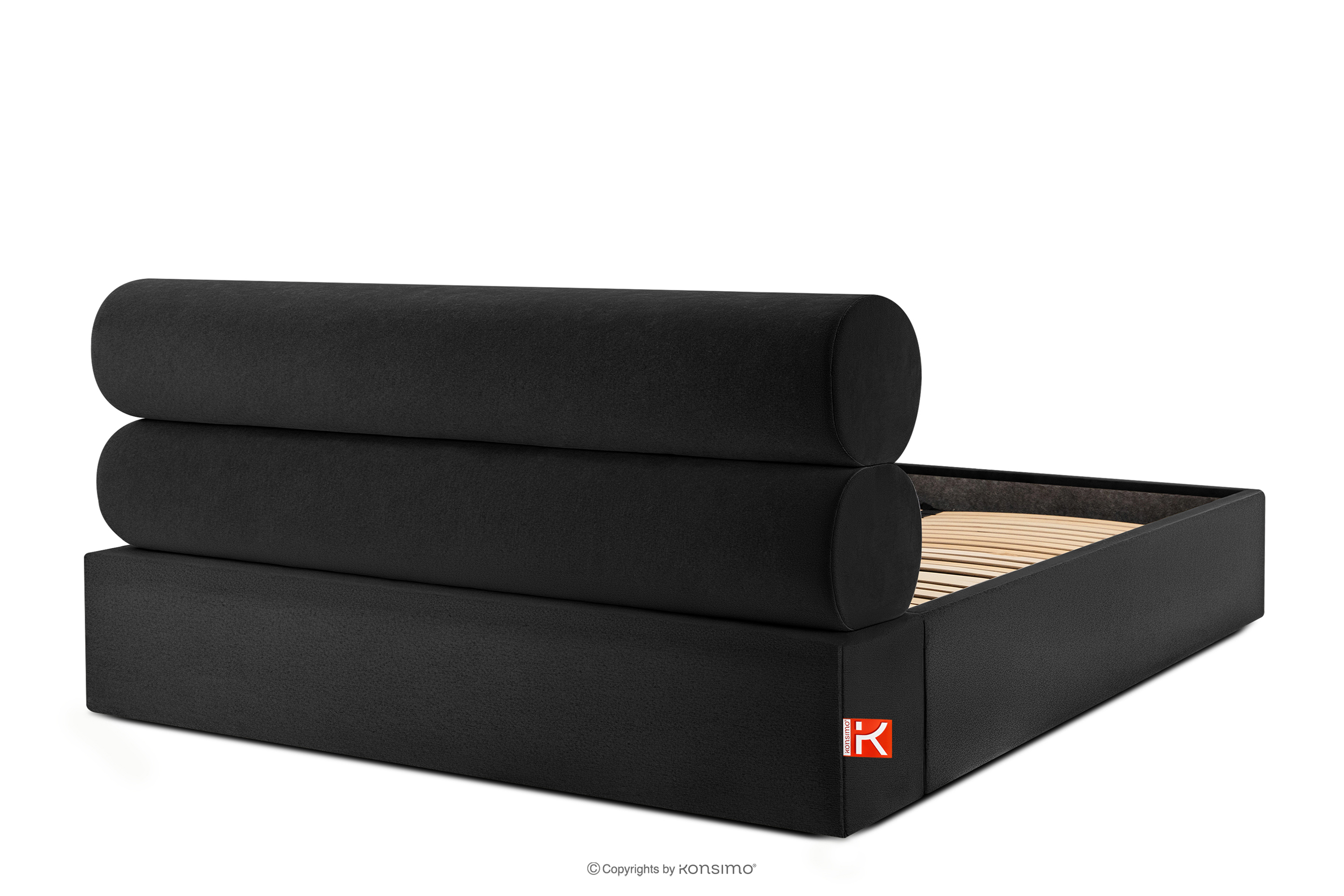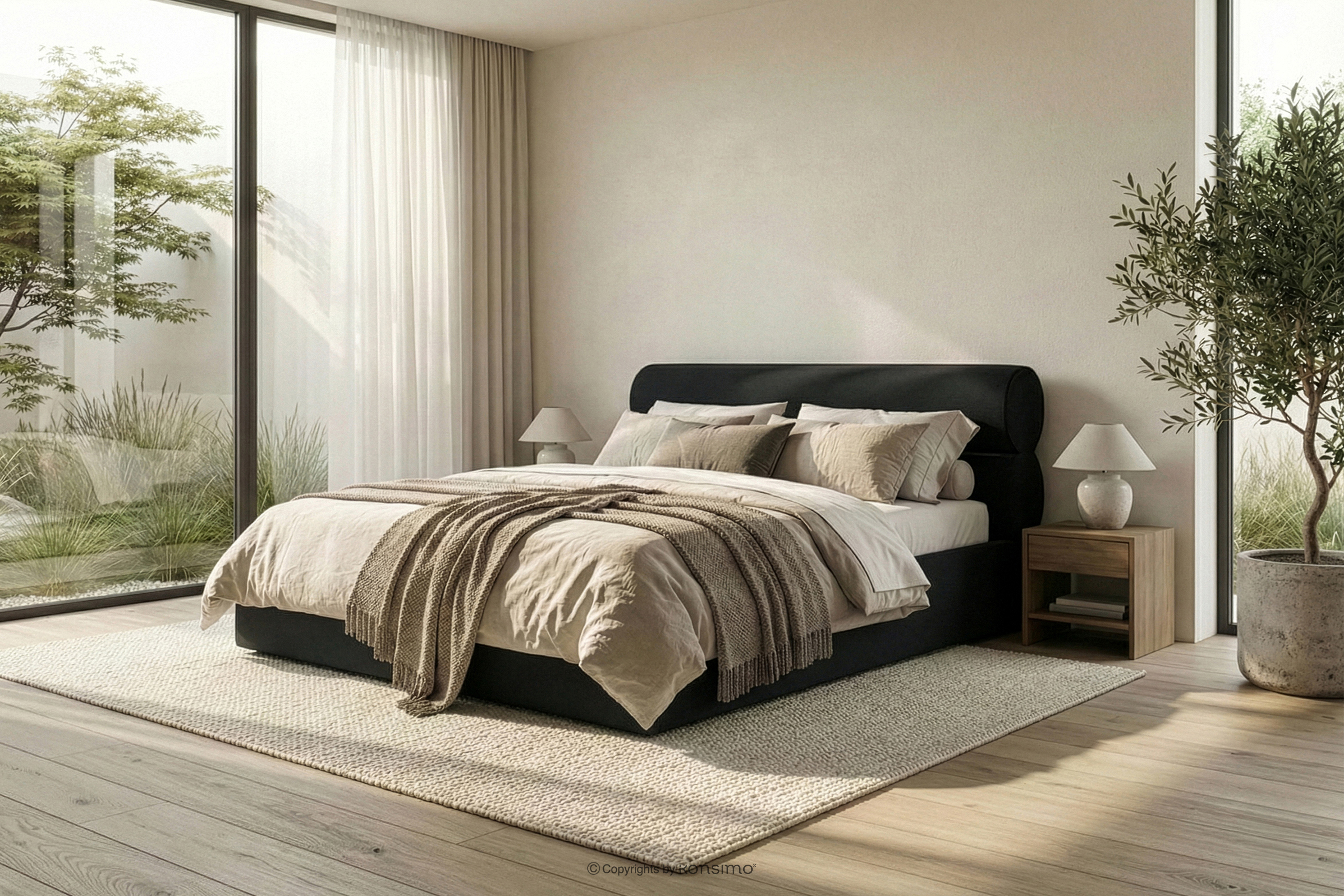 LUNEO zobacz całą kolekcję Łóżko tapicerowane w stylu japandi z pojemnikiem na pościel 200 cm czarny- kolor czarny