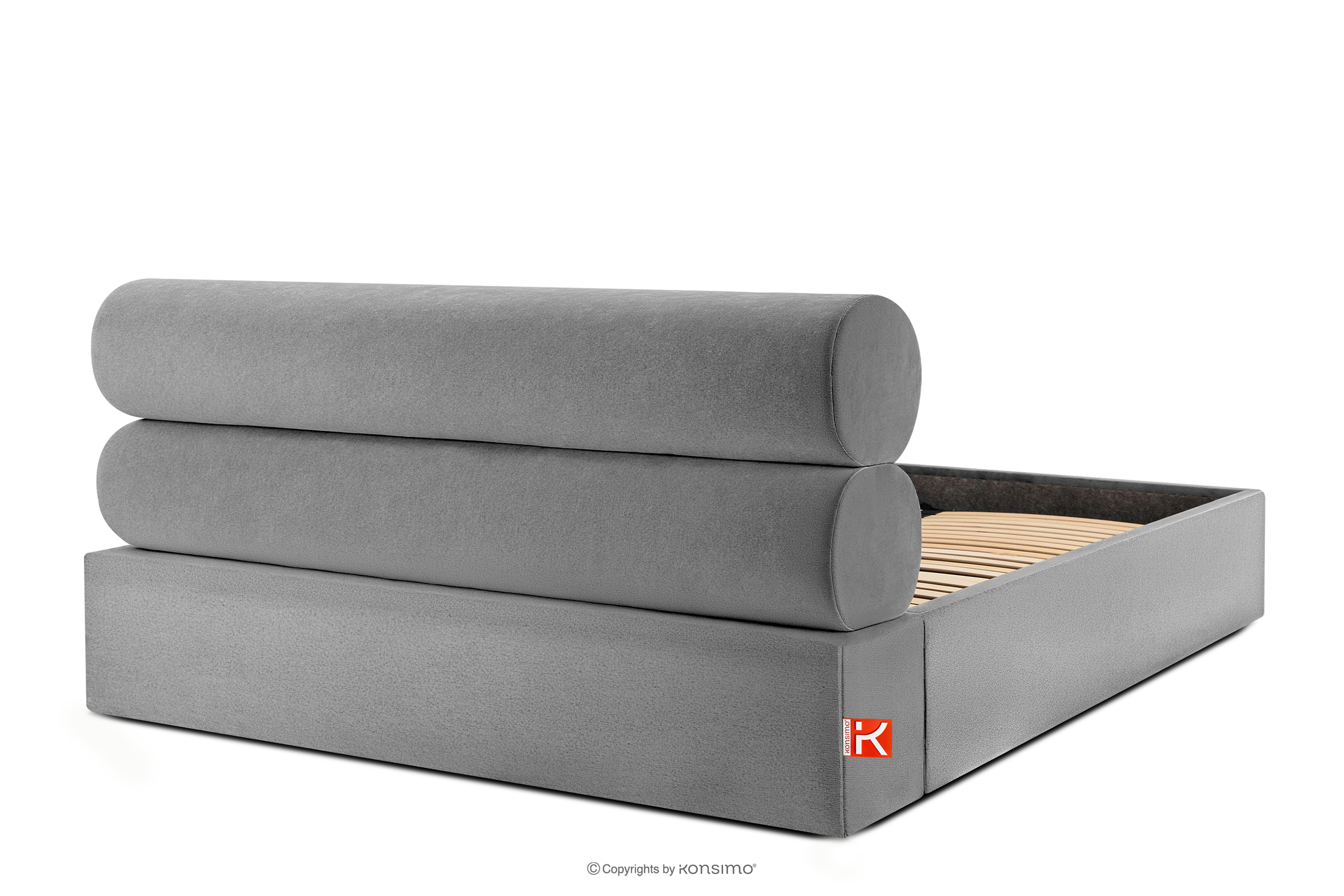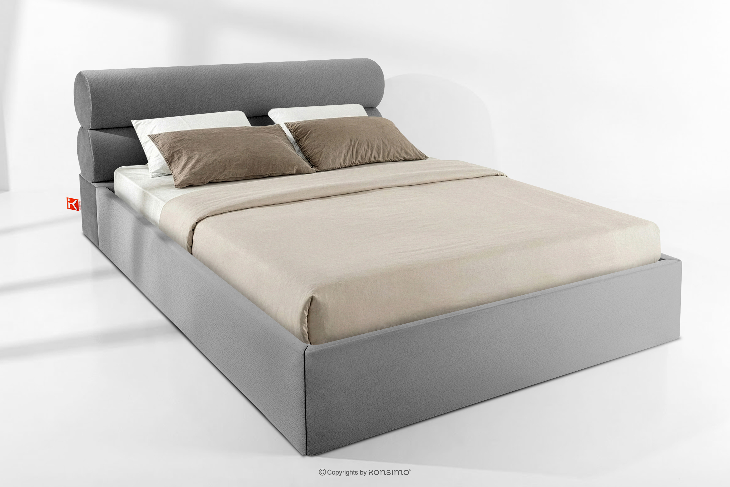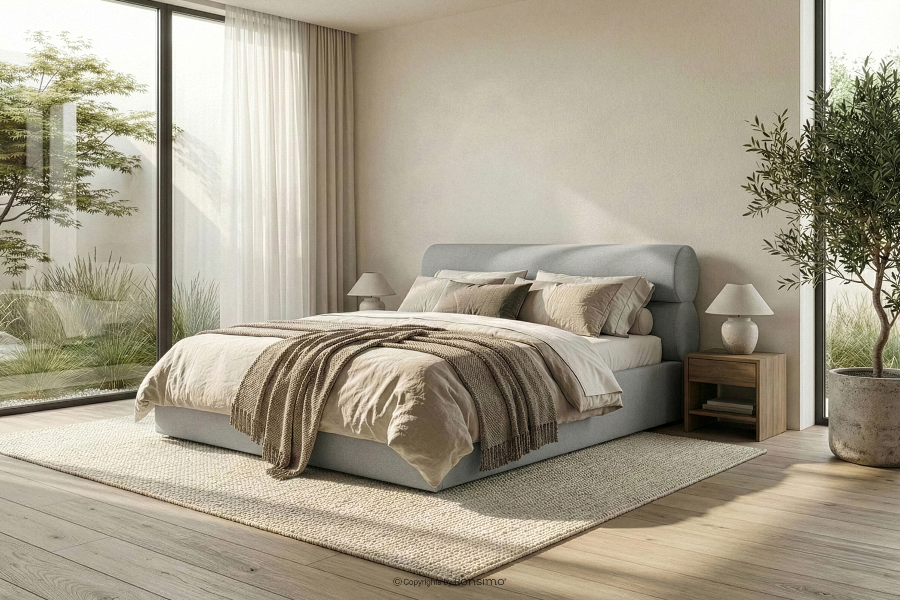 LUNEO zobacz całą kolekcję Łóżko tapicerowane w stylu japandi z pojemnikiem na pościel 200 cm jasny szary- kolor jasny szary