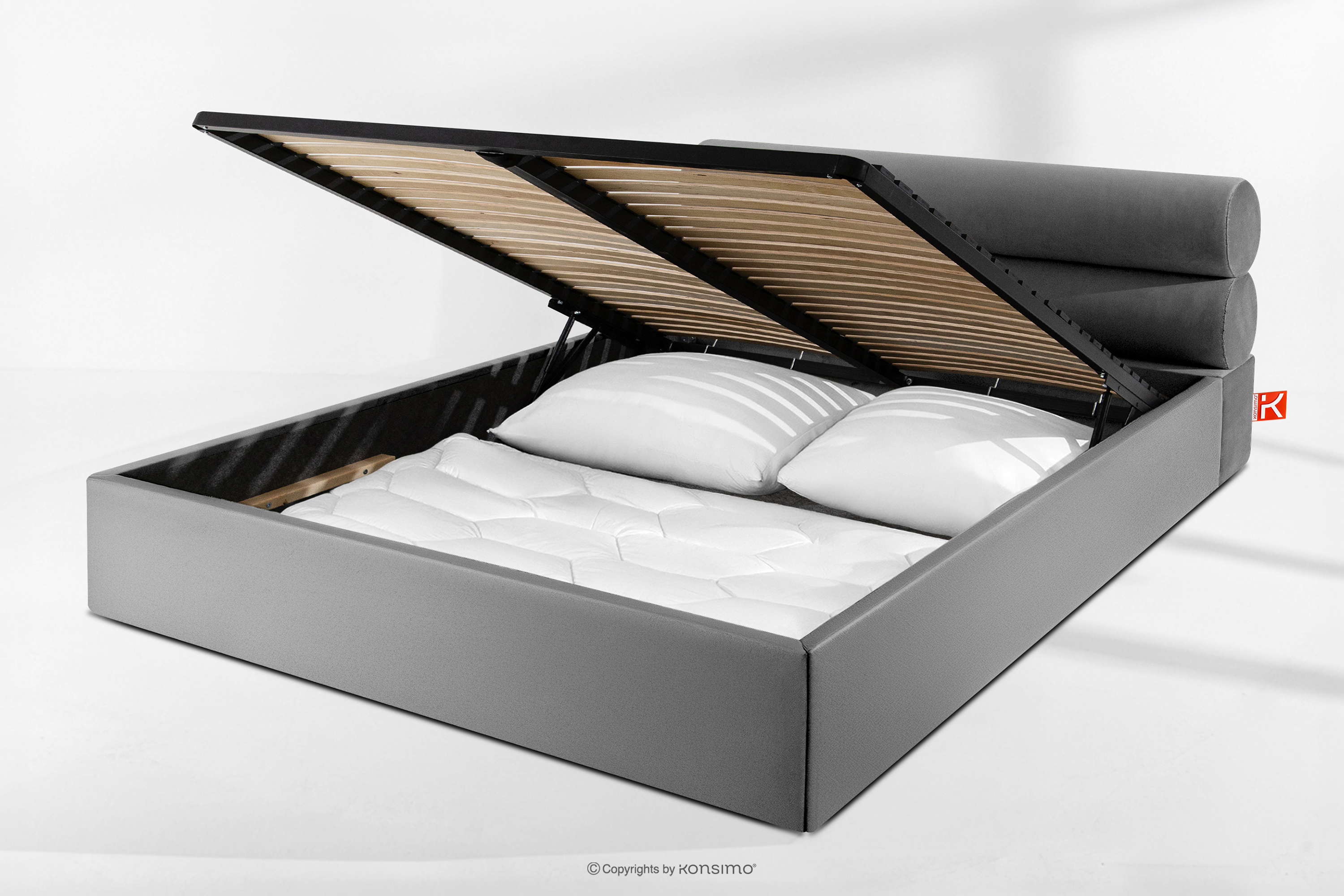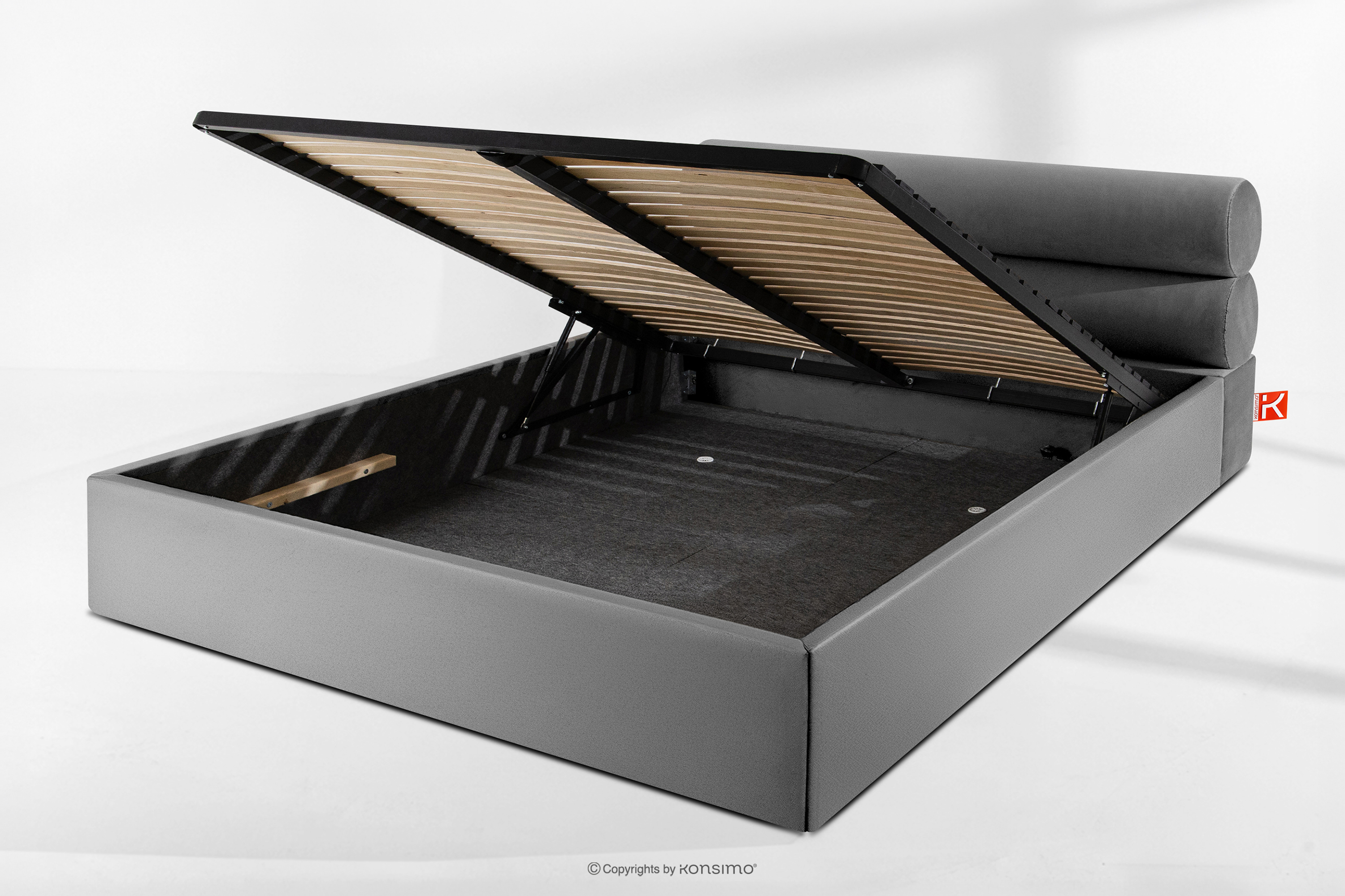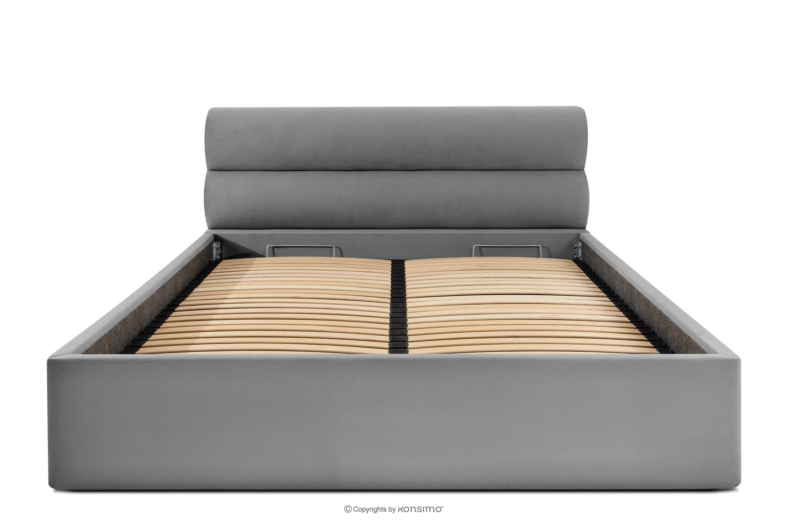 LUNEO zobacz całą kolekcję Łóżko tapicerowane w stylu japandi z pojemnikiem na pościel 200 cm jasny szary- kolor jasny szary