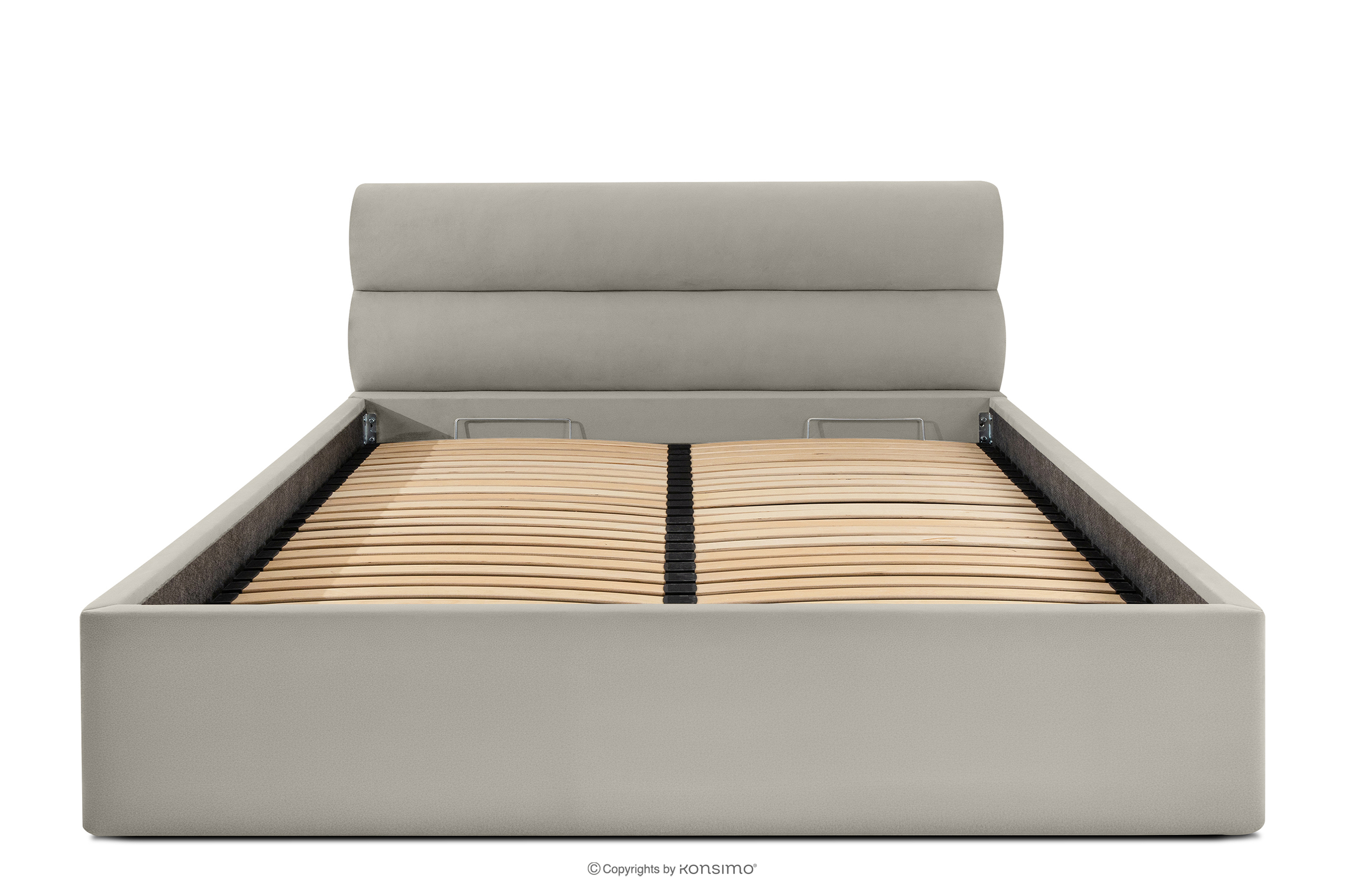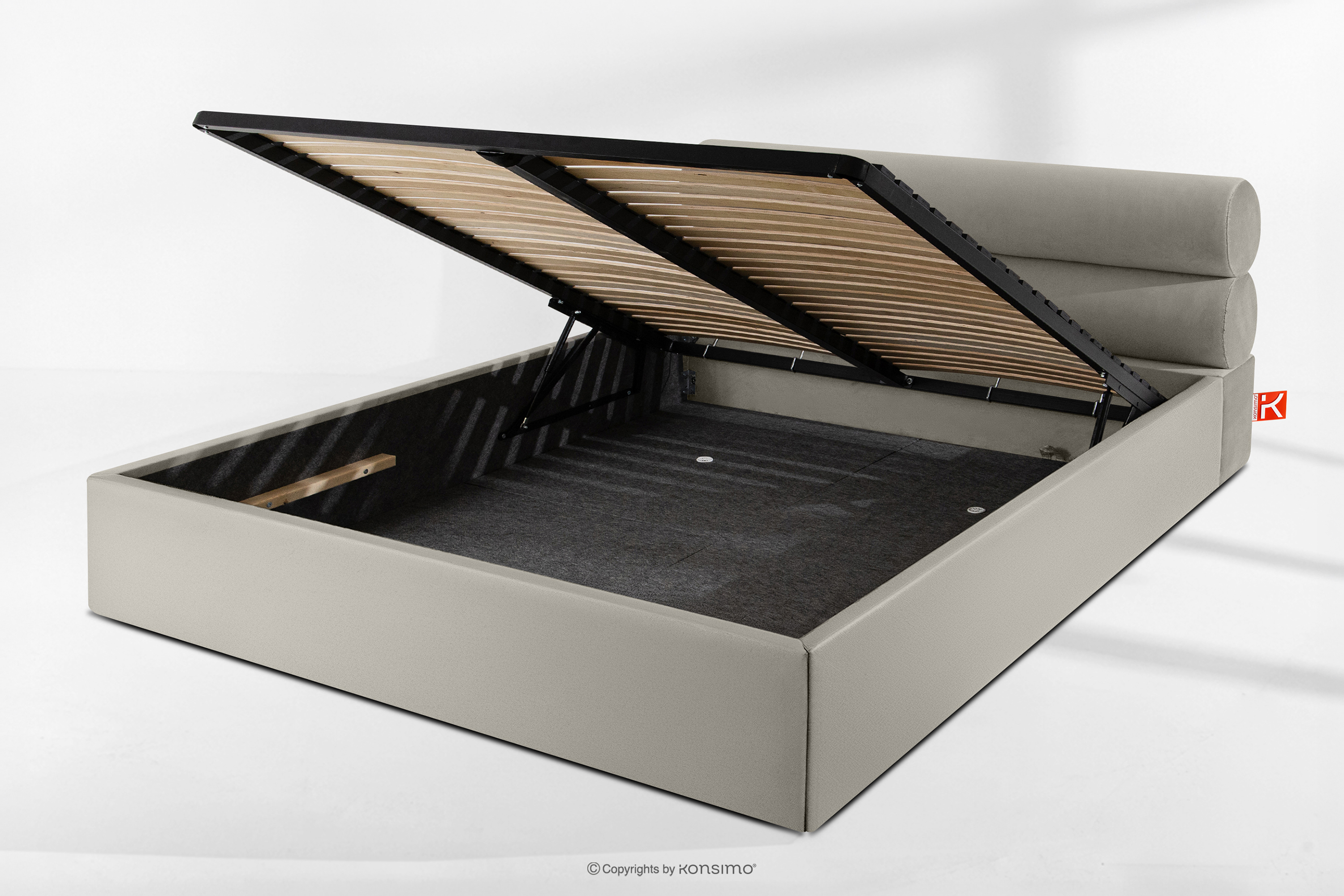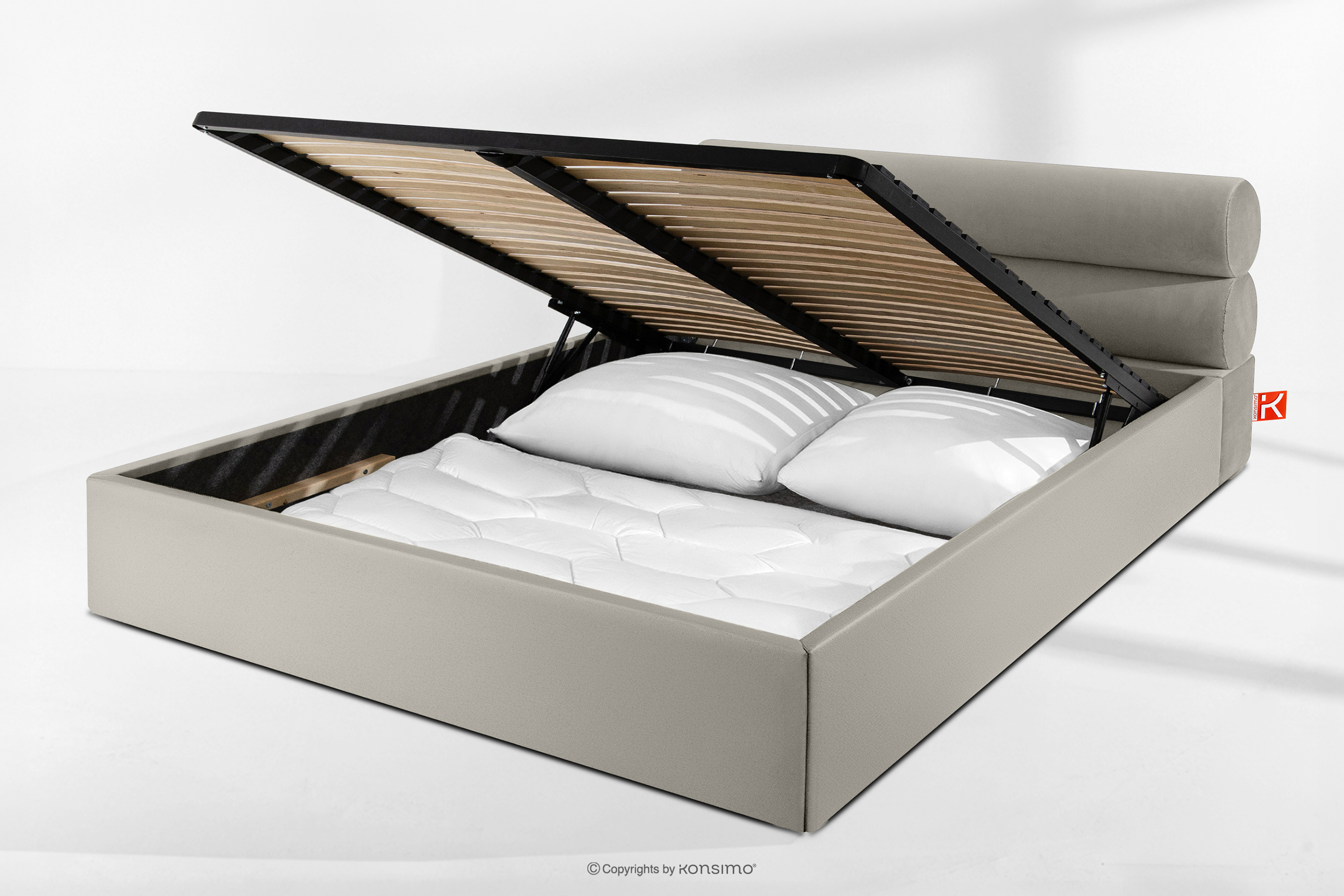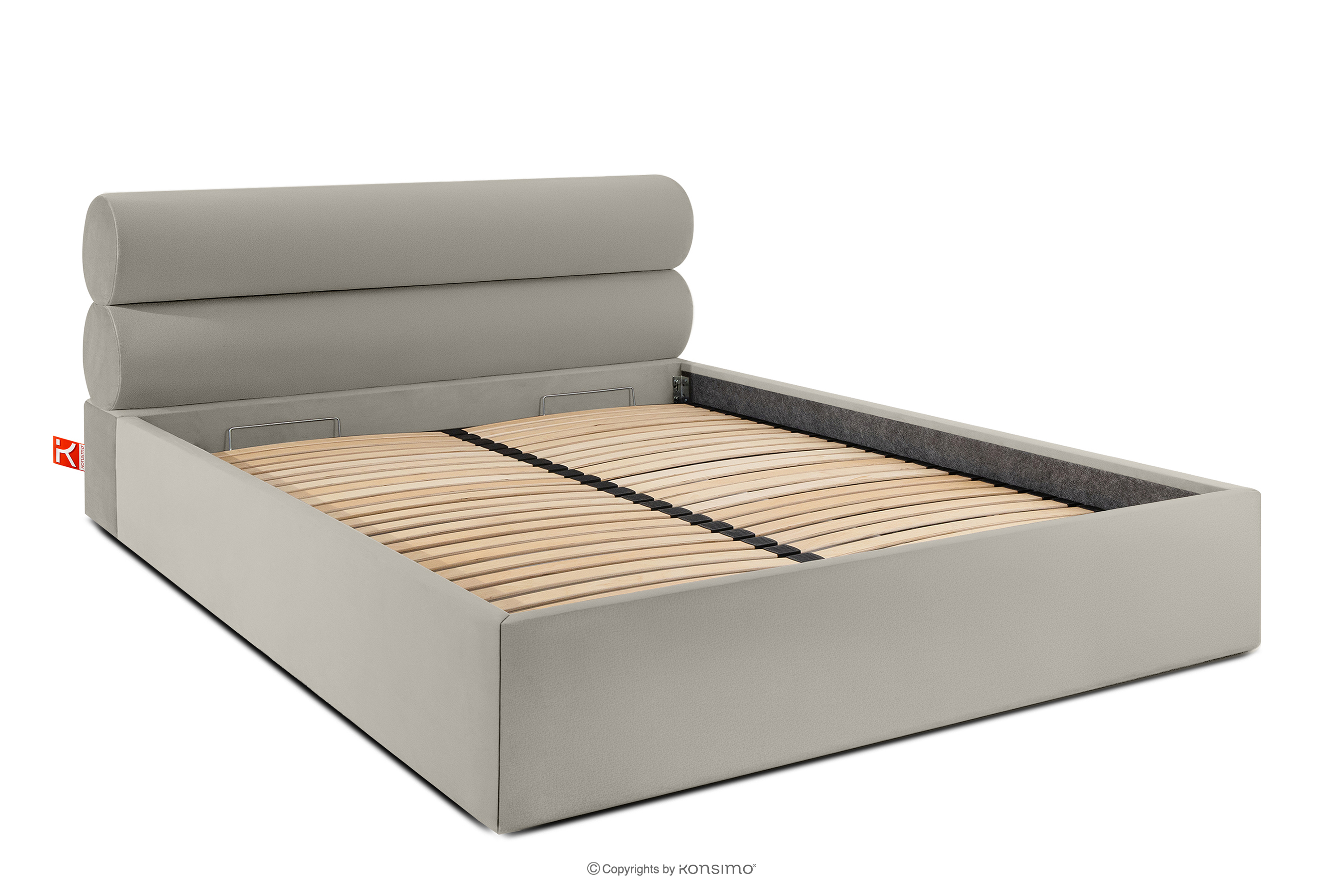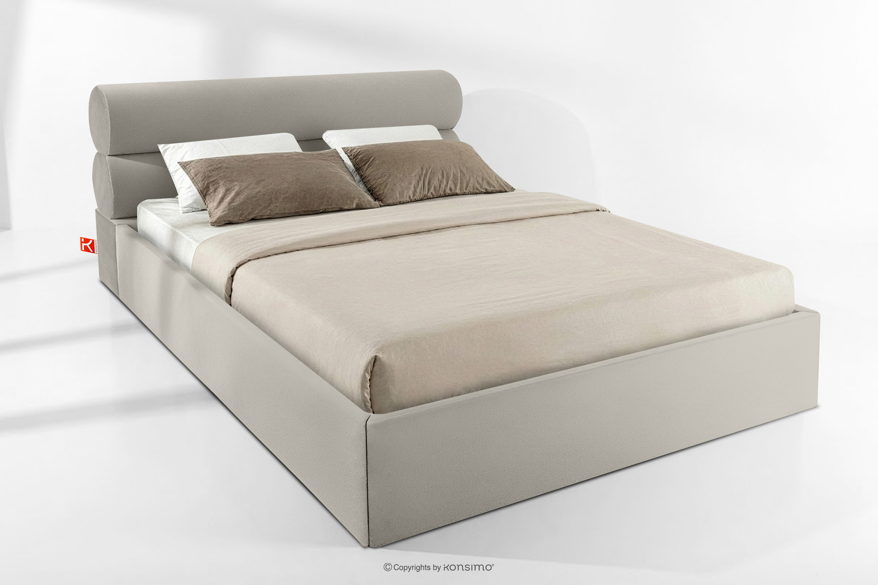 LUNEO Łóżko tapicerowane w stylu japandi z pojemnikiem na pościel 200 cm kremowy