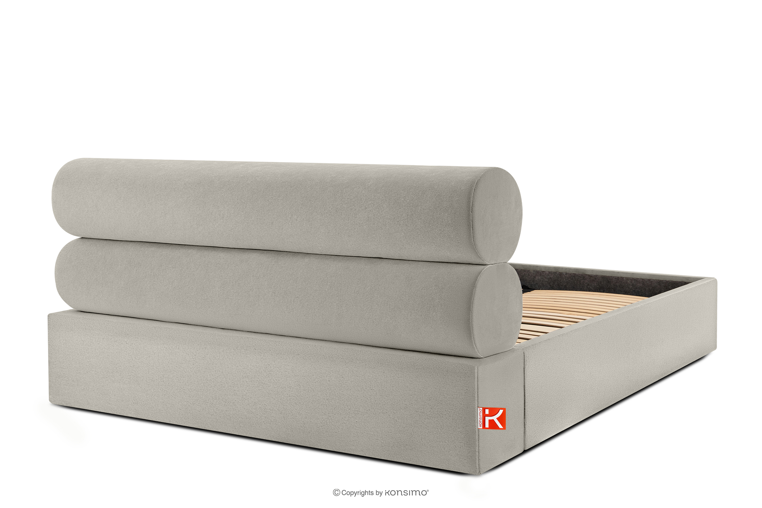 LUNEO zobacz całą kolekcję Łóżko tapicerowane w stylu japandi z pojemnikiem na pościel 200 cm kremowy- kolor kremowy