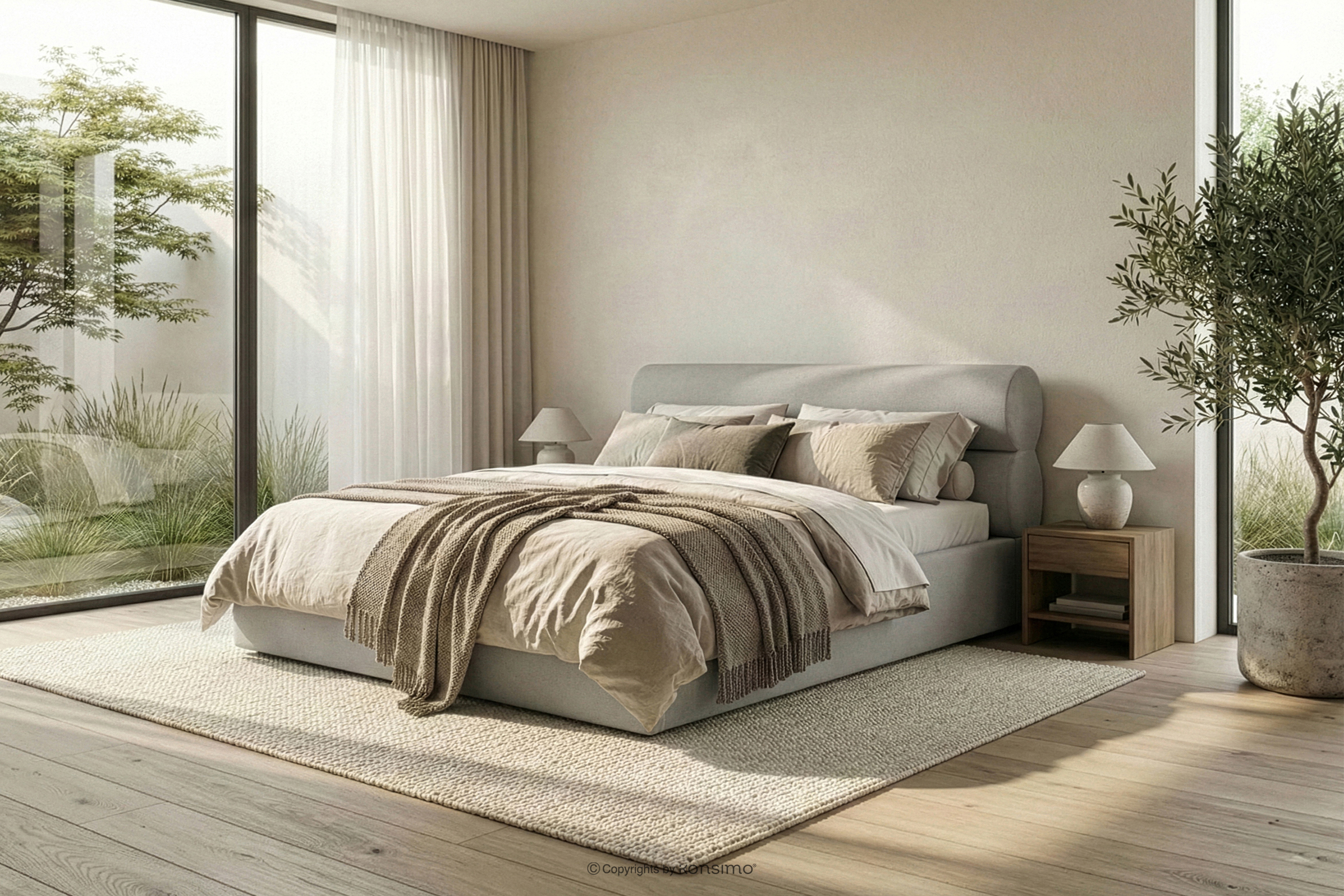 Ta dbałość o komfort sensoryczny obejmuje każdy centymetr mebla; cała rama została starannie wyściełana, co nadaje bryle wizualnej lekkości i niezwykłej przytulności. Brak twardych krawędzi to nie tylko kwestia estetyki, ale i realne zwiększenie bezpieczeństwa codziennego użytkowania. To projekt stworzony dla tych, którzy od swojej sypialni oczekują czegoś więcej niż tylko miejsca do spania – oczekują autentycznego azylu i relaksu na najwyższym poziomie.