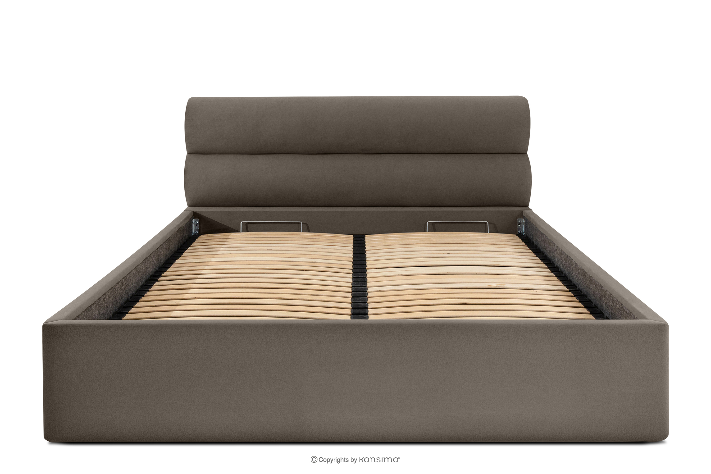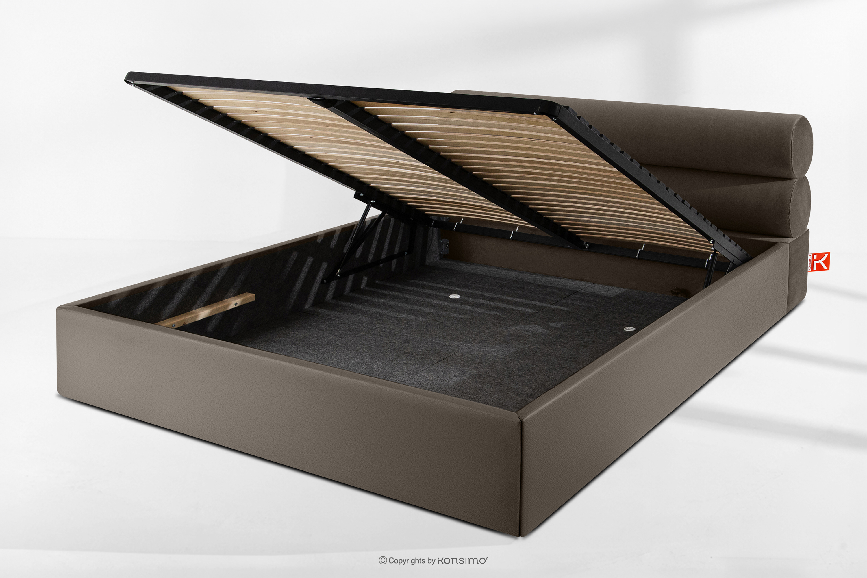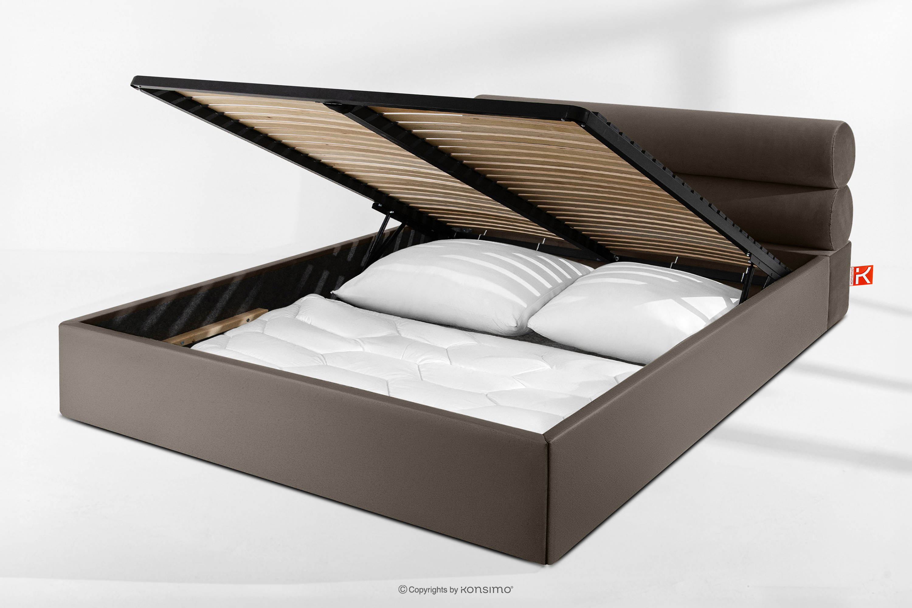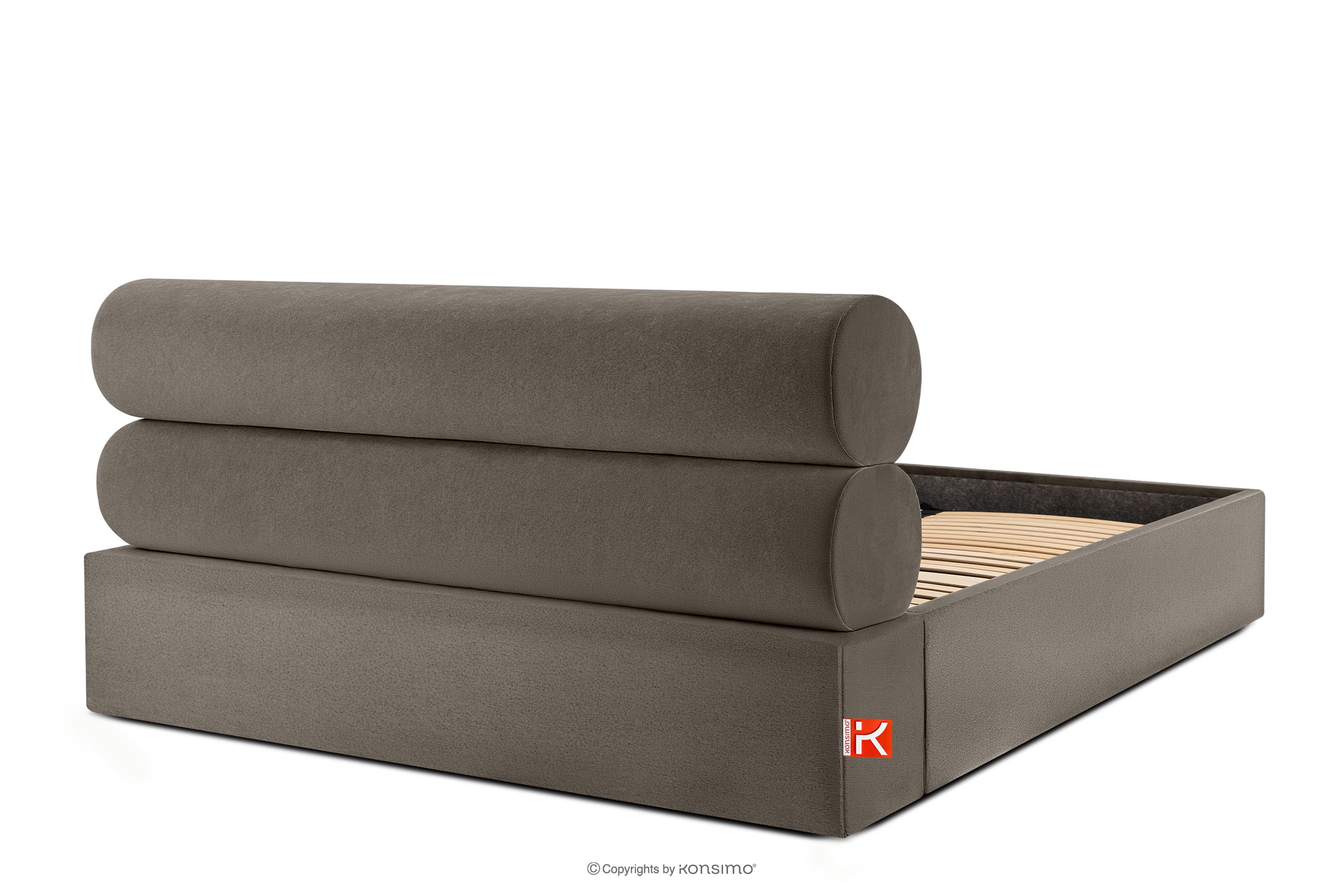 LUNEO zobacz całą kolekcję Łóżko tapicerowane w stylu japandi z pojemnikiem na pościel 200 cm brązowy- kolor brązowy