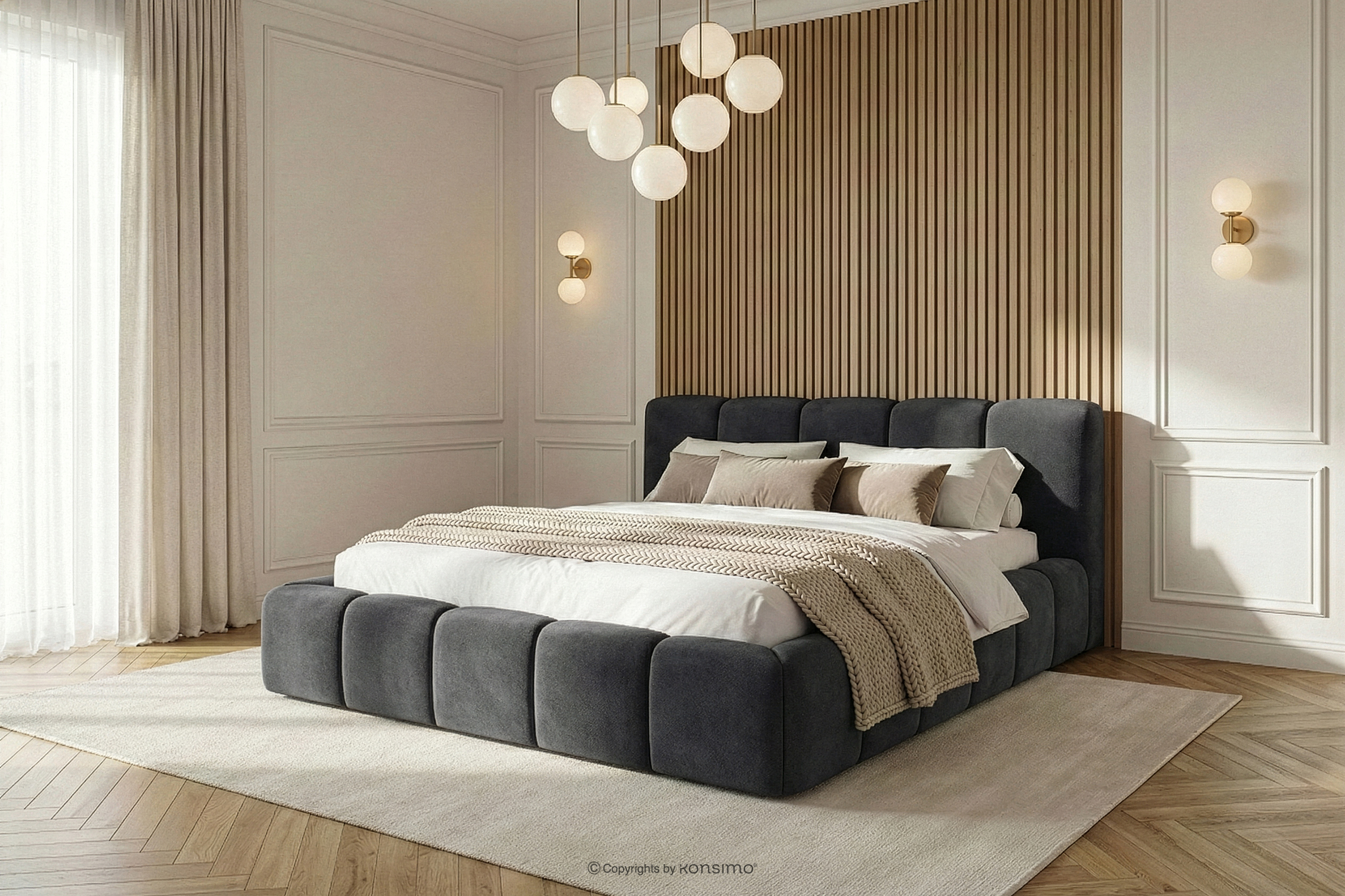 OLMIRA zobacz całą kolekcję Łóżko tapicerowane z pojemnikiem na pościel 160 cm antracytowy- kolor antracytowy