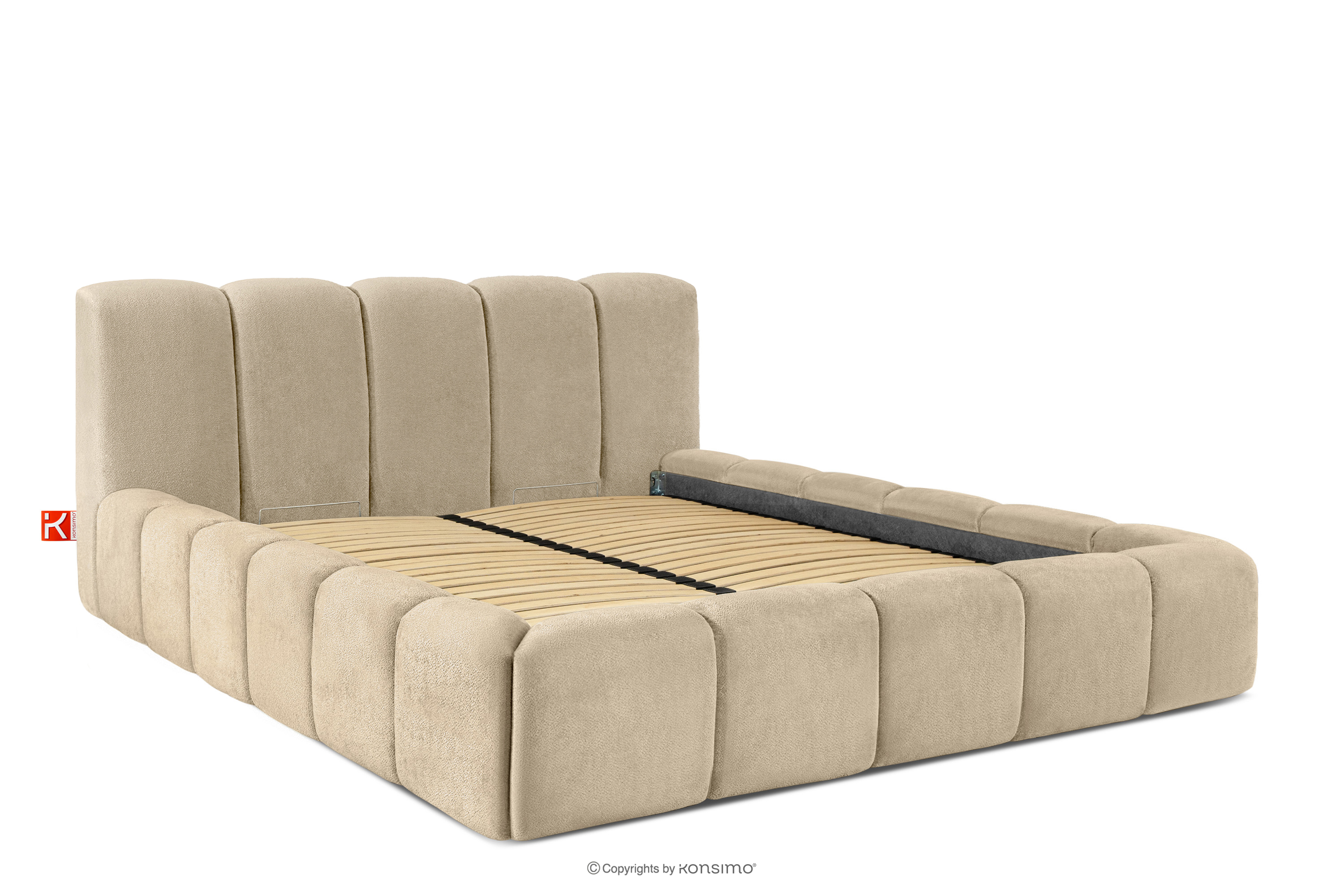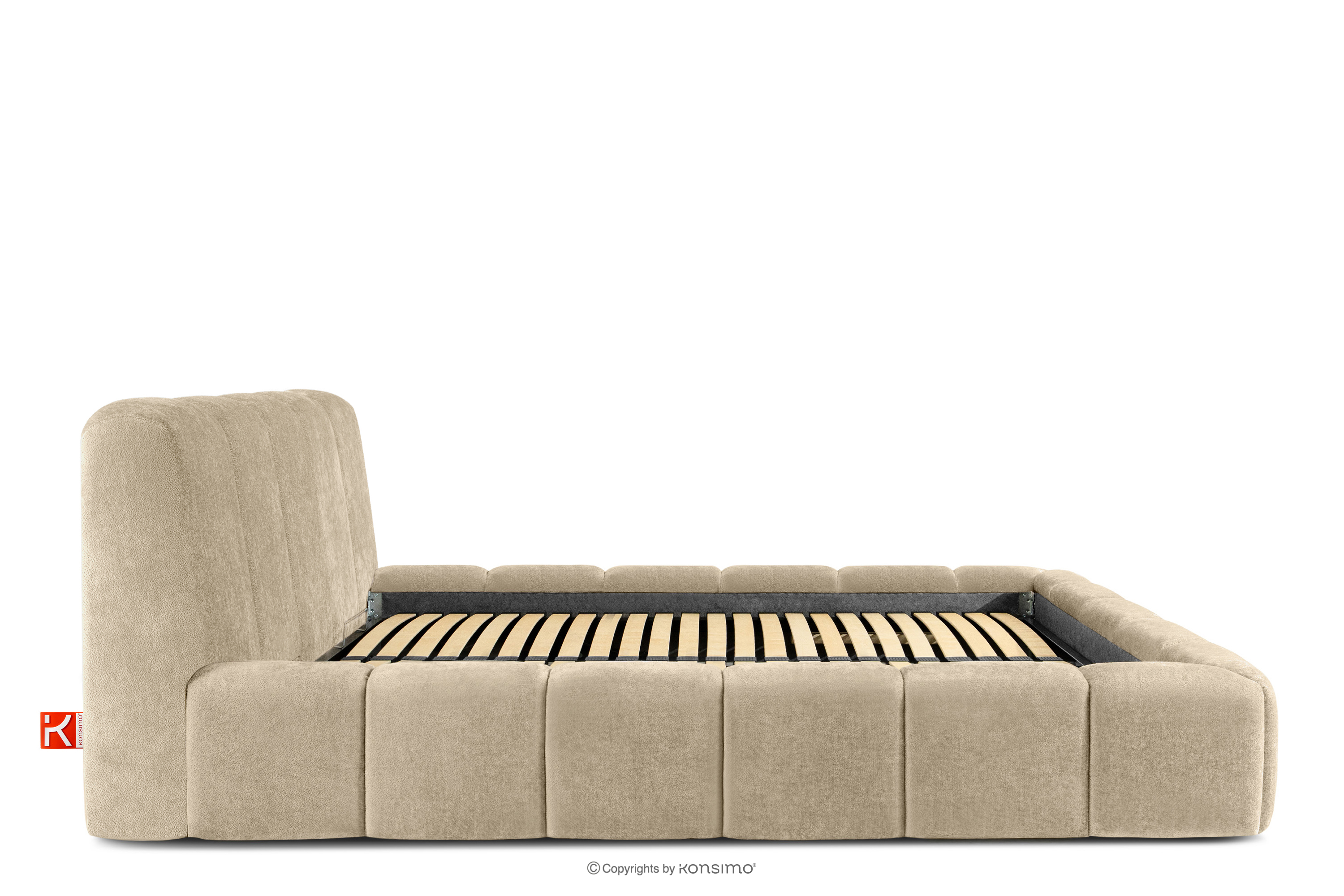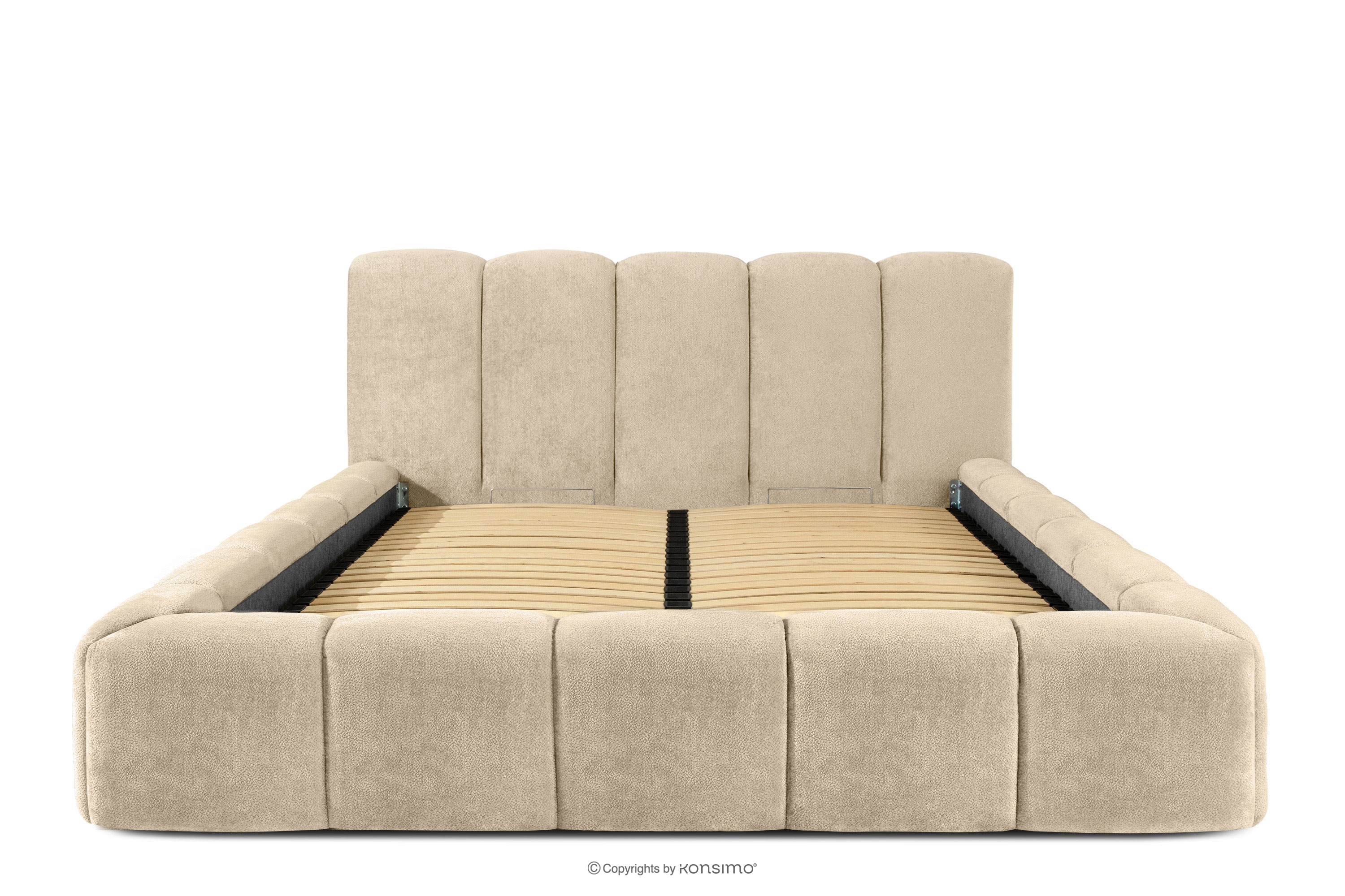 OLMIRA zobacz całą kolekcję Łóżko tapicerowane z pojemnikiem na pościel 160 cm beżowy- kolor beżowy