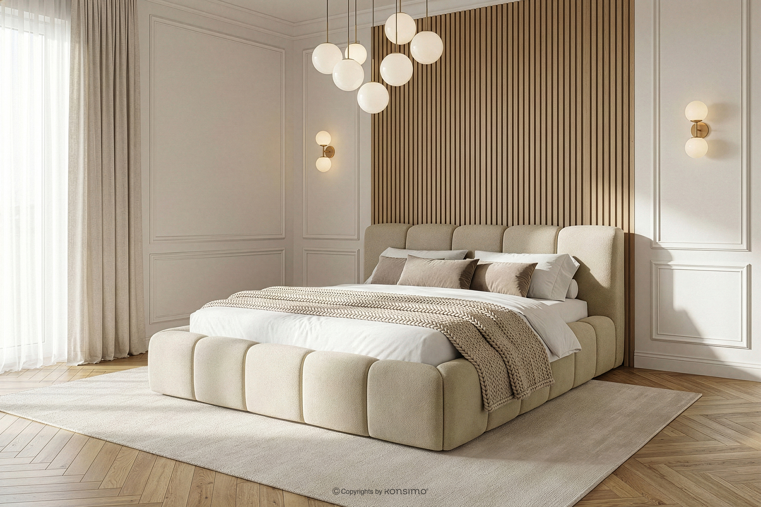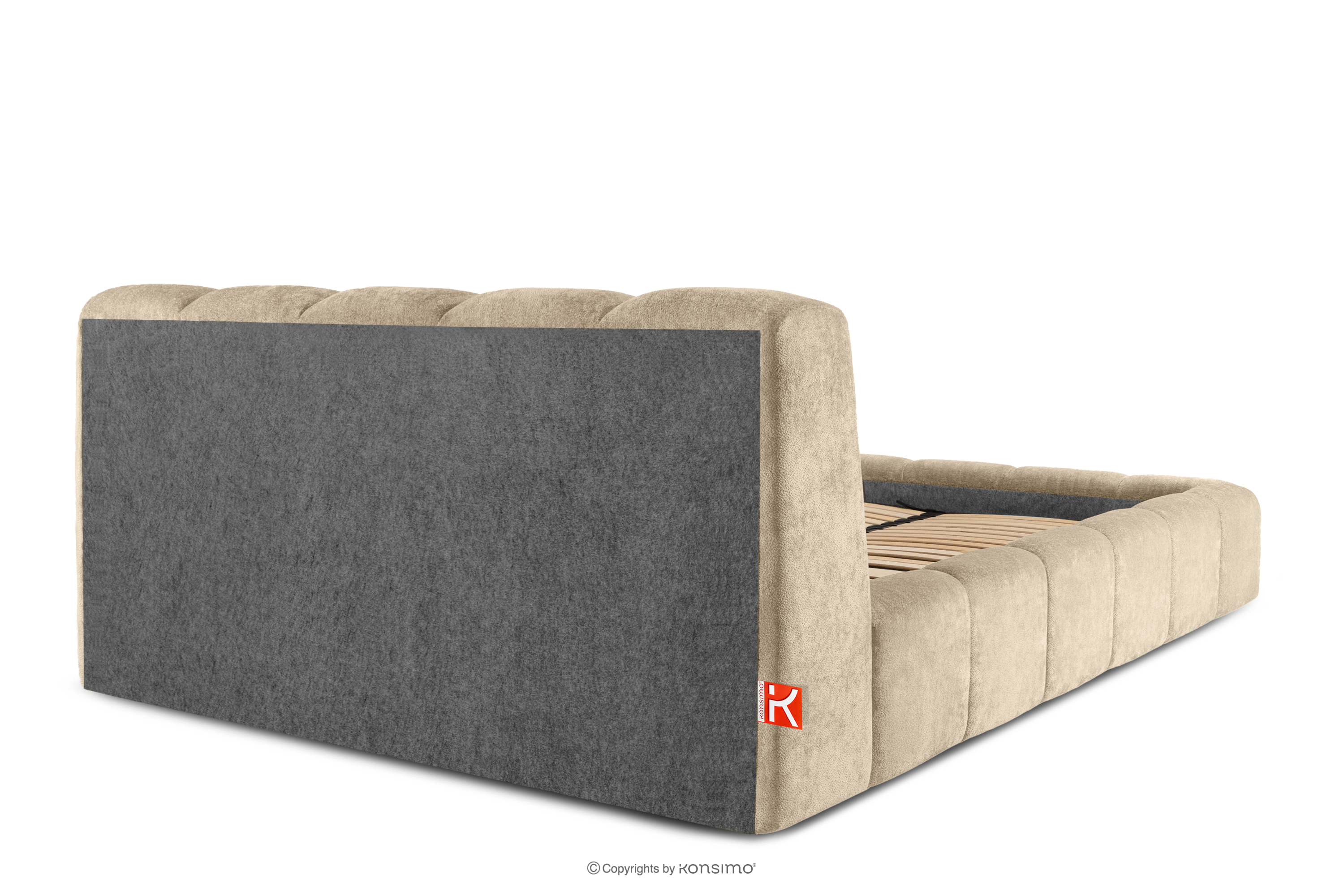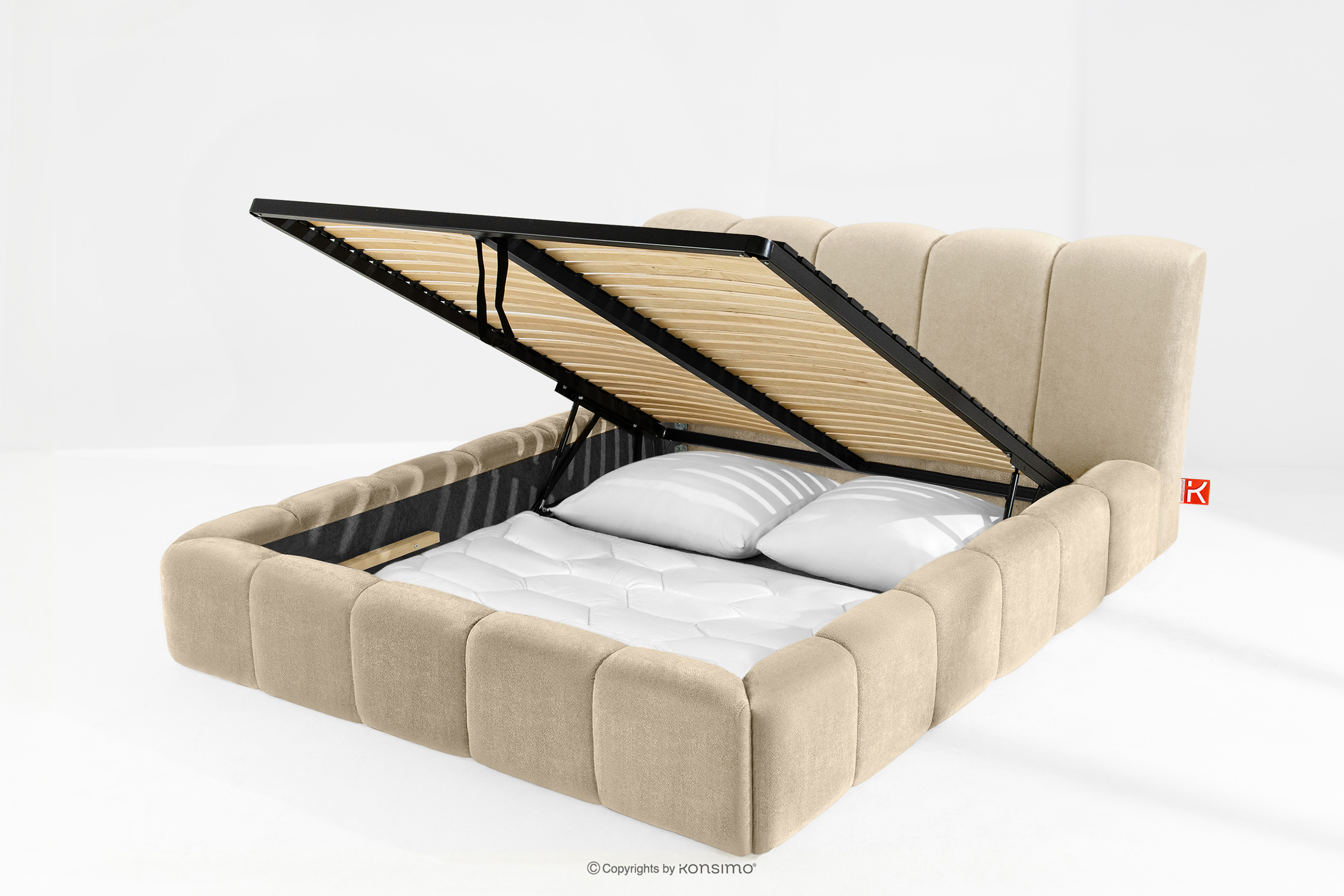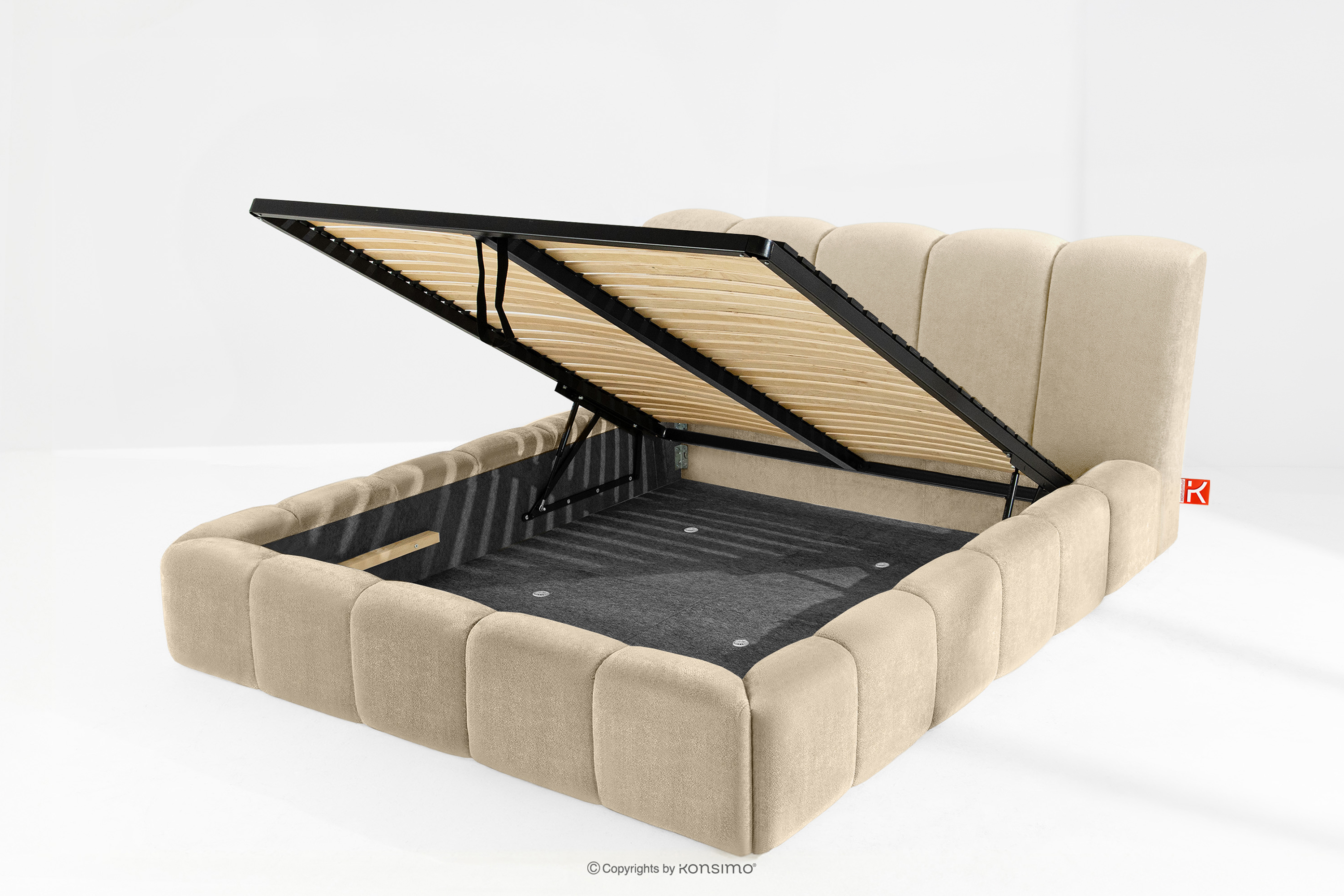 OLMIRA zobacz całą kolekcję Łóżko tapicerowane z pojemnikiem na pościel 160 cm beżowy- kolor beżowy
