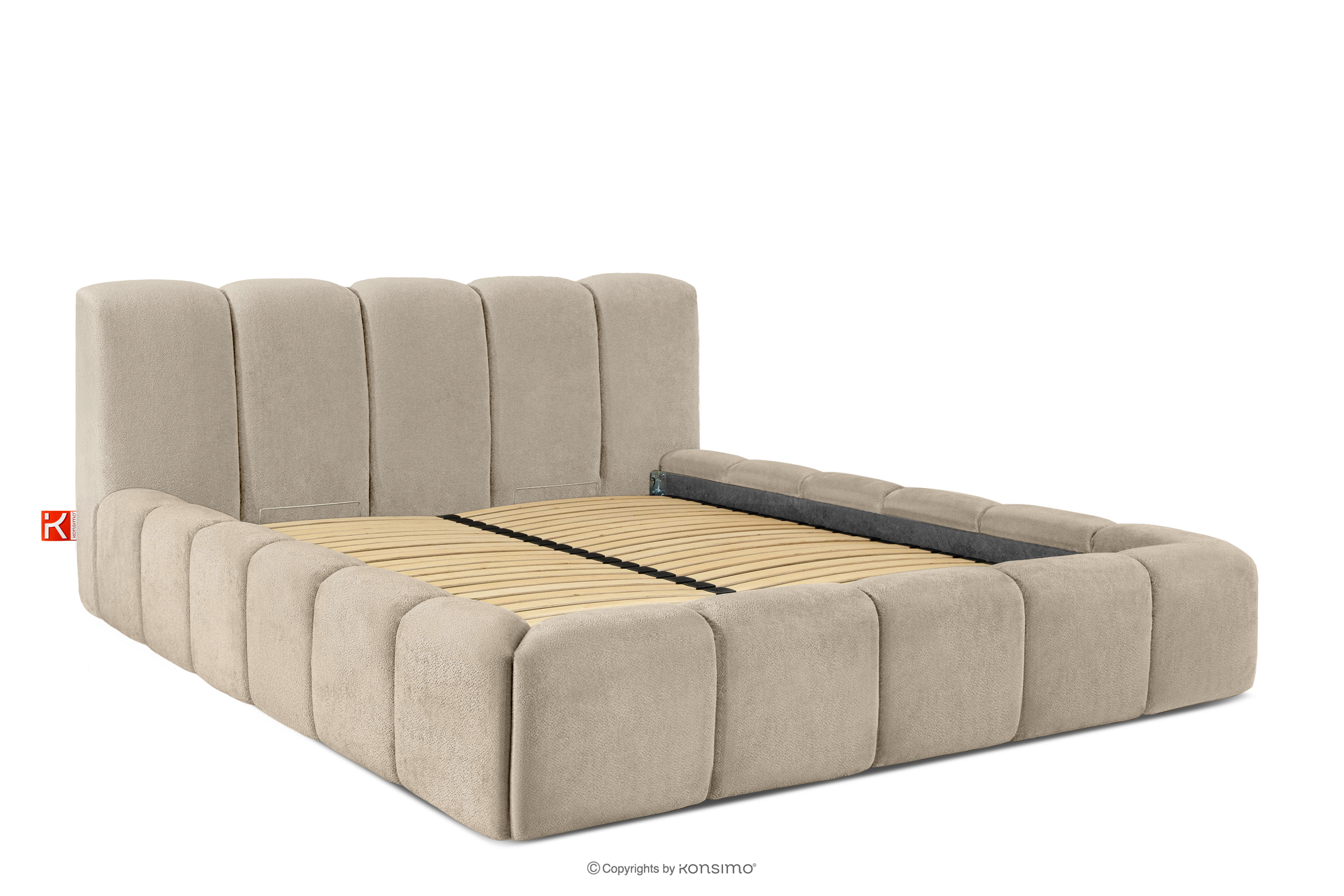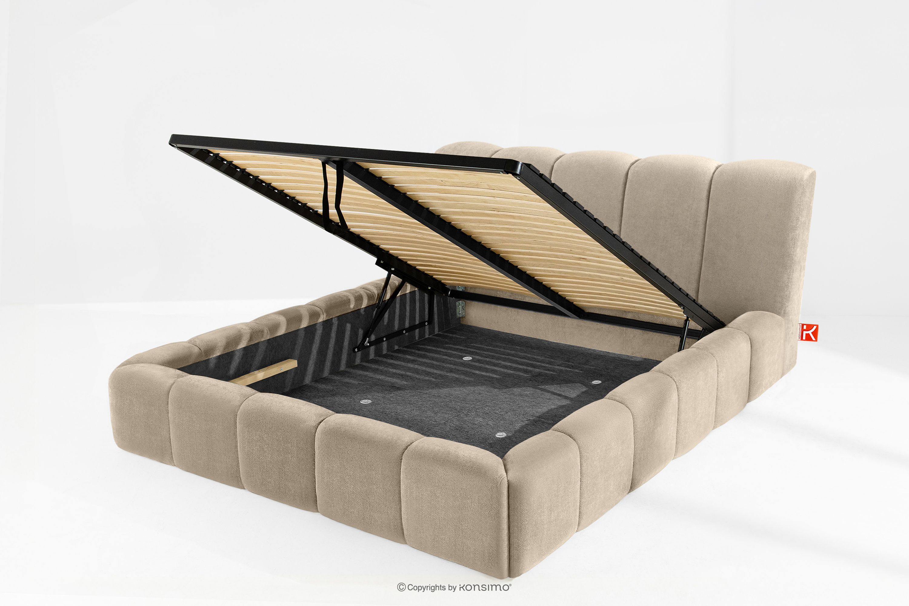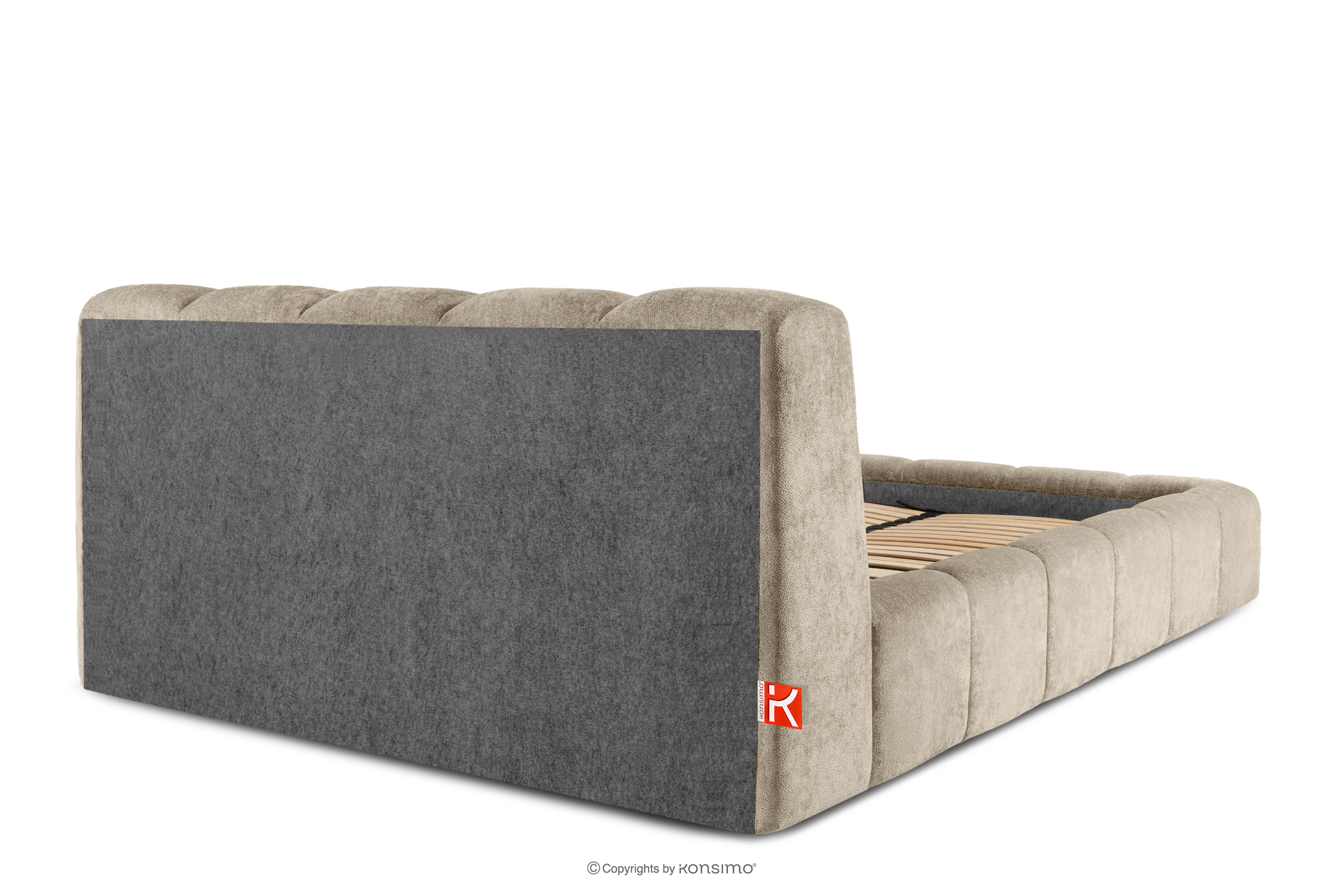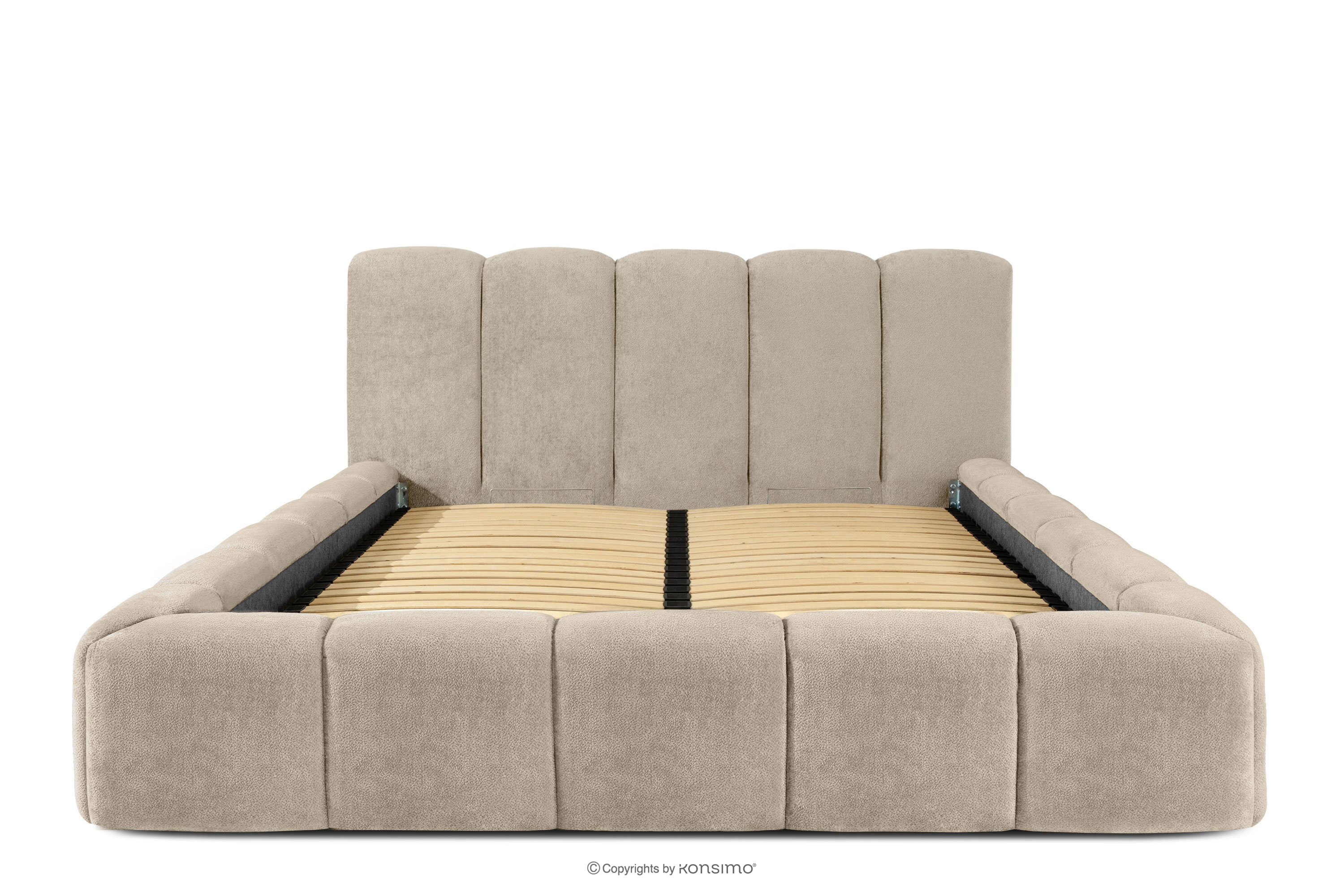 OLMIRA zobacz całą kolekcję Łóżko tapicerowane z pojemnikiem na pościel 160 cm szarobeżowy- kolor szarobeżowy