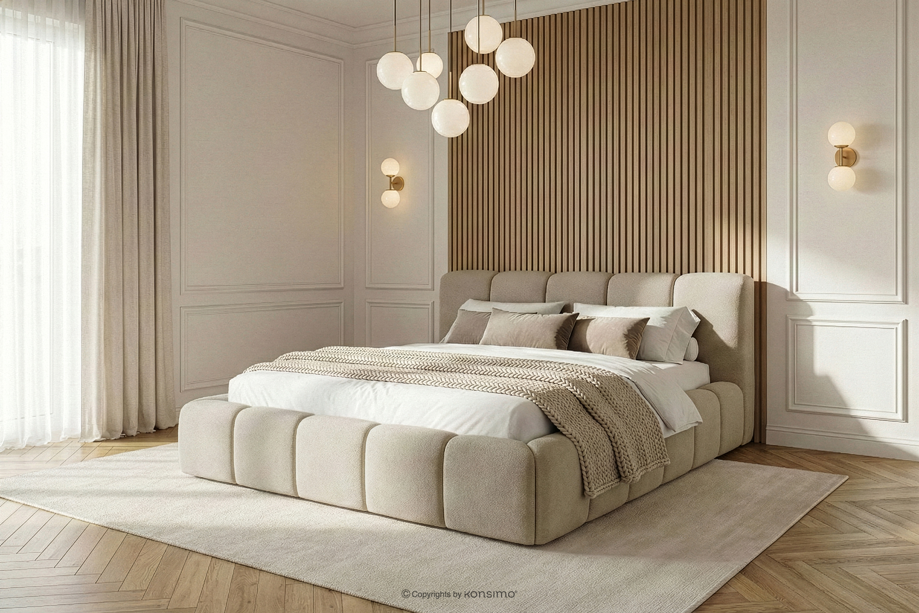 Łóżko tapicerowane z pojemnikiem na pościel 160 cm szarobeżowy to inwestycja w jakość życia, łącząca w sobie bezkompromisową wygodę z nowoczesnym designem. Centralnym punktem każdego modelu jest miękkie, tapicerowane wezgłowie wypełnione wysokogatunkową pianką, które zapewnia idealne podparcie podczas wieczornego czytania książki czy porannej kawy. Miękkość ta nie ogranicza się jedynie do zagłówka – cała rama łóżka została starannie wyściełana, co nie tylko nadaje meblowi luksusowy, przytulny wygląd, ale także zwiększa bezpieczeństwo użytkowania, eliminując twarde krawędzie.