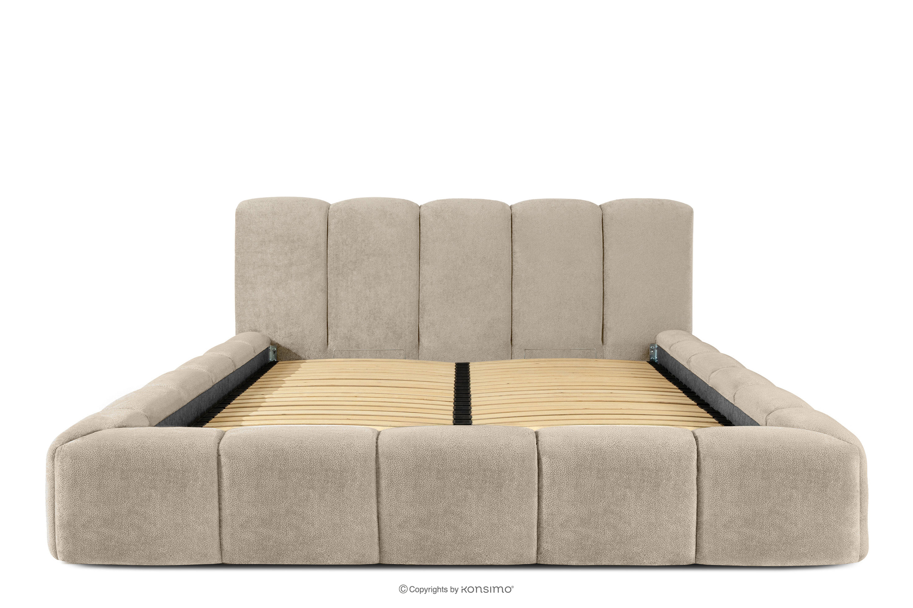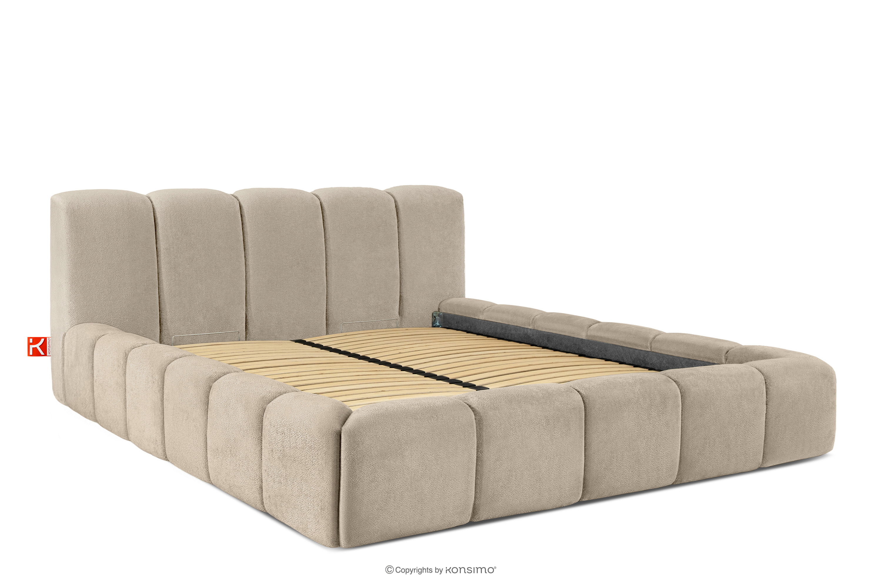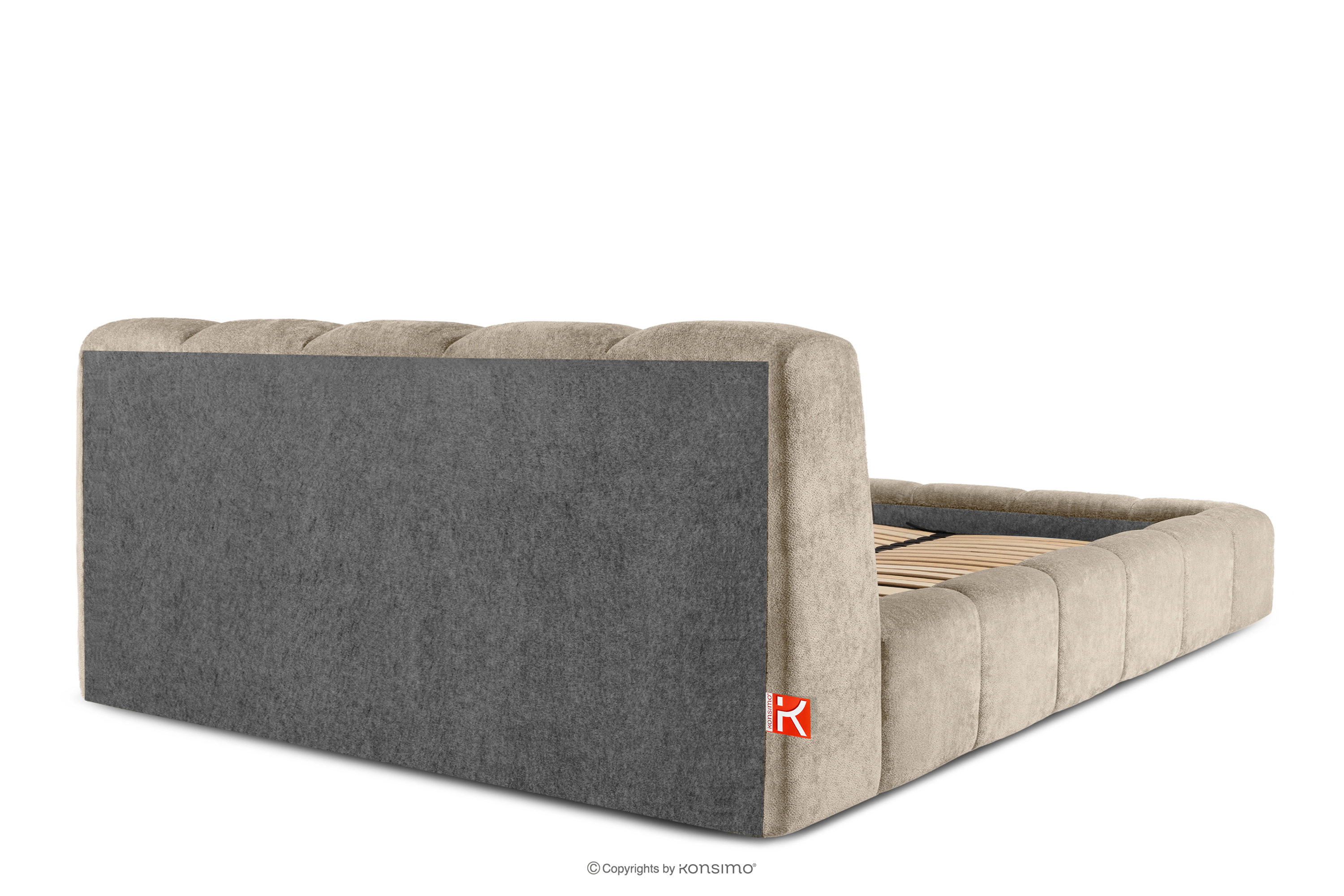 OLMIRA zobacz całą kolekcję Łóżko tapicerowane z pojemnikiem na pościel 180 cm szarobeżowy- kolor szarobeżowy