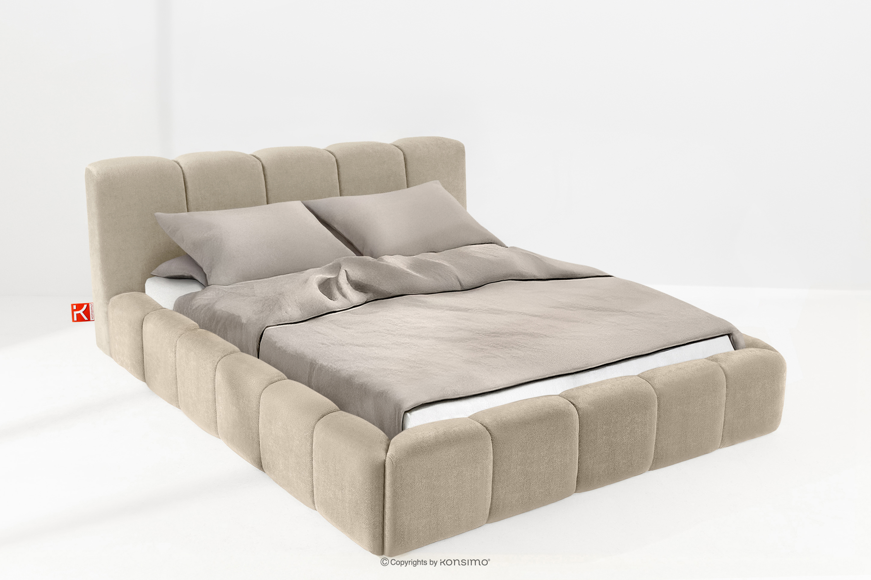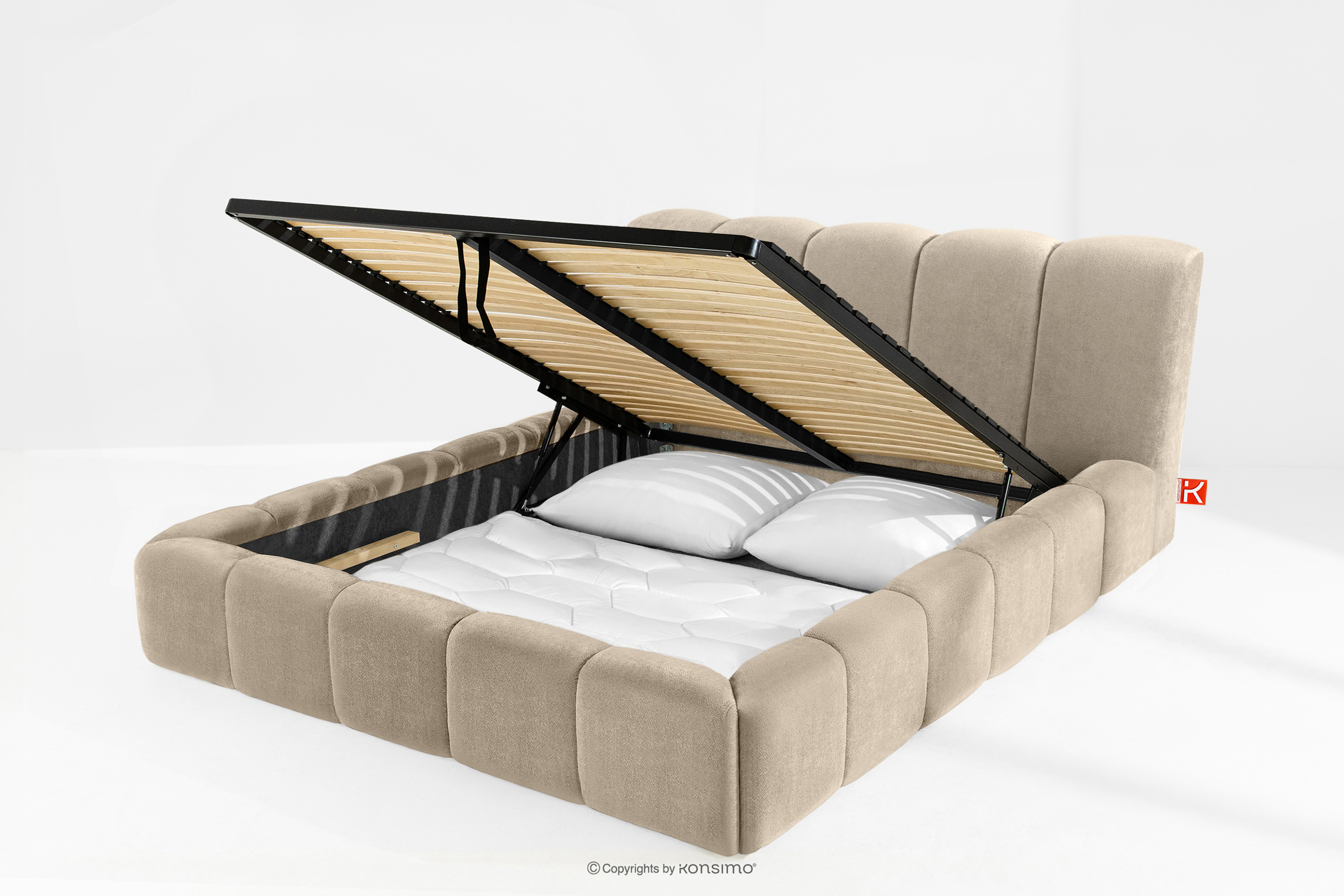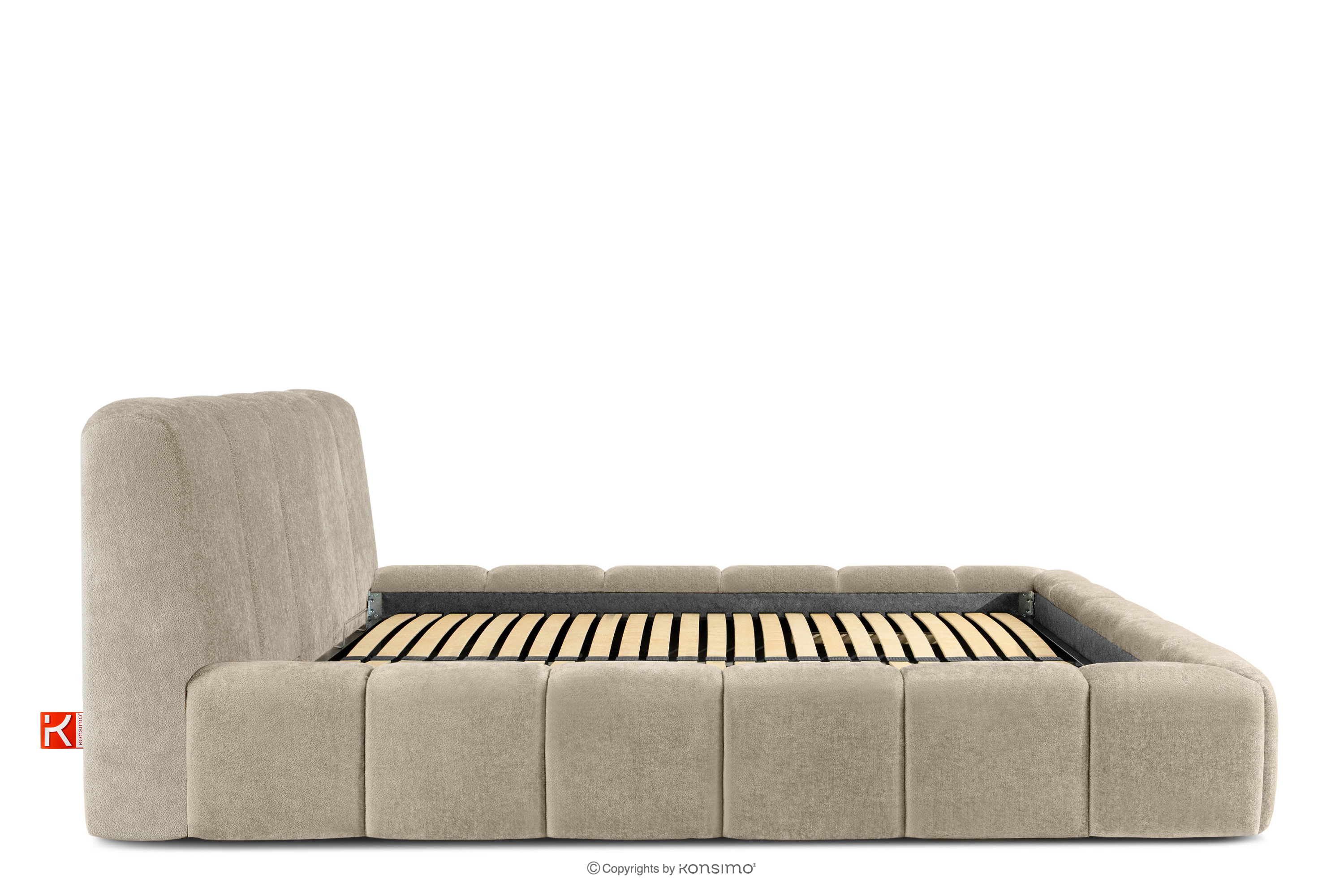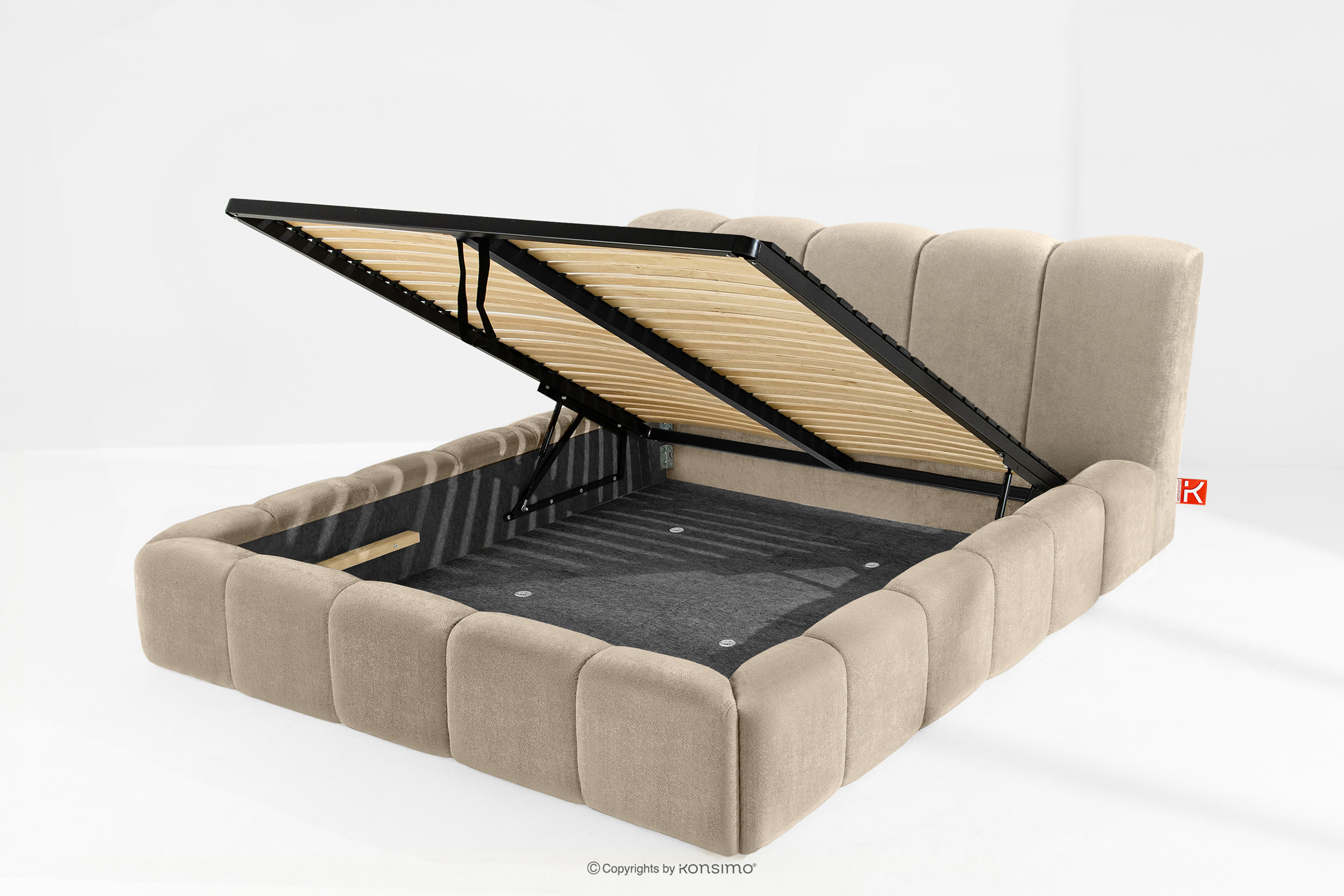 OLMIRA zobacz całą kolekcję Łóżko tapicerowane z pojemnikiem na pościel 180 cm szarobeżowy- kolor szarobeżowy