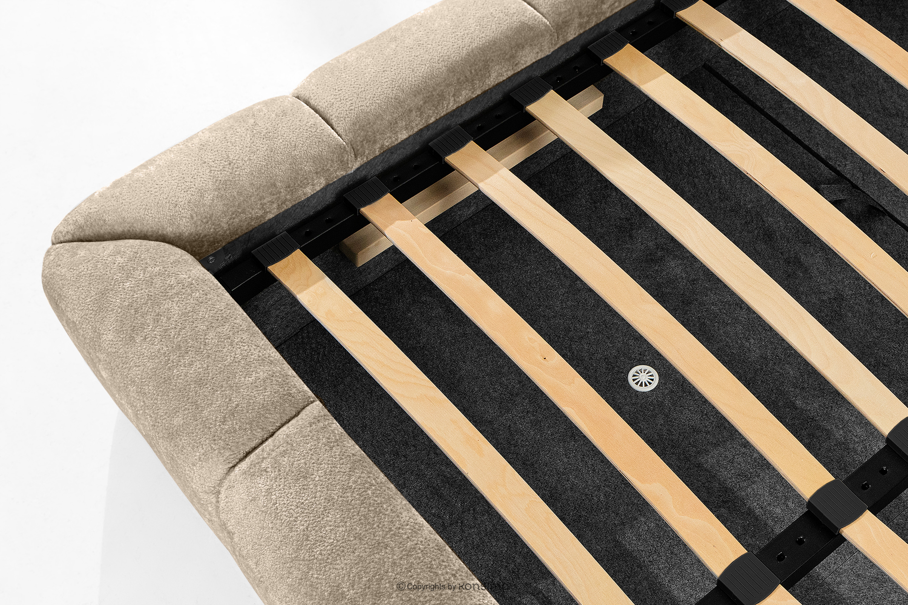 - Stelaż: metalowna rama, sprężynujące listwy drewniane, tak