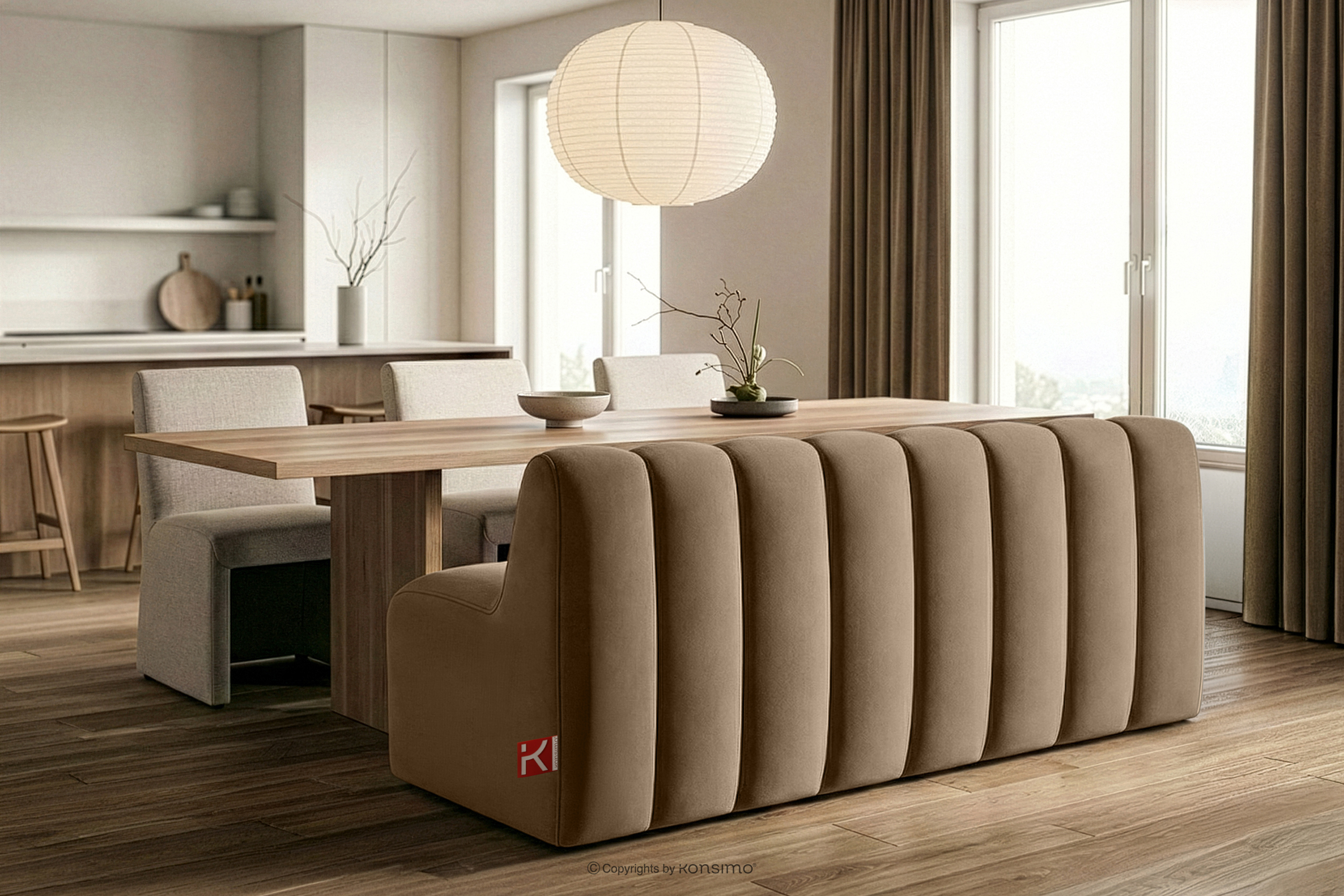 CORDA zobacz całą kolekcję Ławka tapicerowana z oparciem 160 cm welur beżowy- kolor beżowy
