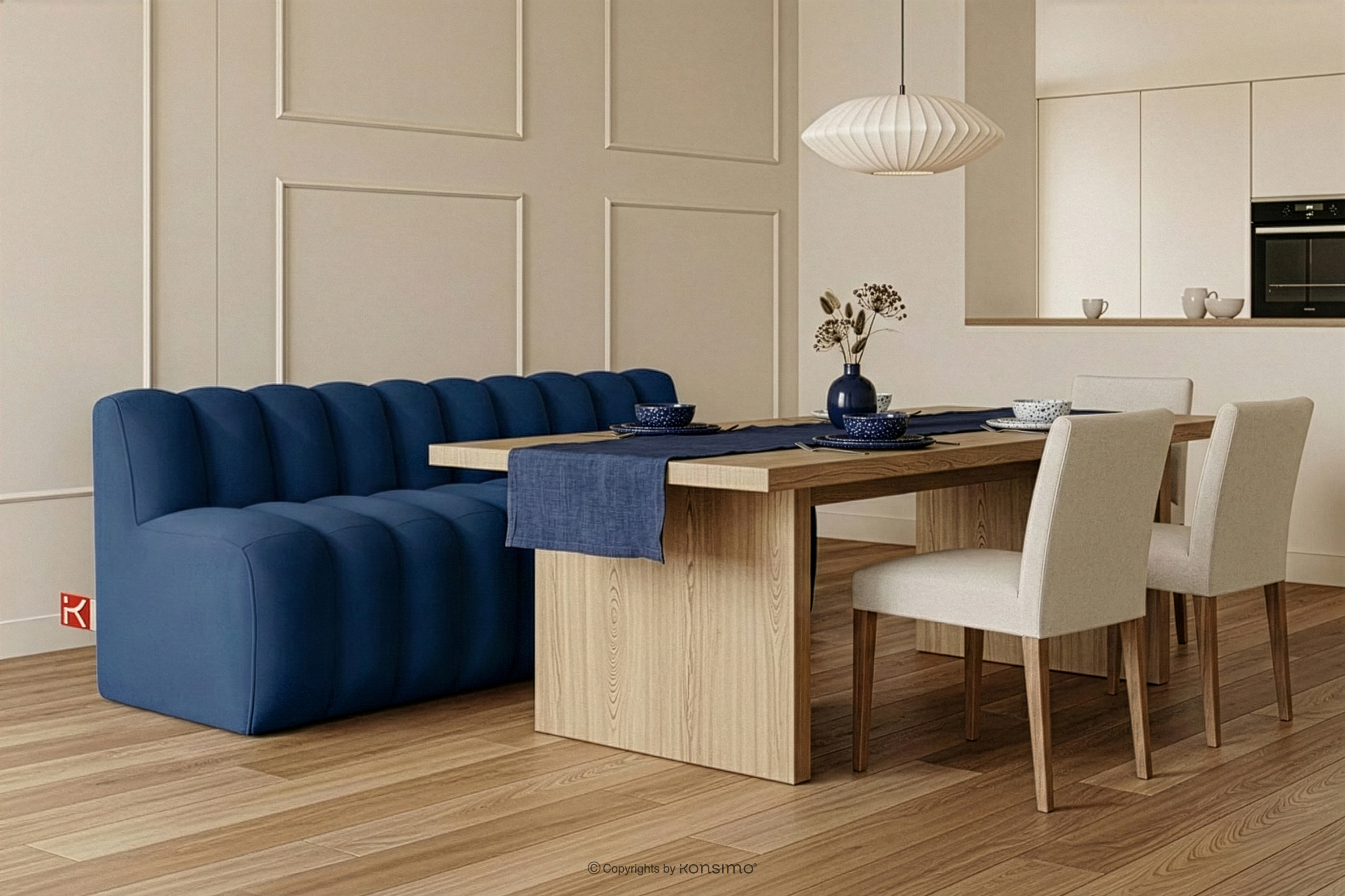 Ławka tapicerowana z oparciem 200 cm welur granatowy to rozwiązanie dla tych, którzy szukają złotego środka między stylem a czystą praktycznością. Zamiast tradycyjnych krzeseł, które często wprowadzają wizualny chaos, oferujemy zwartą, modułową bryłę o miękkich krawędziach. Brak ostrych narożników to nie tylko kwestia estetyki, ale przede wszystkim bezpieczeństwa – szczególnie w wąskich przejściach, korytarzach czy domach, w których bawią się dzieci.