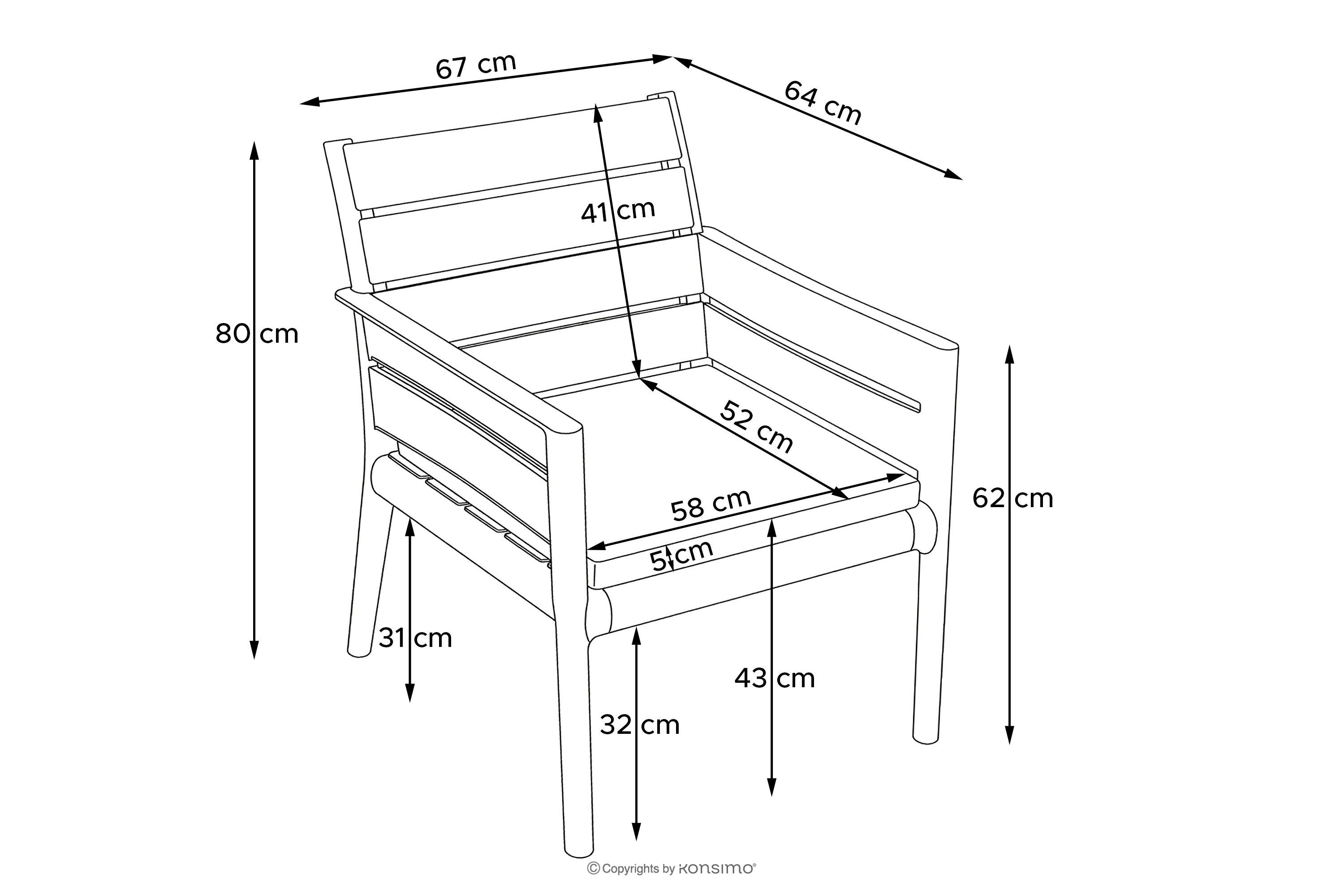 - Fotel (cm): 67x80x64