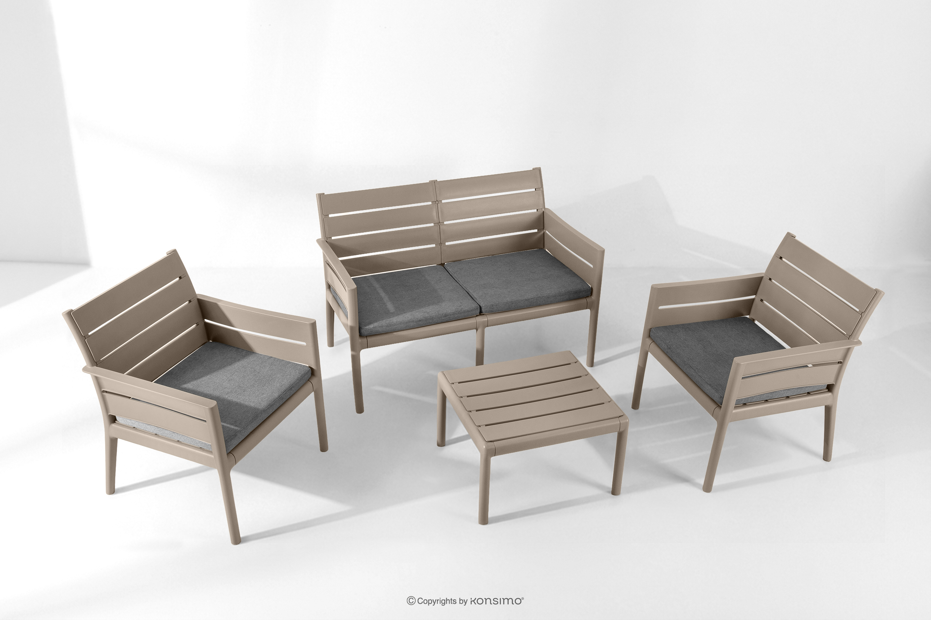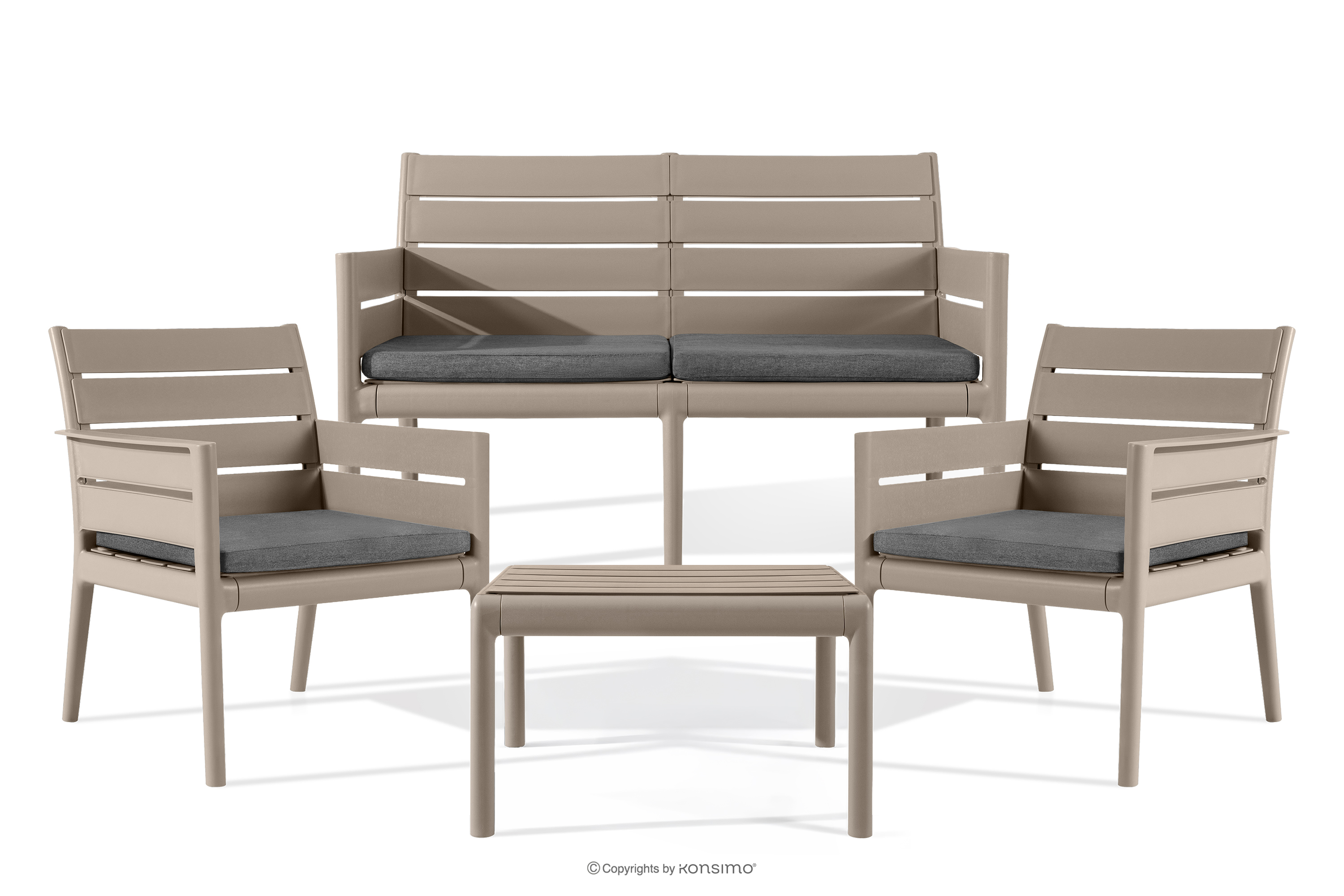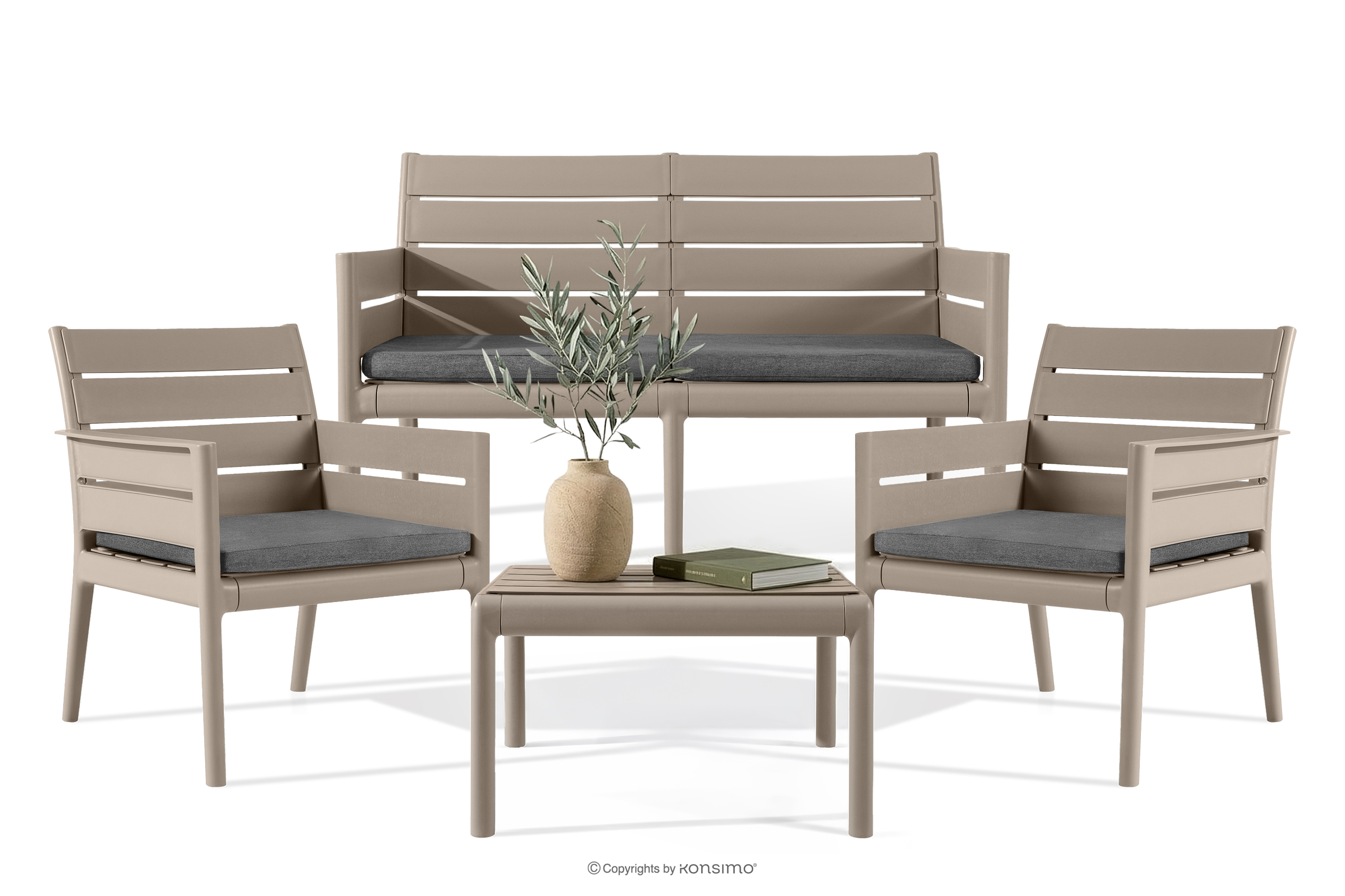 MITTU zobacz całą kolekcję Zestaw mebli ogrodowych polipropylen sofa, 2x krzesło, stolik kawowy beżowy/brązowy- kolor beżowy/brązowy
