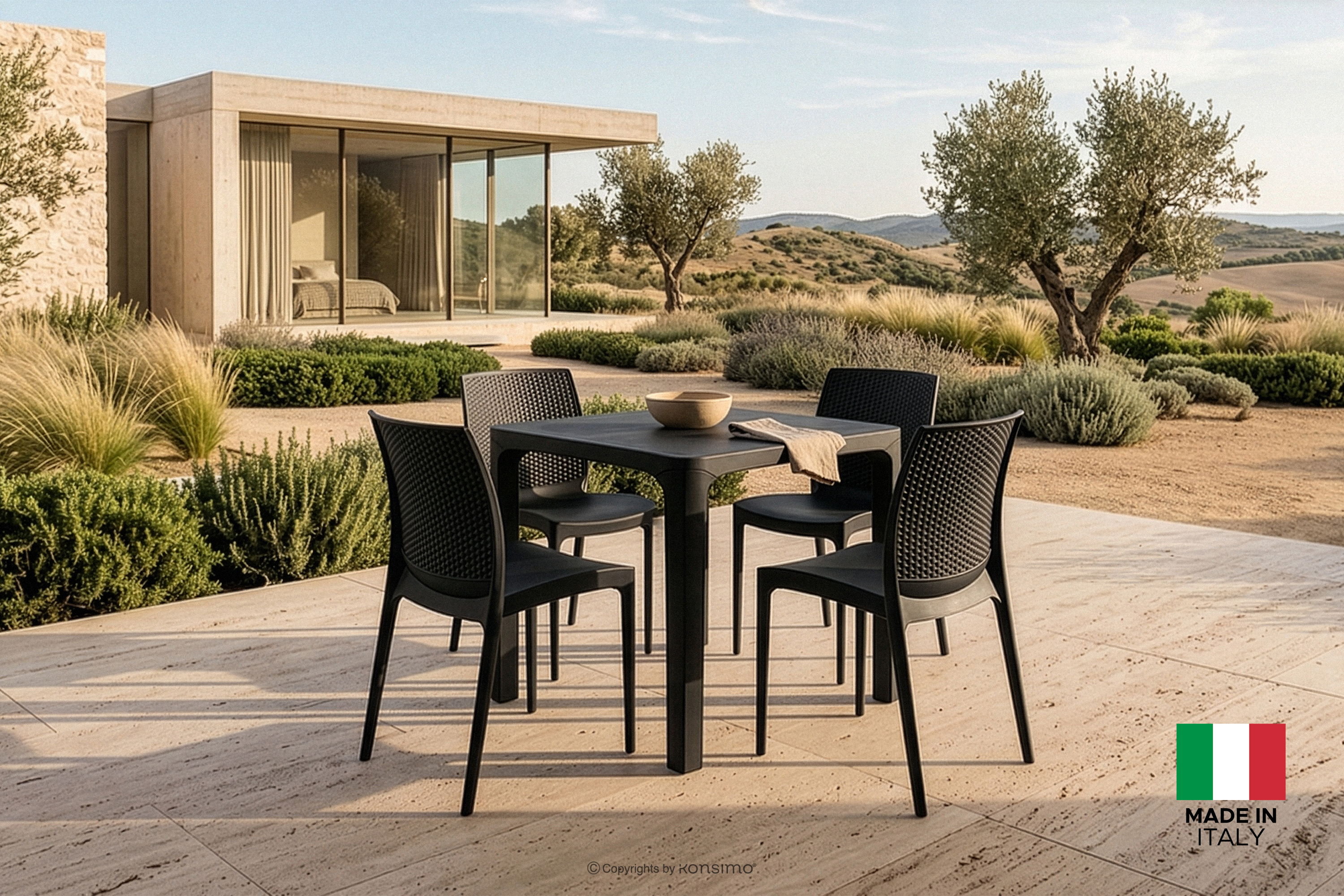 Wybór tego materiału nie był przypadkowy – polipropylen gwarantuje odporność na codzienne użytkowanie i warunki atmosferyczne, czyniąc meble niezwykle praktycznymi i łatwymi w bieżącej konserwacji, co jest kluczowe zarówno w przestrzeniach ogrodowych, domowych, jak i komercyjnych. Ważnym aspektem kolekcji jest ekologia; produkty powstały z materiałów pochodzących z recyklingu i w pełni nadają się do ponownego przetworzenia, co wpisuje się w ideę zrównoważonego rozwoju i odpowiedzialnego meblarstwa. Konstrukcja krzeseł RANTU została zaprojektowana jako solidna i stabilna, co potwierdza ich przynależność do klasy produktów spełniających rygorystyczne standardy sektora HoReCa, dedykowanego hotelom, restauracjom i kawiarniom. Dzięki precyzyjnemu wykonaniu "Made in Italy", każdy element kolekcji emanuje dbałością o detal i europejską jakością, która przekłada się na wieloletnią niezawodność i estetyczną nienaganność w każdym calu.