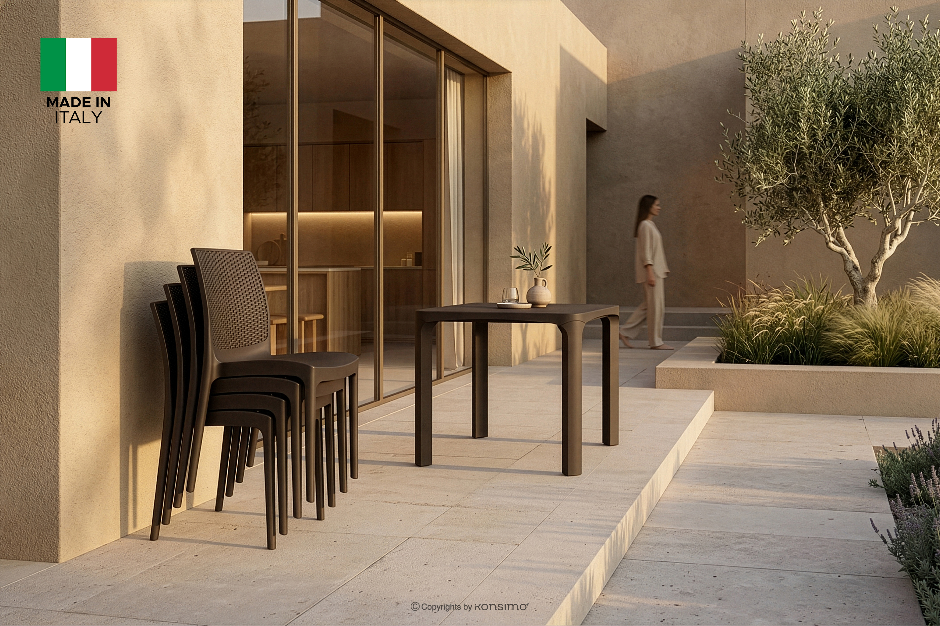 Wybór tego materiału nie był przypadkowy – polipropylen gwarantuje odporność na codzienne użytkowanie i warunki atmosferyczne, czyniąc meble niezwykle praktycznymi i łatwymi w bieżącej konserwacji, co jest kluczowe zarówno w przestrzeniach ogrodowych, domowych, jak i komercyjnych. Ważnym aspektem kolekcji jest ekologia; produkty powstały z materiałów pochodzących z recyklingu i w pełni nadają się do ponownego przetworzenia, co wpisuje się w ideę zrównoważonego rozwoju i odpowiedzialnego meblarstwa. Konstrukcja krzeseł RANTU została zaprojektowana jako solidna i stabilna, co potwierdza ich przynależność do klasy produktów spełniających rygorystyczne standardy sektora HoReCa, dedykowanego hotelom, restauracjom i kawiarniom. Dzięki precyzyjnemu wykonaniu "Made in Italy", każdy element kolekcji emanuje dbałością o detal i europejską jakością, która przekłada się na wieloletnią niezawodność i estetyczną nienaganność w każdym calu.