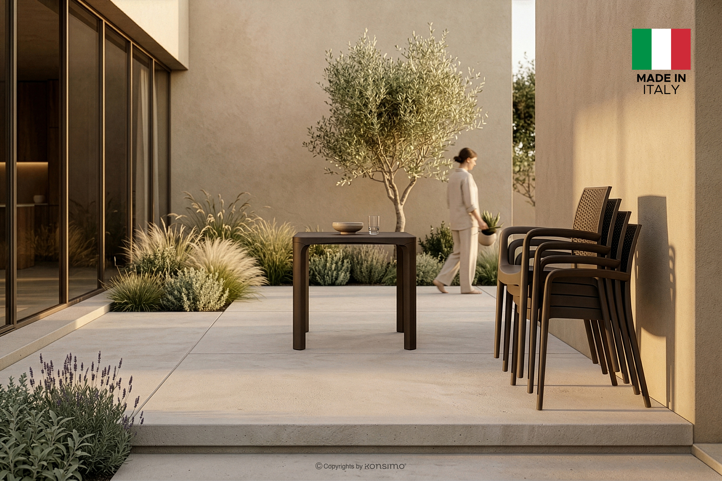 Wybór tego materiału nie był przypadkowy – polipropylen gwarantuje odporność na codzienne użytkowanie i warunki atmosferyczne, czyniąc meble niezwykle praktycznymi i łatwymi w bieżącej konserwacji, co jest kluczowe zarówno w przestrzeniach ogrodowych, domowych, jak i komercyjnych. Ważnym aspektem kolekcji jest ekologia; produkty powstały z materiałów pochodzących z recyklingu i w pełni nadają się do ponownego przetworzenia, co wpisuje się w ideę zrównoważonego rozwoju i odpowiedzialnego meblarstwa. Konstrukcja krzeseł RANTU została zaprojektowana jako solidna i stabilna, co potwierdza ich przynależność do klasy produktów spełniających rygorystyczne standardy sektora HoReCa, dedykowanego hotelom, restauracjom i kawiarniom. Dzięki precyzyjnemu wykonaniu "Made in Italy", każdy element kolekcji emanuje dbałością o detal i europejską jakością, która przekłada się na wieloletnią niezawodność i estetyczną nienaganność w każdym calu.