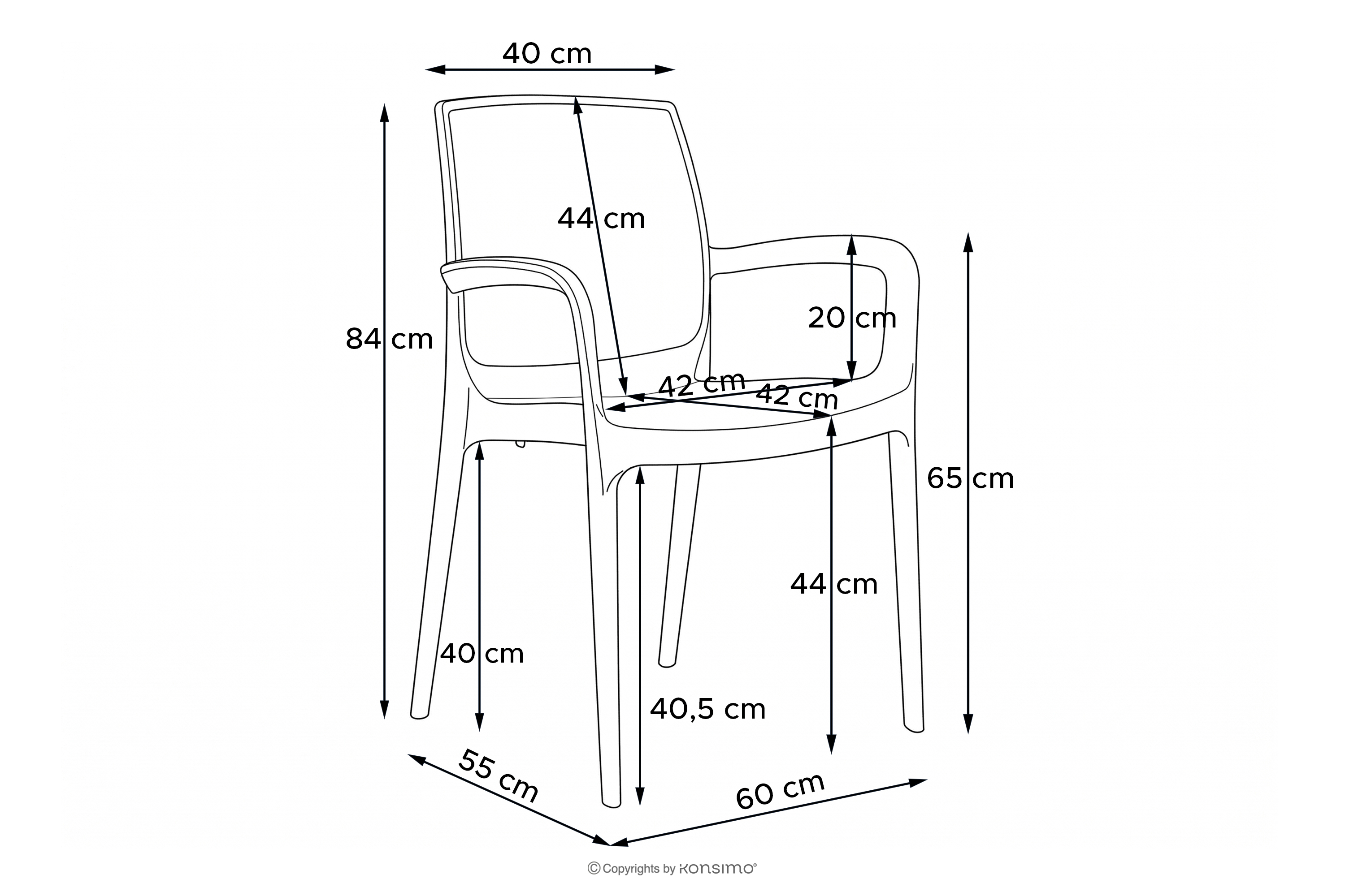 - Wymiary siedziska (cm): 42x44x42