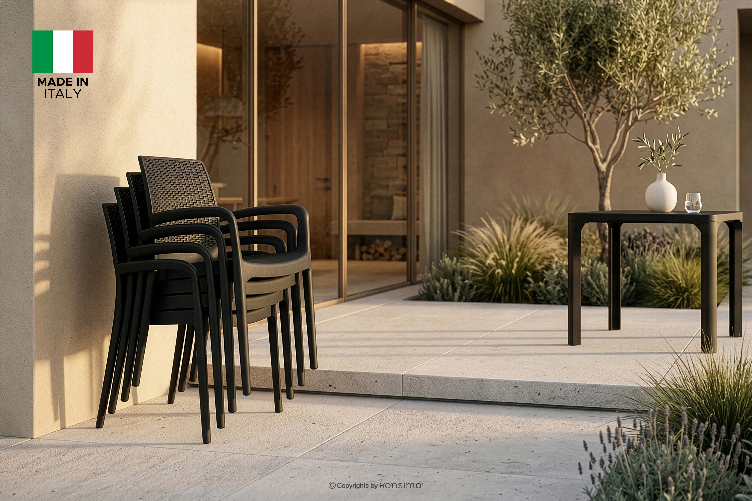 Krzesło ogrodowe z podłokietnikami polipropylen 4 szt. antracytowy stanowi kwintesencję nowoczesnego podejścia do projektowania mebli użytkowych, łącząc w sobie wyrafinowany włoski design z bezkompromisową funkcjonalnością, która sprosta oczekiwaniom nawet najbardziej wymagających użytkowników. Sercem tej linii są krzesła wykonane z najwyższej jakości polipropylenu, który został dobrany w taki sposób, aby zapewnić meblom wyjątkową trwałość przy jednoczesnym zachowaniu ich lekkości i mobilności.