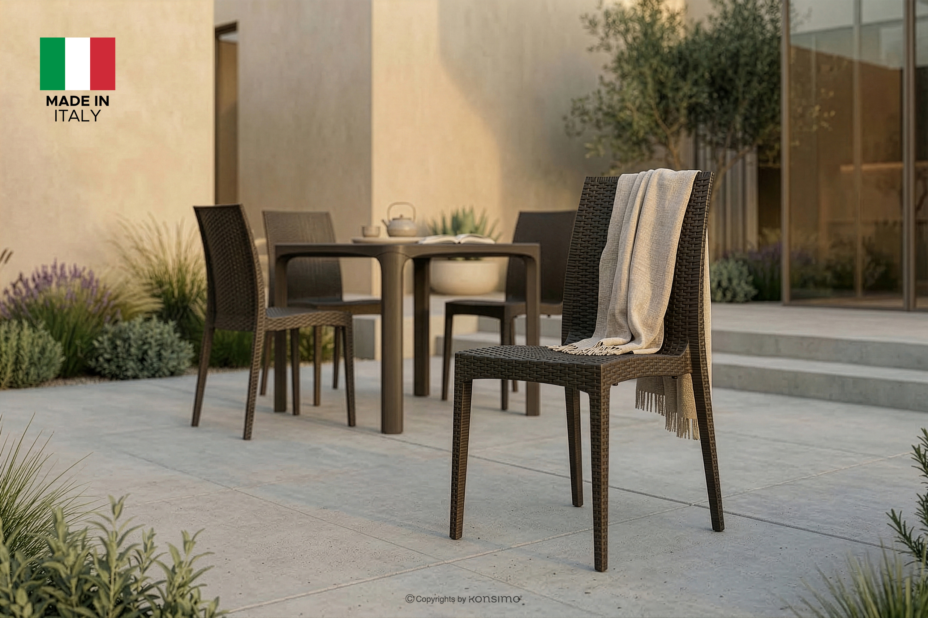 Wybór tego materiału nie był przypadkowy – polipropylen gwarantuje odporność na codzienne użytkowanie i warunki atmosferyczne, czyniąc meble niezwykle praktycznymi i łatwymi w bieżącej konserwacji, co jest kluczowe zarówno w przestrzeniach ogrodowych, domowych, jak i komercyjnych. Ważnym aspektem kolekcji jest ekologia; produkty powstały z materiałów pochodzących z recyklingu i w pełni nadają się do ponownego przetworzenia, co wpisuje się w ideę zrównoważonego rozwoju i odpowiedzialnego meblarstwa. Konstrukcja krzeseł RANTU została zaprojektowana jako solidna i stabilna, co potwierdza ich przynależność do klasy produktów spełniających rygorystyczne standardy sektora HoReCa, dedykowanego hotelom, restauracjom i kawiarniom. Dzięki precyzyjnemu wykonaniu "Made in Italy", każdy element kolekcji emanuje dbałością o detal i europejską jakością, która przekłada się na wieloletnią niezawodność i estetyczną nienaganność w każdym calu.