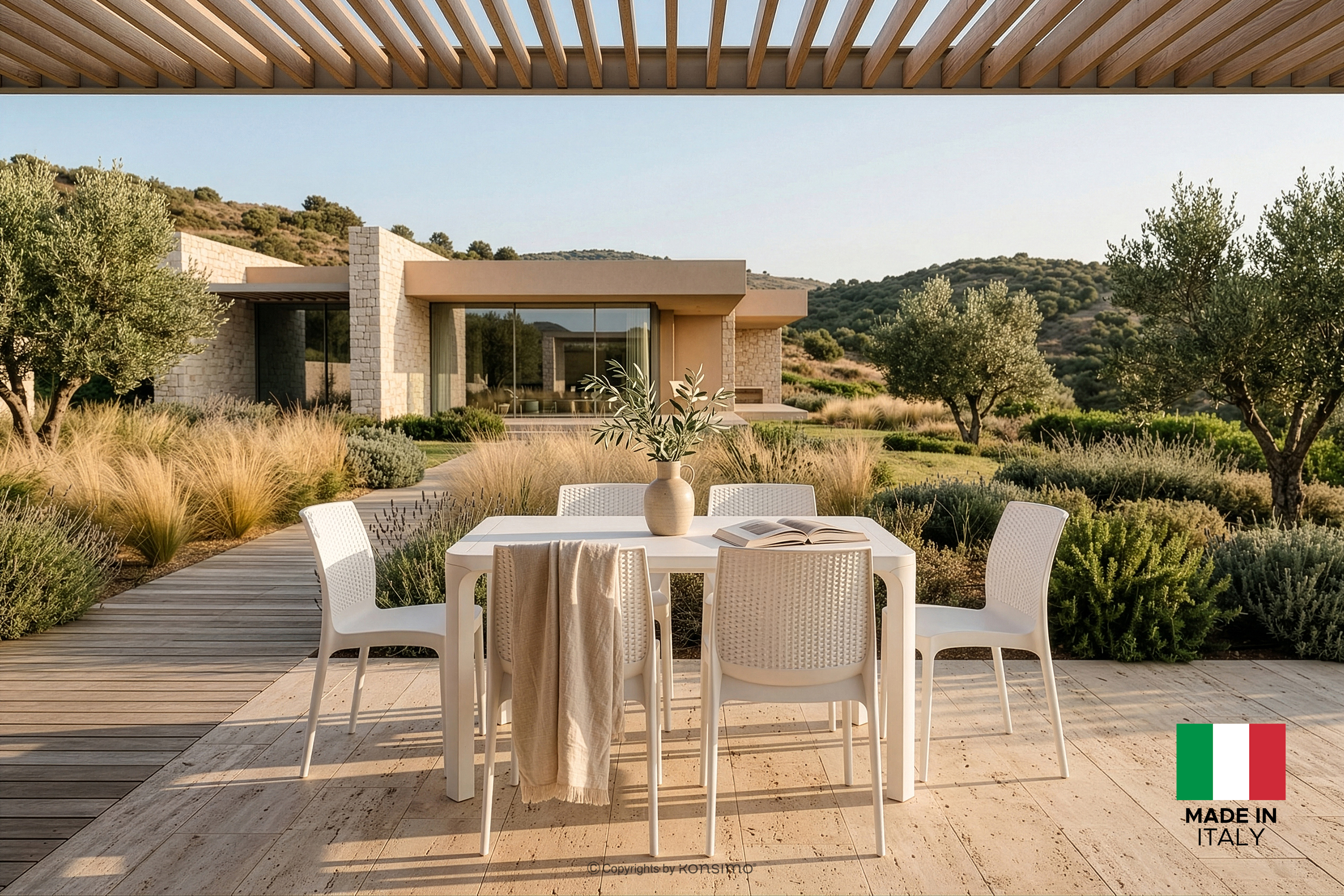 Stół ogrodowy z krzesłami 6 szt. z polipropylenu biały stanowi kompletną odpowiedź na potrzeby nowoczesnych aranżacji, w których liczy się najwyższa jakość wykonania oraz bezkompromisowa funkcjonalność. Każdy element zestawu to owoc włoskiej myśli projektowej, łączący w sobie lekkość formy z niezwykłą wytrzymałością, co potwierdza prestiżowa etykieta „Made in Italy”. Wykorzystanie