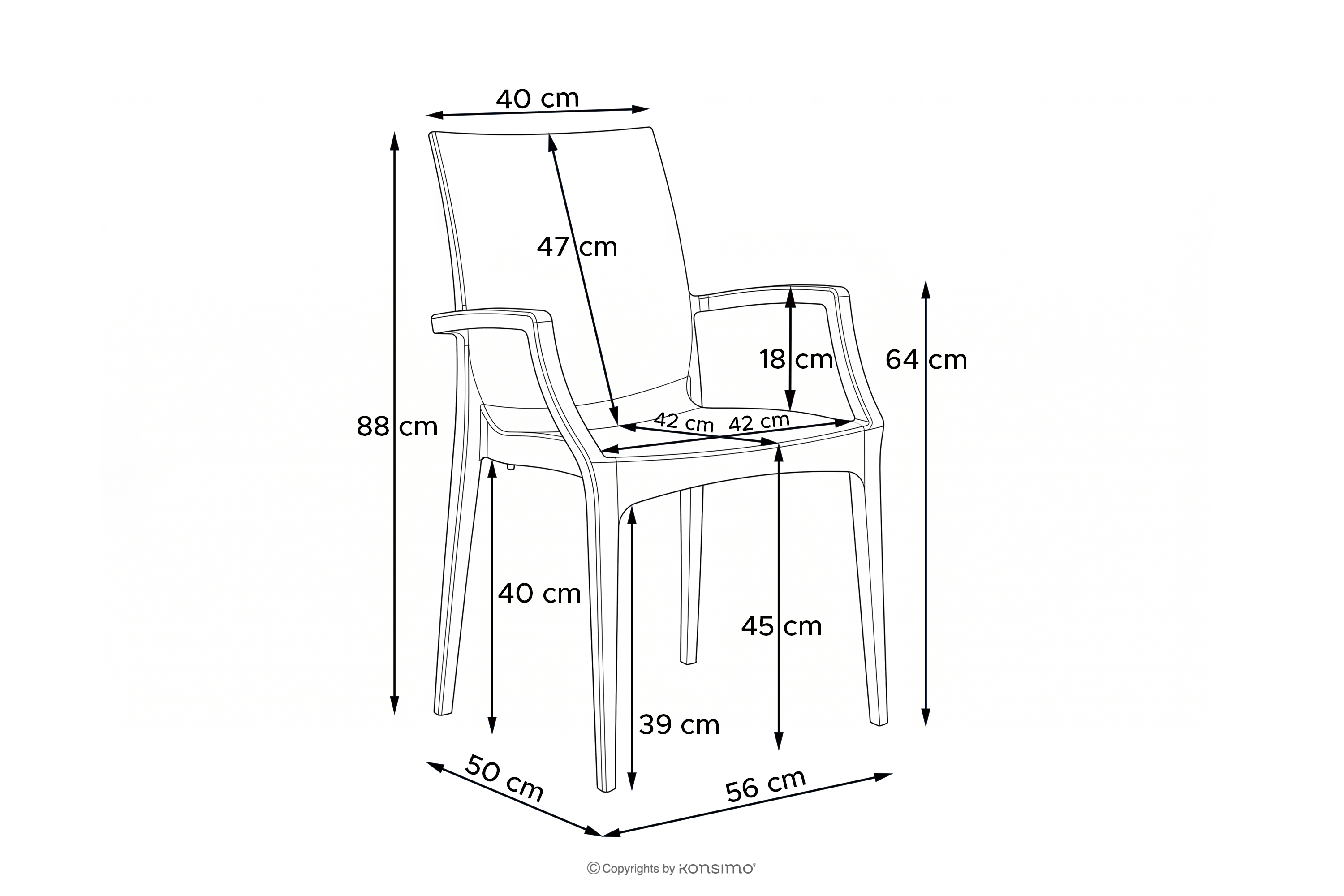 - Krzesło z podłokietnikiem (cm): 56x88x50