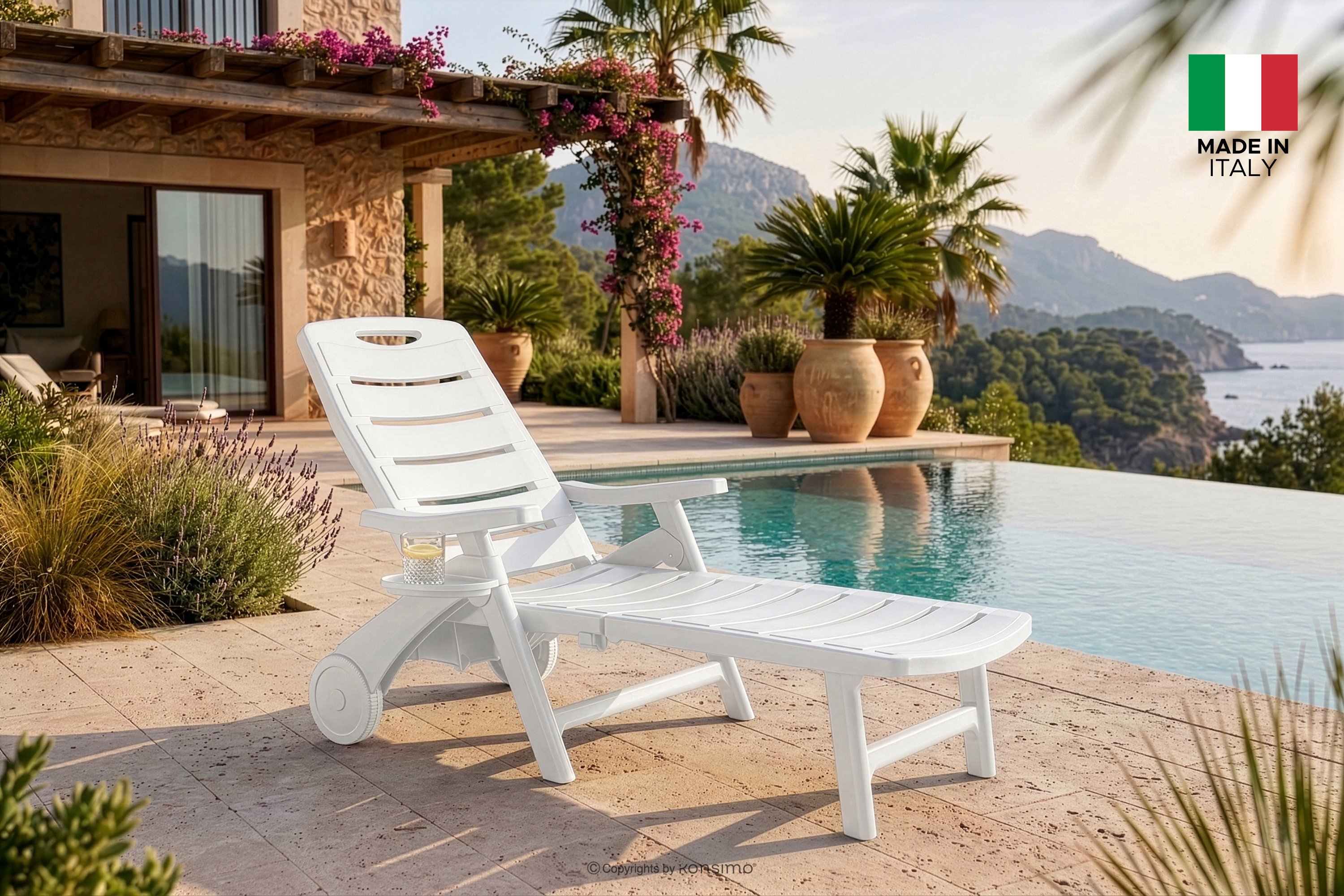 TIDIA zobacz całą kolekcję Leżak do hotelu z regulacją oparcia biały- kolor biały
