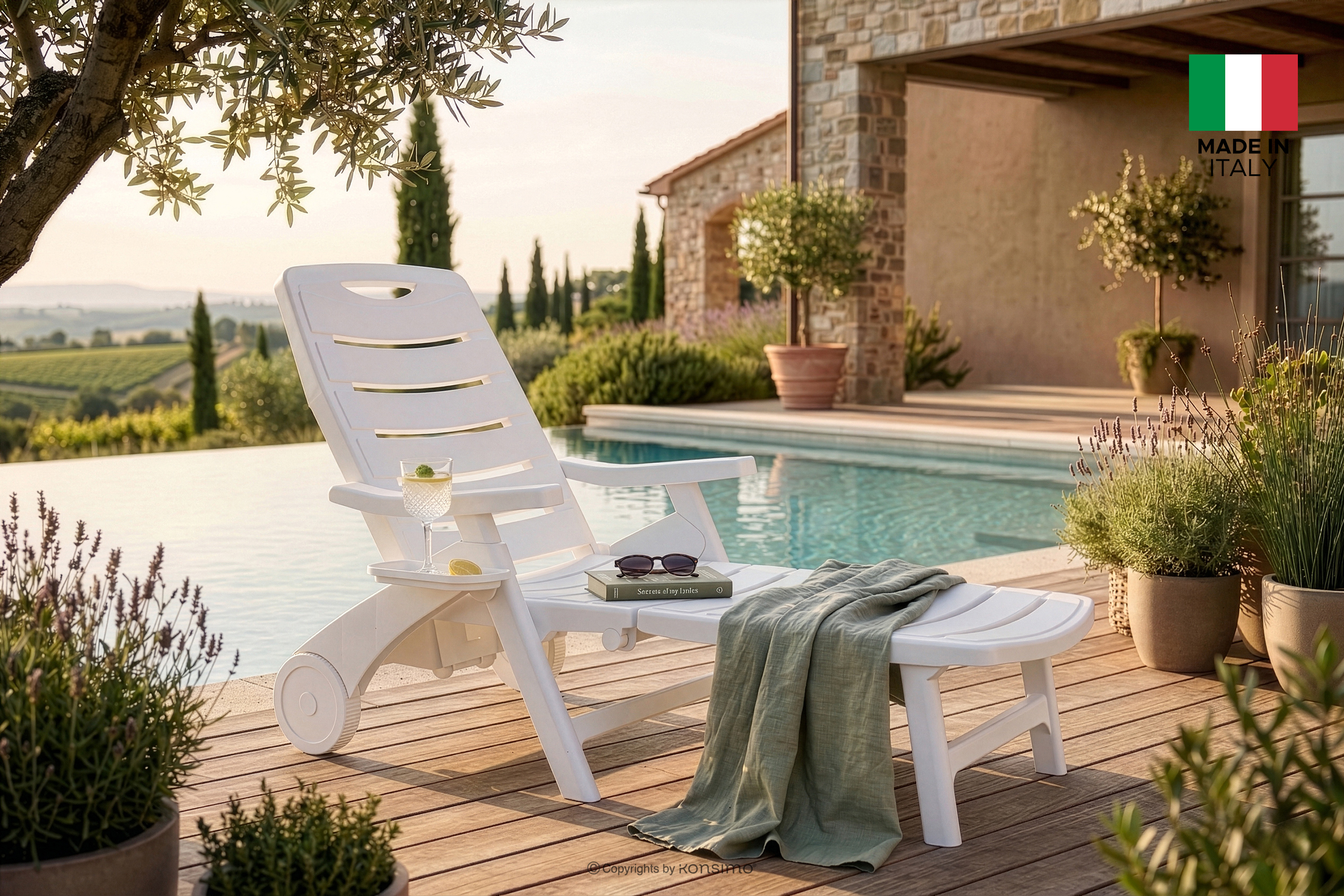 Konstrukcja leżaka TIDIA została zaprojektowana z myślą o maksymalnej cyrkulacji powietrza – charakterystyczne, precyzyjnie rozmieszczone szczebelki nie tylko nadają mu nowoczesny, lekki wygląd, ale przede wszystkim zapobiegają przegrzewaniu się ciała podczas upalnych dni oraz umożliwiają swobodne odprowadzanie wody deszczowej z powierzchni mebla, co czyni go idealnym wyborem na taras, do ogrodu, nad basen czy na plażę. Solidność i stabilna konstrukcja sprawiają, że produkt ten doskonale radzi sobie w intensywnie użytkowanych przestrzeniach hotelowych, ośrodkach SPA oraz strefach relaksu, gdzie wysoka jakość wykonania musi sprostać wymaganiom dużej rotacji gości przy zachowaniu pełnego bezpieczeństwa. Co więcej, kolekcja wpisuje się w nurt ekologicznego designu, ponieważ powstała z materiałów pochodzących z recyklingu i w pełni nadaje się do ponownego przetworzenia, co czyni ją wyborem odpowiedzialnym wobec środowiska naturalnego.