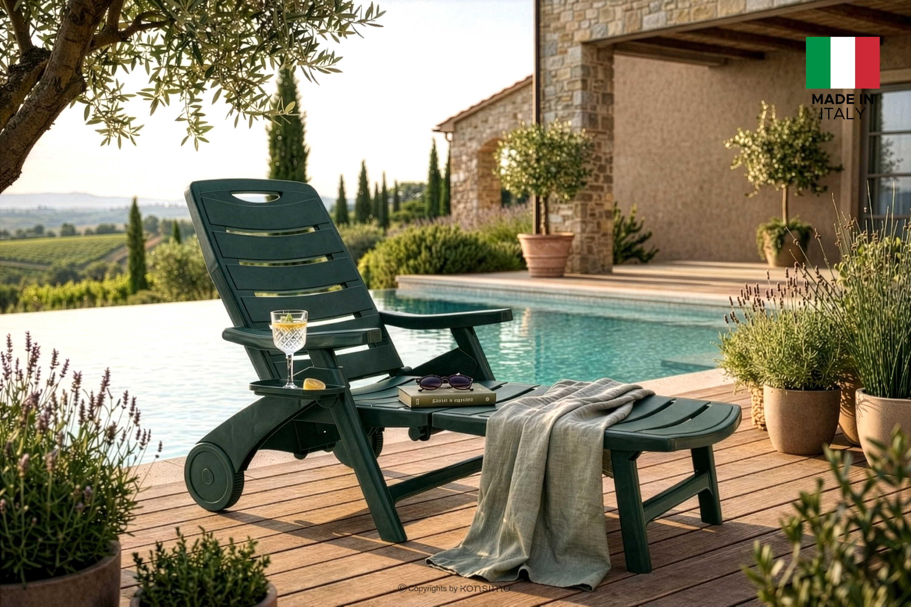 Konstrukcja leżaka TIDIA została zaprojektowana z myślą o maksymalnej cyrkulacji powietrza – charakterystyczne, precyzyjnie rozmieszczone szczebelki nie tylko nadają mu nowoczesny, lekki wygląd, ale przede wszystkim zapobiegają przegrzewaniu się ciała podczas upalnych dni oraz umożliwiają swobodne odprowadzanie wody deszczowej z powierzchni mebla, co czyni go idealnym wyborem na taras, do ogrodu, nad basen czy na plażę. Solidność i stabilna konstrukcja sprawiają, że produkt ten doskonale radzi sobie w intensywnie użytkowanych przestrzeniach hotelowych, ośrodkach SPA oraz strefach relaksu, gdzie wysoka jakość wykonania musi sprostać wymaganiom dużej rotacji gości przy zachowaniu pełnego bezpieczeństwa. Co więcej, kolekcja wpisuje się w nurt ekologicznego designu, ponieważ powstała z materiałów pochodzących z recyklingu i w pełni nadaje się do ponownego przetworzenia, co czyni ją wyborem odpowiedzialnym wobec środowiska naturalnego.