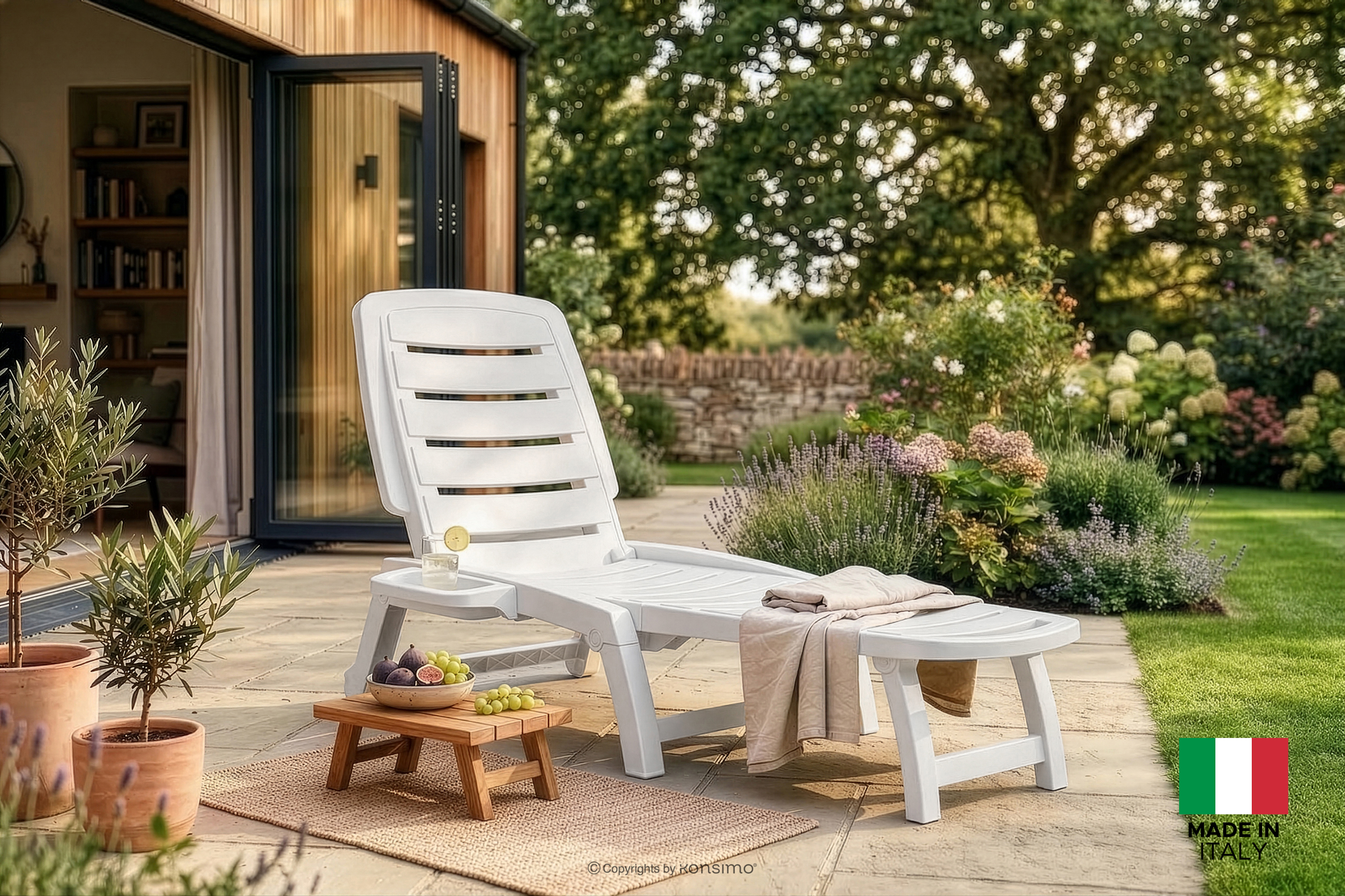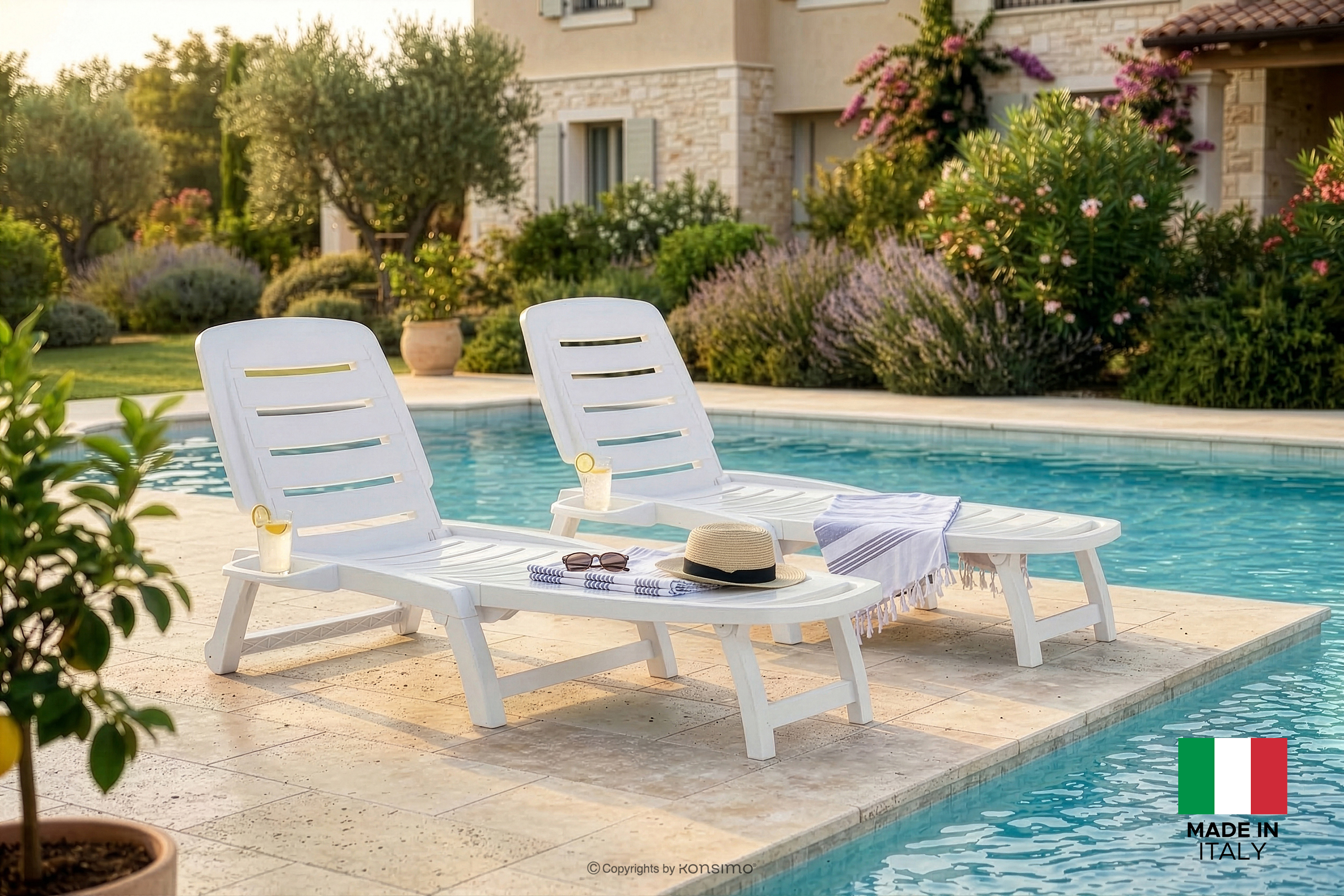 Leżak na plażę regulowany z uchwytem na napoje biały to synonim nowoczesnego podejścia do wypoczynku na świeżym powietrzu, łączący w sobie włoską precyzję wykonania z niezwykłą funkcjonalnością, która zadowoli nawet najbardziej wymagających użytkowników. Materiał, z którego go wykonano jest nie tylko odporny na zmienne warunki atmosferyczne, ale również na intensywne promieniowanie UV, dzięki czemu meble zachowują swoją strukturę i estetykę przez wiele sezonów, nie blaknąc pod wpływem słońca.