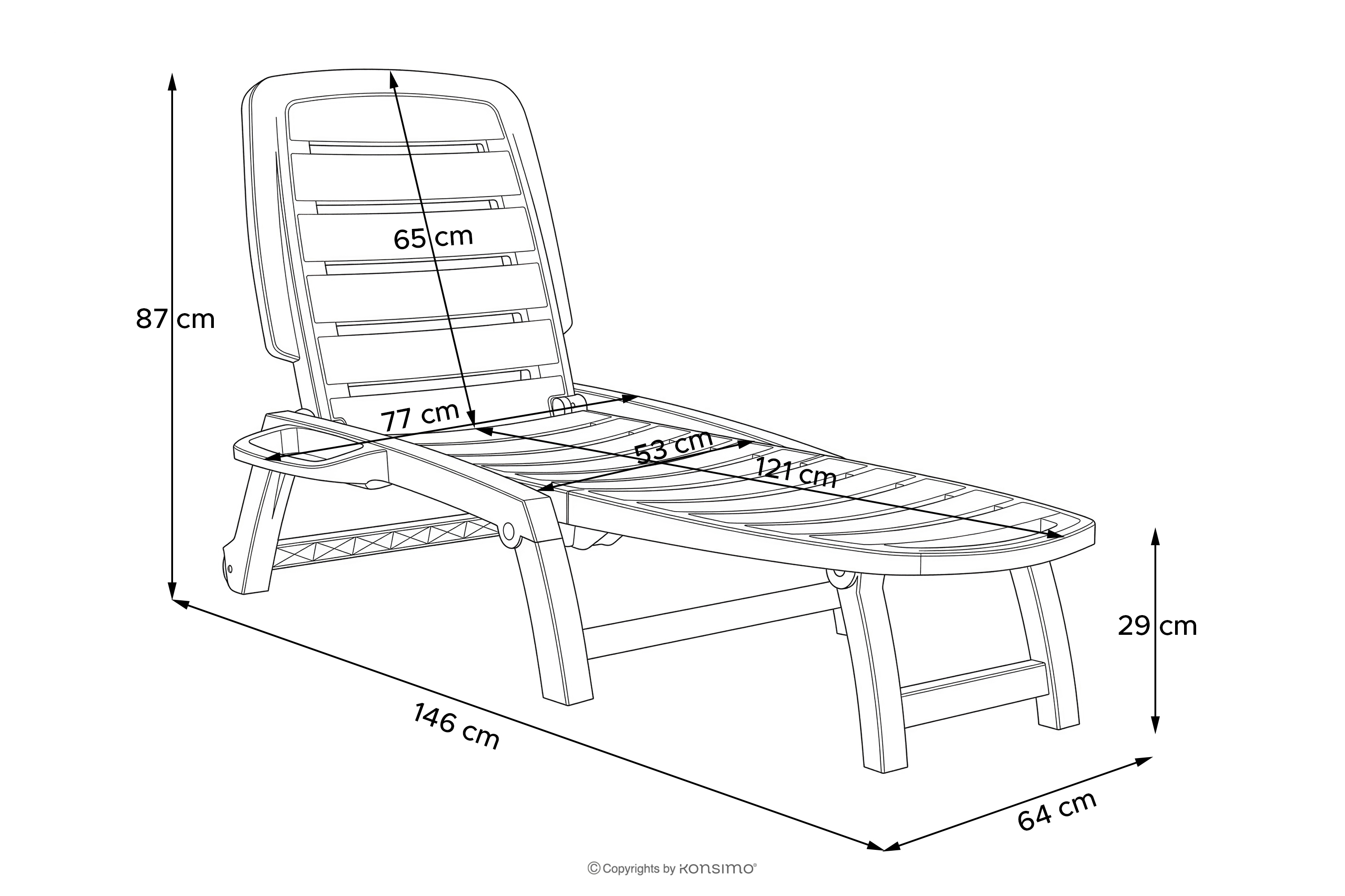 - Dodatkowe informacje: do użytku wewnętrznego i zewnętrznego, kółka umożliwiające łatwiejsze przenoszenie leżaka, łatwe przechowywanie dzięki możliwości złożenia leżaka do kompatkowych rozmiarów, półka na napoje z możliwością demontażu