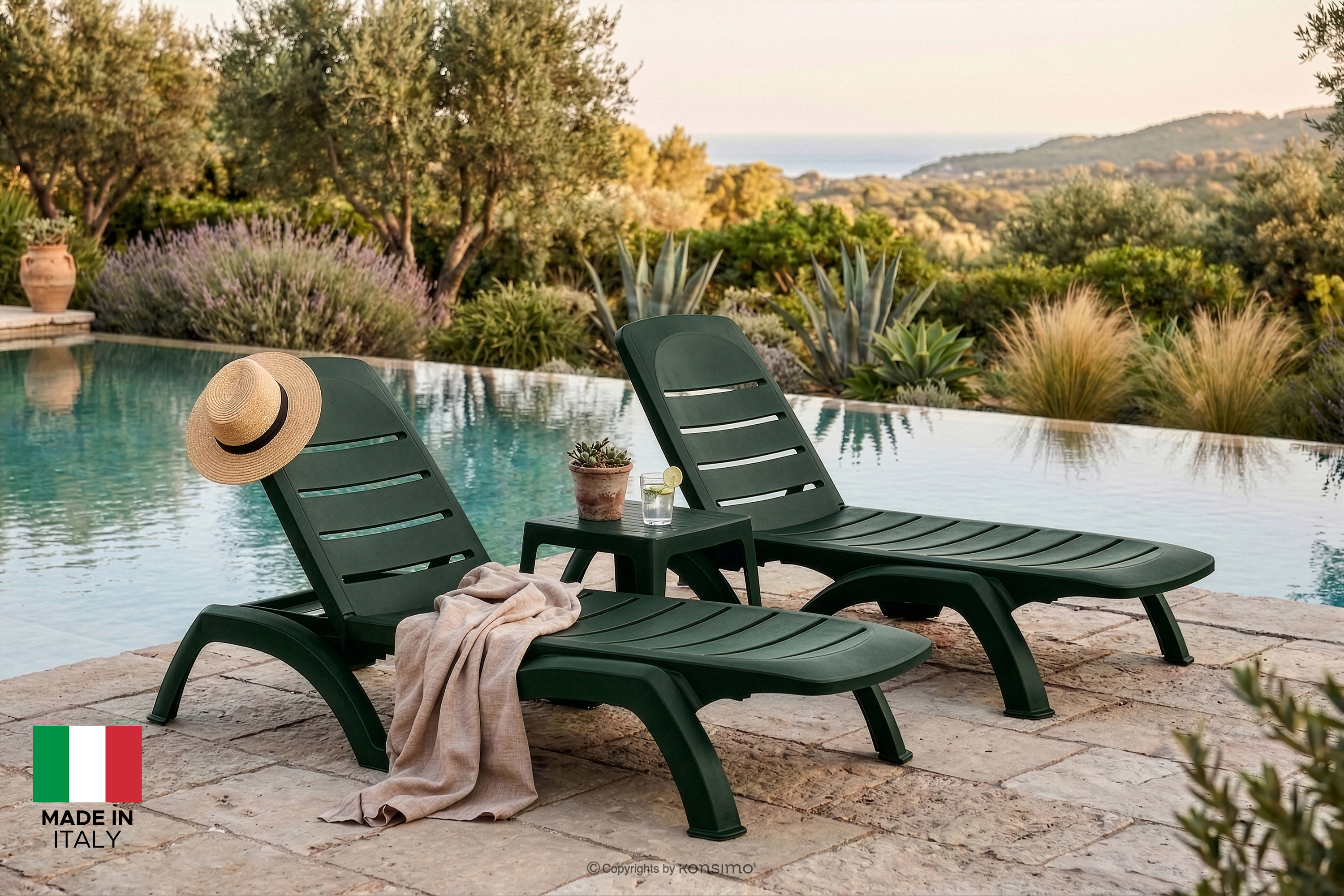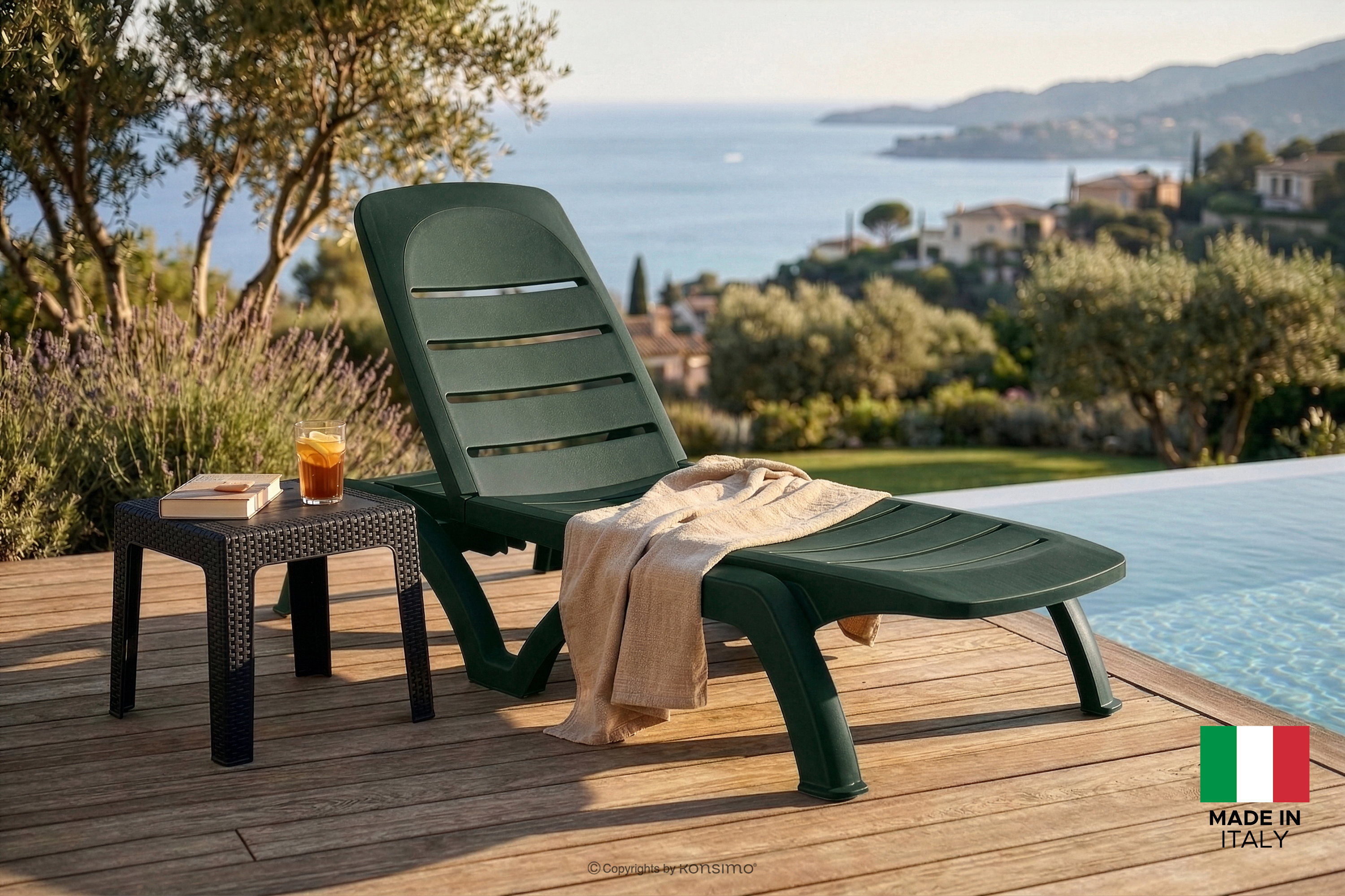Leżak hotelowy ze schowkiem i regulacją oparcia ciemny zielony to kwintesencja nowoczesnego designu połączonego z bezkompromisową funkcjonalnością, która redefiniuje pojęcie komfortu w strefach relaksu. Wykonane z polipropylenu najwyższej jakości – tworzywa, które w świecie współczesnego meblarstwa uchodzi za synonim trwałości, lekkości oraz ekologicznej odpowiedzialności. Wybierając kolekcję BATSI, inwestujesz w produkty powstałe z materiałów pochodzących z recyklingu, które po zakończeniu swojej wieloletniej eksploatacji w pełni nadają się do ponownego przetworzenia, co wpisuje się w ideę zrównoważonego rozwoju i dbałości o planetę.