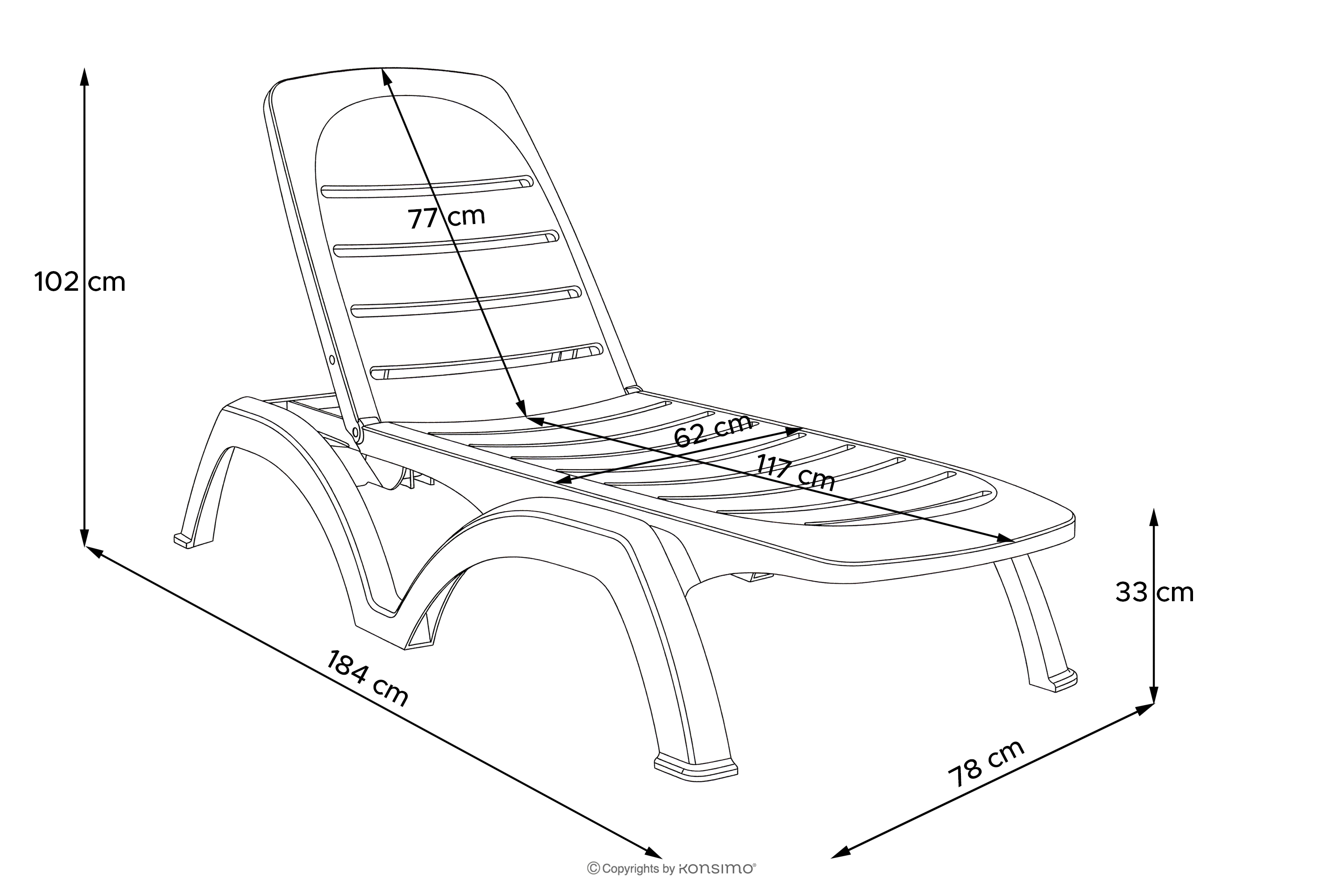 - Wymiary siedziska (cm): 62x33x117