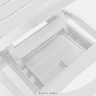 - Dodatkowe informacje: do użytku wewnętrznego i zewnętrznego, za oparciem leżaka wbudowany pojemnik o wymiarach 32x5x25 cm