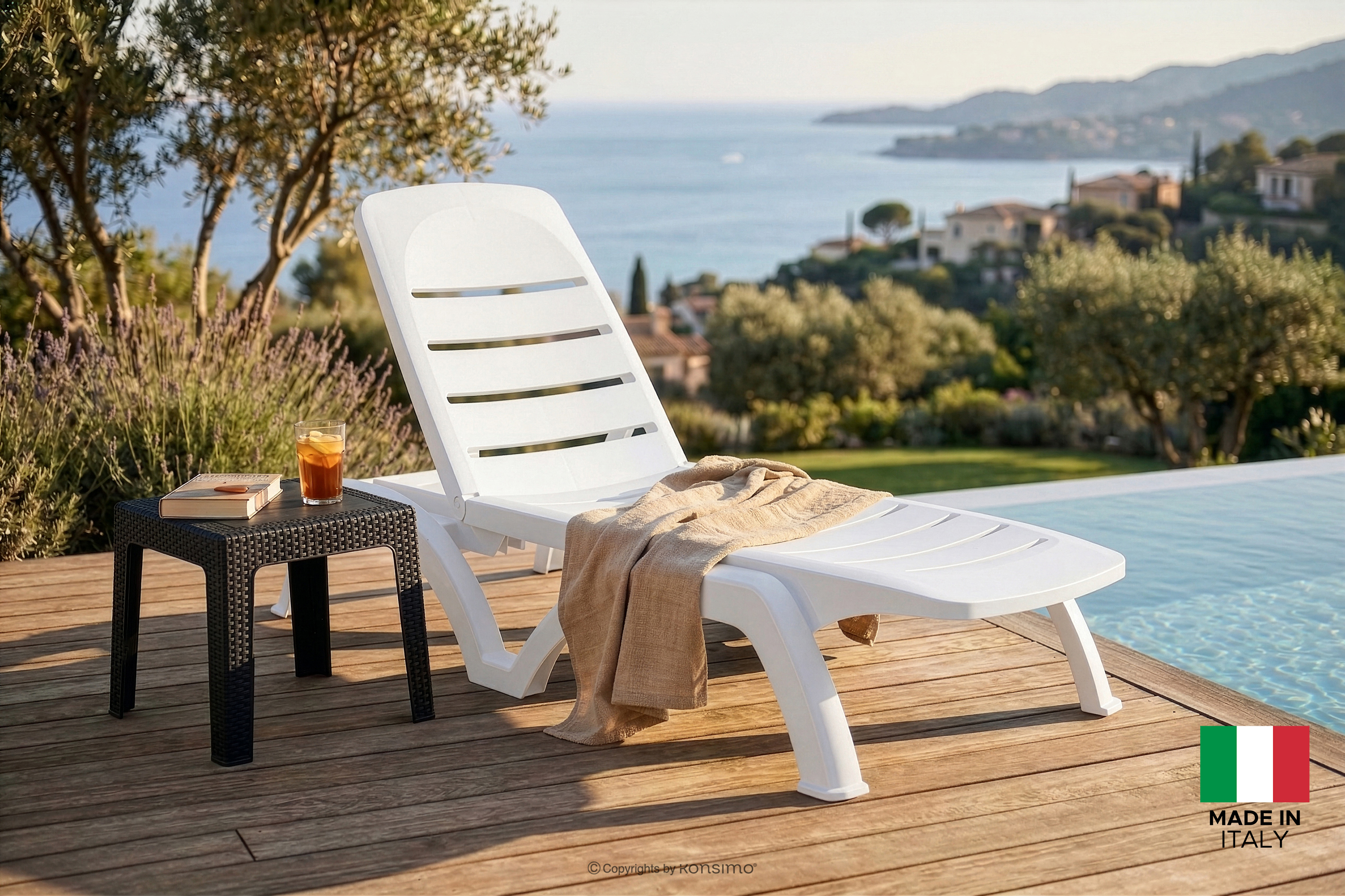 Zaprojektowany z myślą o najbardziej wymagających użytkownikach szukających odprężenia na tarasach, w ogrodach, przy basenach czy na piaszczystych plażach. Konstrukcja leżaka BATSI opiera się na solidnym szkielecie, który gwarantuje pełną stabilność, pod warunkiem stosowania mebla na płaskiej powierzchni, co jest kluczowe dla bezpieczeństwa i zachowania integralności mechanicznej produktu. Wyjątkową cechą projektu są precyzyjnie rozmieszczone szczebelki, które pełnią nie tylko funkcję estetyczną, ale przede wszystkim praktyczną – wolne przestrzenie między nimi umożliwiają swobodną cyrkulację powietrza pod plecami użytkownika, zapobiegając przegrzewaniu się ciała w upalne dni, a także pozwalają na błyskawiczne odprowadzanie wody z powierzchni mebla po letnim deszczu lub kąpieli w basenie. Dodatkowo, za oparciem leżaka ukryto funkcjonalny pojemnik, idealny na drobiazgi, które chcemy mieć pod ręką podczas wypoczynku. Całość produkcji odbywa się we Włoszech, co stanowi gwarancję najwyższych standardów wykonania „Made in Italy” oraz dbałości o każdy, nawet najmniejszy detal wykończenia.