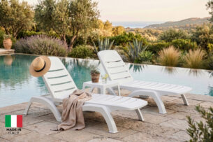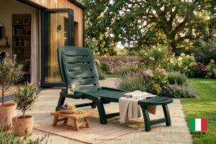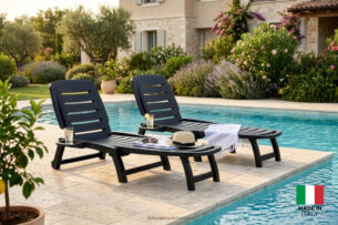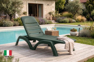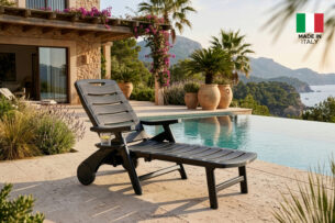Zaprojektowany z myślą o najbardziej wymagających użytkownikach szukających odprężenia na tarasach, w ogrodach, przy basenach czy na piaszczystych plażach. Konstrukcja leżaka BATSI opiera się na solidnym szkielecie, który gwarantuje pełną stabilność, pod warunkiem stosowania mebla na płaskiej powierzchni, co jest kluczowe dla bezpieczeństwa i zachowania integralności mechanicznej produktu. Wyjątkową cechą projektu są precyzyjnie rozmieszczone szczebelki, które pełnią nie tylko funkcję estetyczną, ale przede wszystkim praktyczną – wolne przestrzenie między nimi umożliwiają swobodną cyrkulację powietrza pod plecami użytkownika, zapobiegając przegrzewaniu się ciała w upalne dni, a także pozwalają na błyskawiczne odprowadzanie wody z powierzchni mebla po letnim deszczu lub kąpieli w basenie. Dodatkowo, za oparciem leżaka ukryto funkcjonalny pojemnik, idealny na drobiazgi, które chcemy mieć pod ręką podczas wypoczynku. Całość produkcji odbywa się we Włoszech, co stanowi gwarancję najwyższych standardów wykonania „Made in Italy” oraz dbałości o każdy, nawet najmniejszy detal wykończenia.