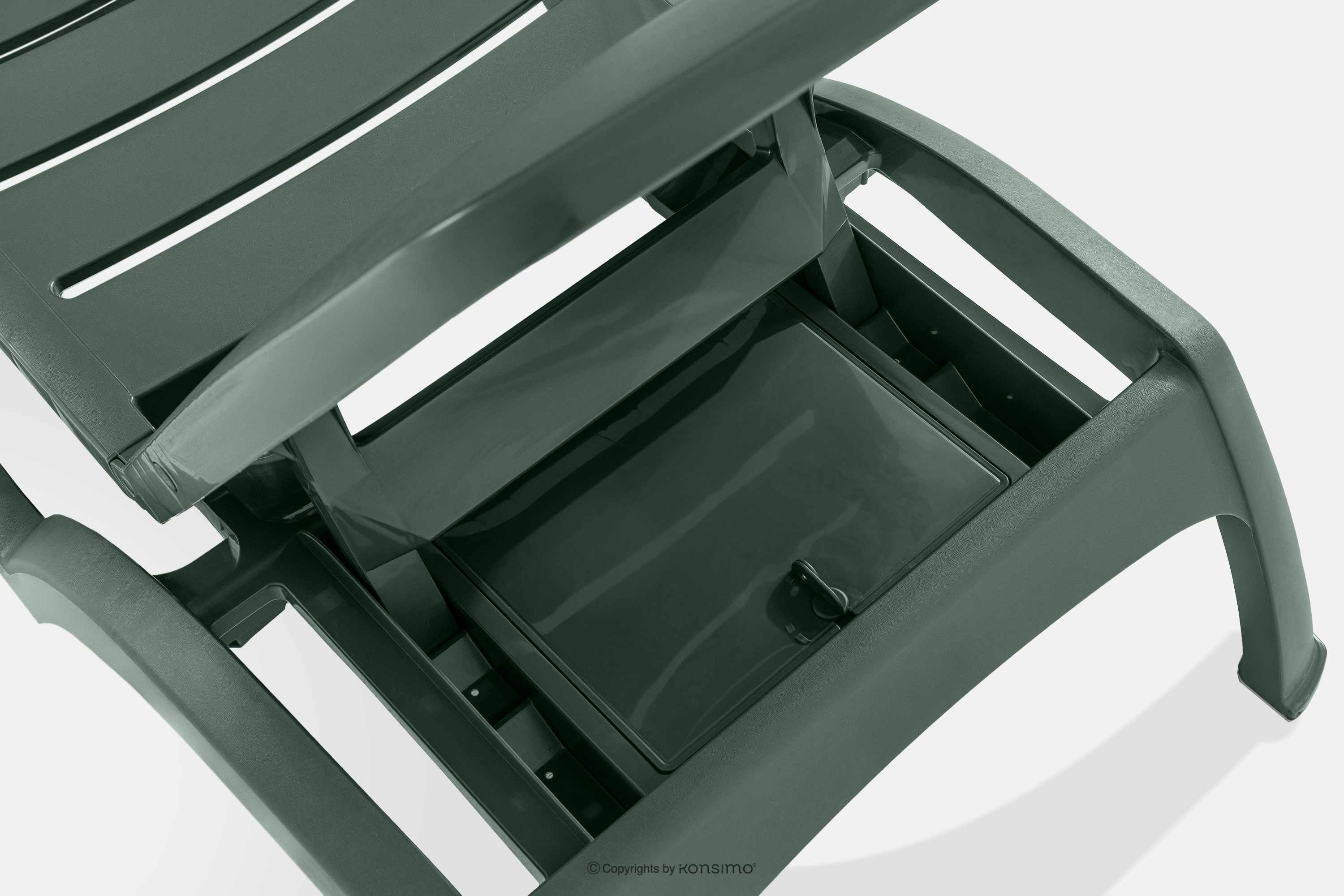 BATSI zobacz całą kolekcję Leżak ogrodowy ze schowkiem i regulacją oparcia 2 szt. ciemny zielony- kolor ciemny zielony