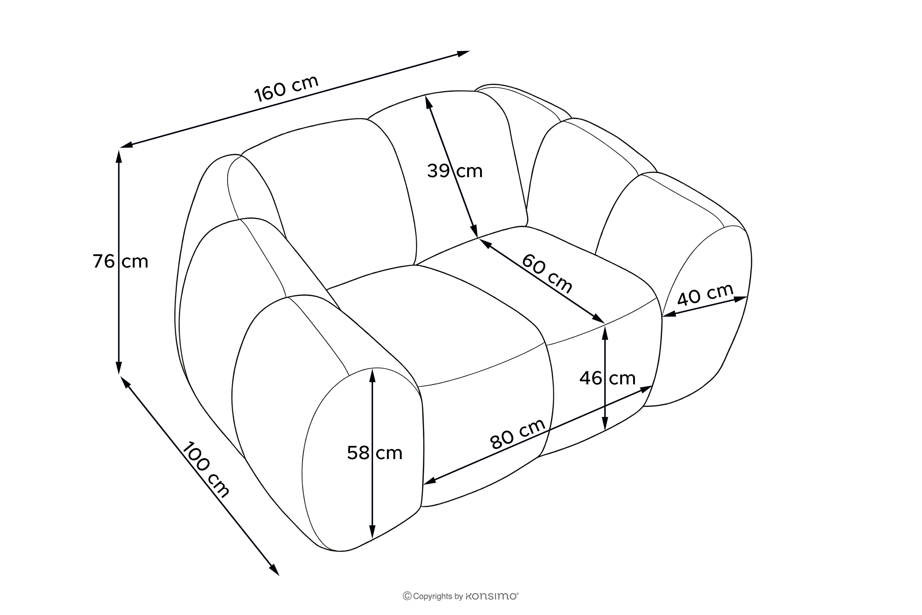 - Pianka oparcie: pianka T20 – 4 cm, pianka T23 – 4 cm, wata silikonowa 400 g