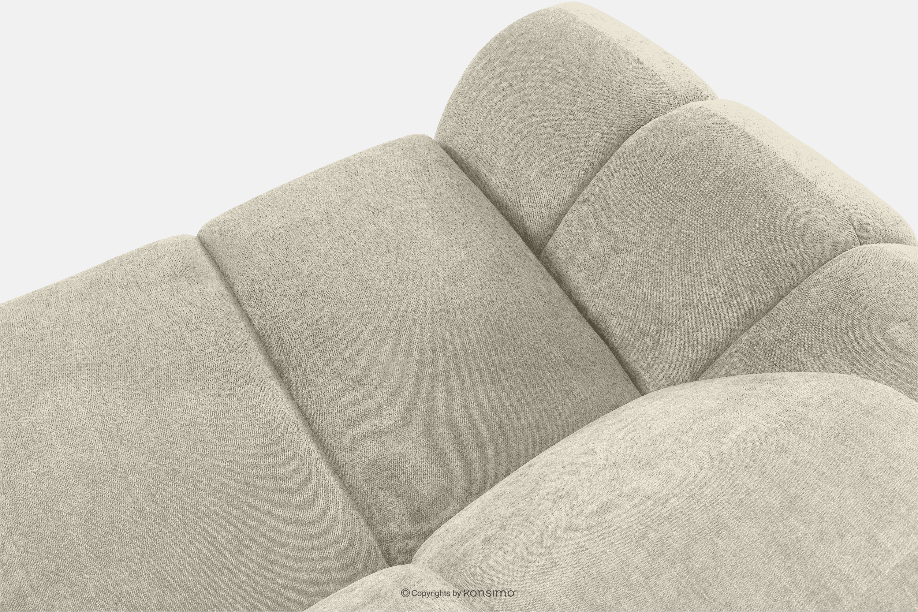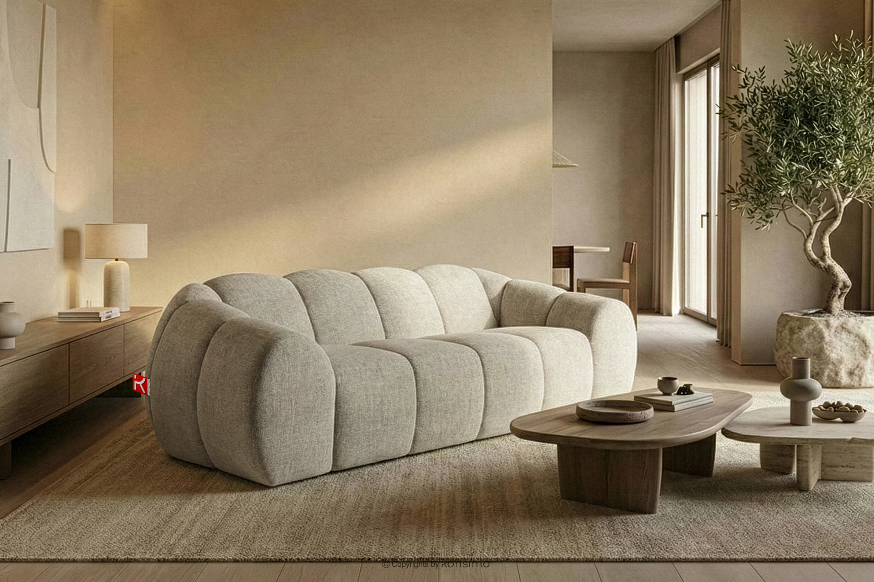 Pikowana sofa trzyosobowa retro modern ecru stanowi kwintesencję nowoczesnego spojrzenia na stylistykę retro-modern, w której obłe, organiczne formy spotykają się z bezkompromisową funkcjonalnością. Każdy element tej serii został zaprojektowany z myślą o stworzeniu harmonijnej przestrzeni, która celebruje miękkie linie i geometryczny rytm charakterystyczny dla ikon designu lat siedemdziesiątych, ale w odświeżonym, luksusowym wydaniu.