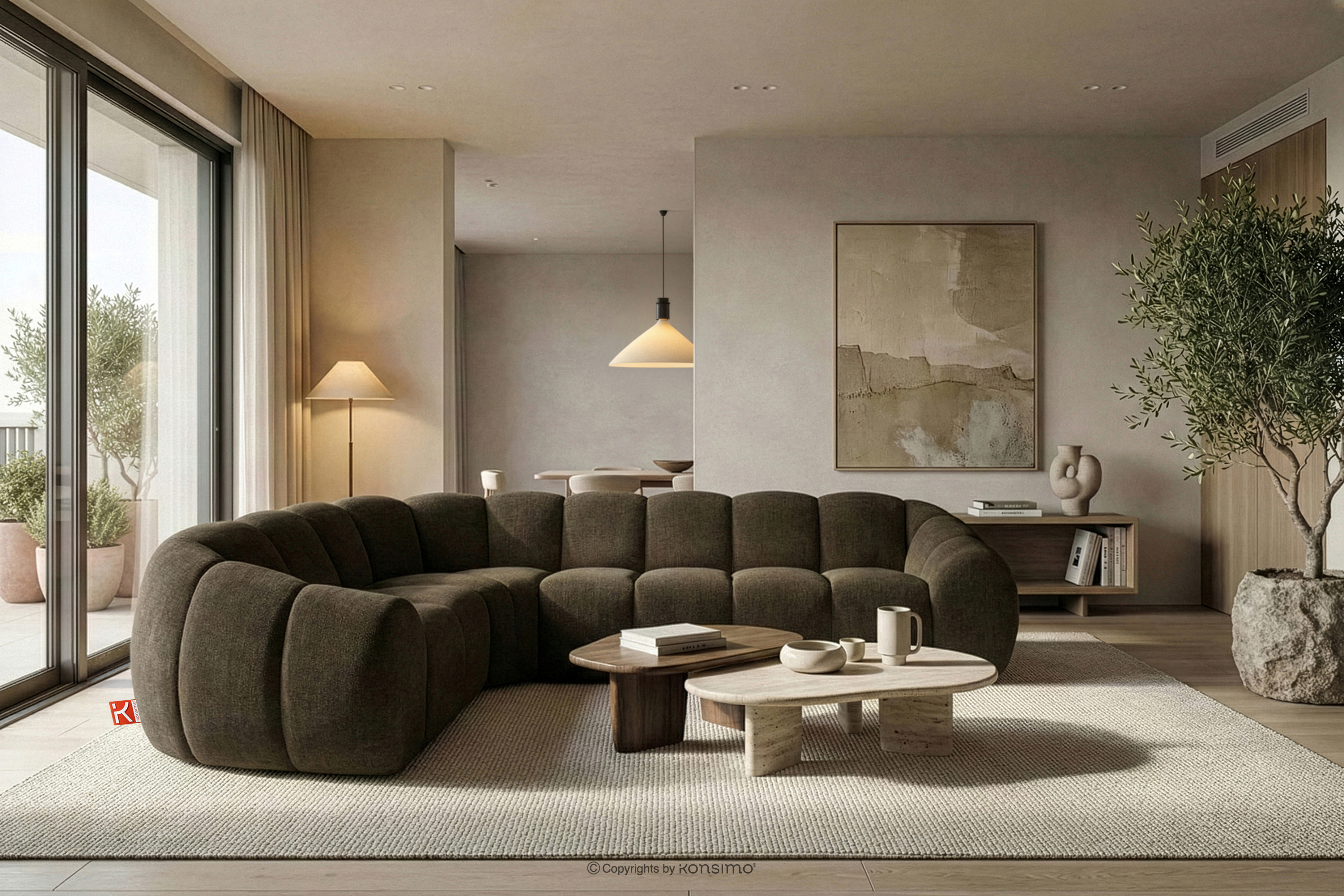 Pikowany narożnik w stylu retro modern lewy brązowy stanowi kwintesencję nowoczesnego spojrzenia na stylistykę retro-modern, w której obłe, organiczne formy spotykają się z bezkompromisową funkcjonalnością współczesnego projektowania modułowego. Każdy element tej serii został zaprojektowany z myślą o stworzeniu harmonijnej przestrzeni, która celebruje miękkie linie i geometryczny rytm charakterystyczny dla ikon designu lat siedemdziesiątych, ale w odświeżonym, luksusowym wydaniu.