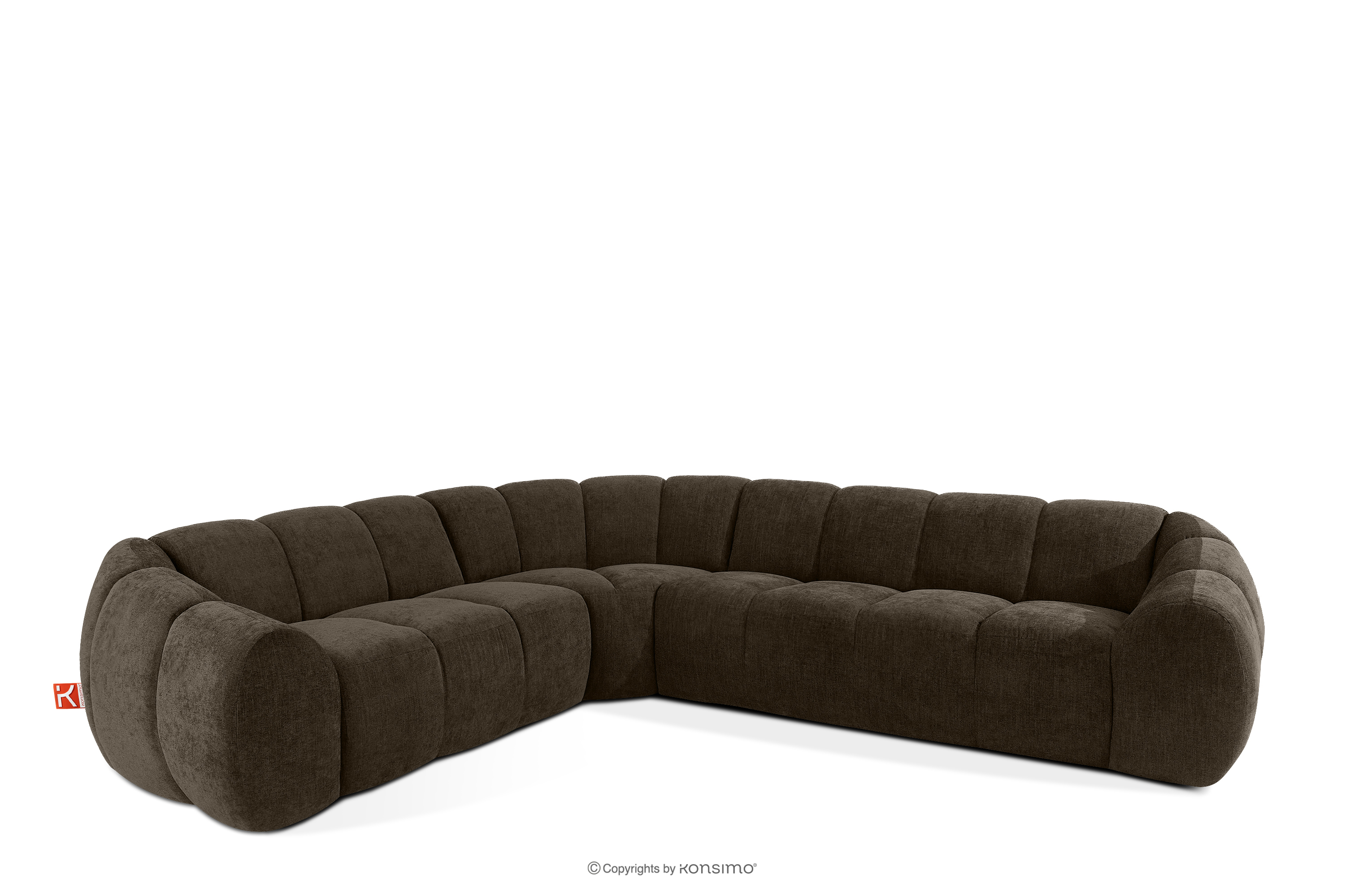Duży pikowany narożnik w stylu retro modern lewy brązowy stanowi kwintesencję nowoczesnego spojrzenia na stylistykę retro-modern, w której obłe, organiczne formy spotykają się z bezkompromisową funkcjonalnością współczesnego projektowania modułowego. Każdy element tej serii został zaprojektowany z myślą o stworzeniu harmonijnej przestrzeni, która celebruje miękkie linie i geometryczny rytm charakterystyczny dla ikon designu lat siedemdziesiątych, ale w odświeżonym, luksusowym wydaniu.