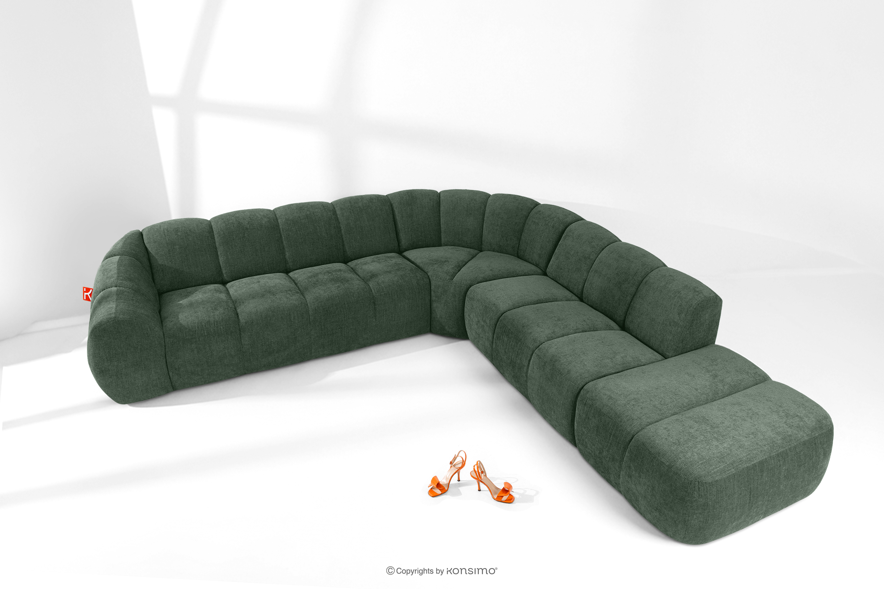 FLAVA zobacz całą kolekcję Duży pikowany narożnik modułowy w stylu retro modern prawy ciemny zielony- kolor ciemny zielony