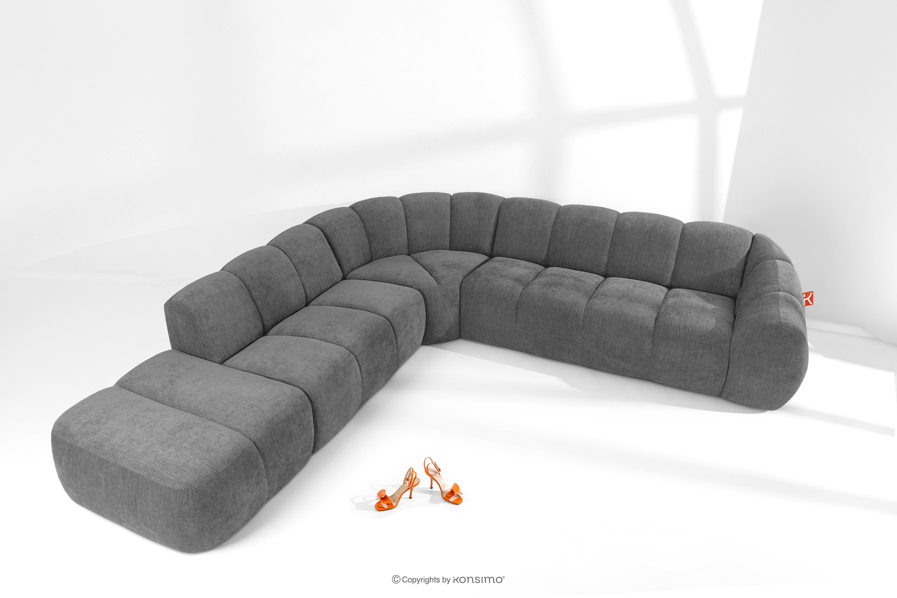 FLAVA Duży pikowany narożnik modułowy w stylu retro modern lewy popielaty