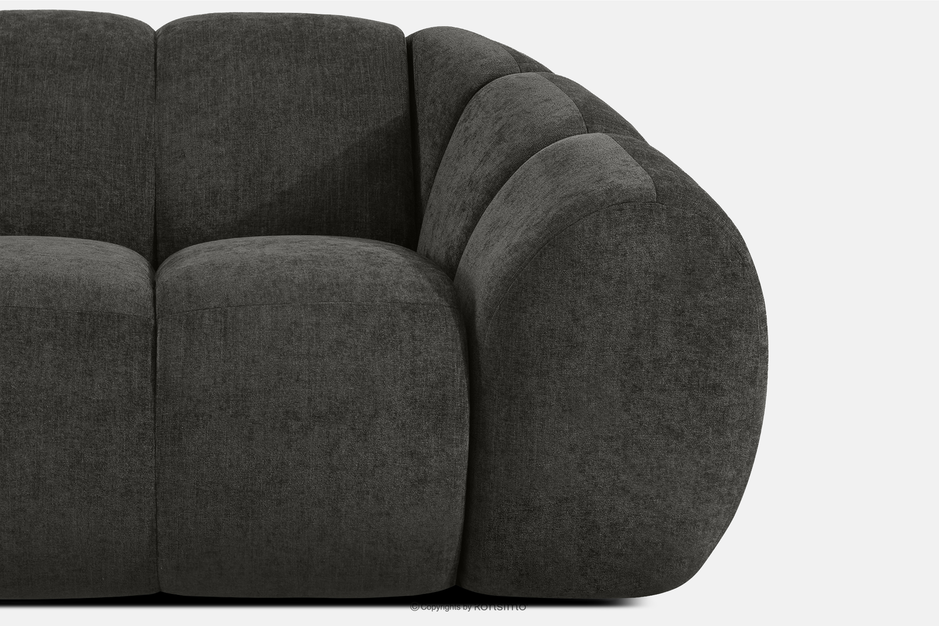 Duży pikowany narożnik modułowy w stylu retro modern lewy grafitowy stanowi kwintesencję nowoczesnego spojrzenia na stylistykę retro-modern, w której obłe, organiczne formy spotykają się z bezkompromisową funkcjonalnością współczesnego projektowania modułowego. Każdy element tej serii został zaprojektowany z myślą o stworzeniu harmonijnej przestrzeni, która celebruje miękkie linie i geometryczny rytm charakterystyczny dla ikon designu lat siedemdziesiątych, ale w odświeżonym, luksusowym wydaniu.