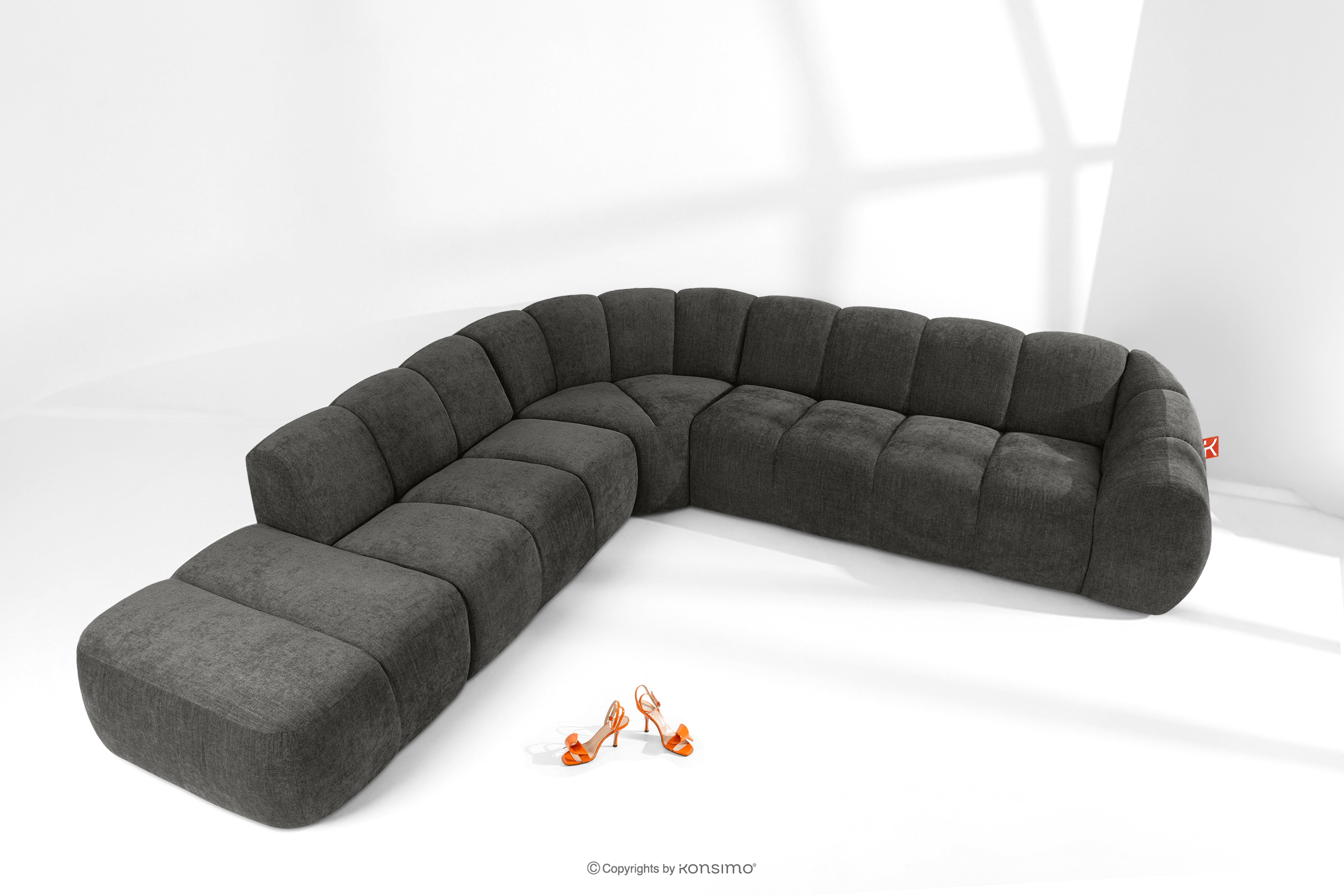 FLAVA Duży pikowany narożnik modułowy w stylu retro modern lewy grafitowy