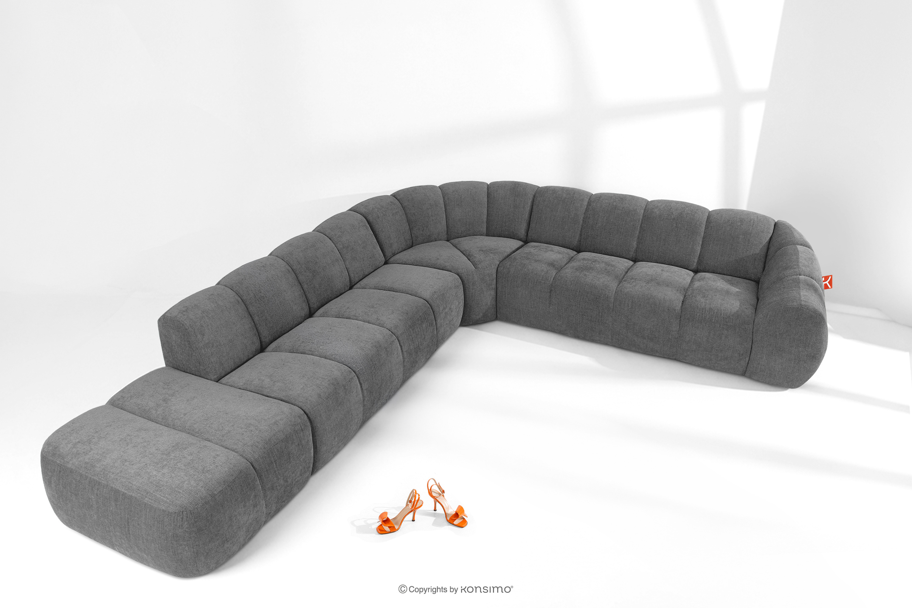 dla produktu Modułowy narożnik curve w stylu retro modern lewy popielaty