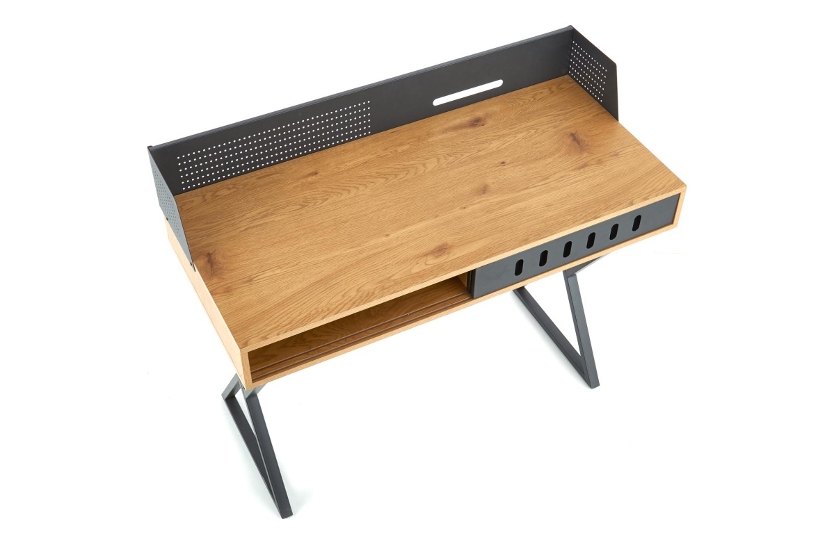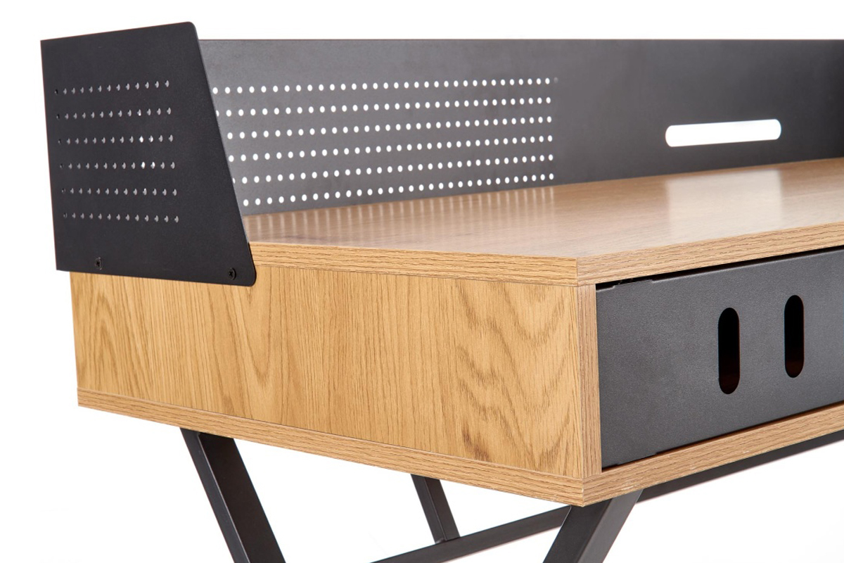 VORTI zobacz całą kolekcję Biurko z półką industrialne- kolor dąb złoty/czarny